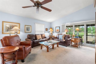 Discover resort-style Florida living in this 2BR/2BA home with an enclosed Florida room, perfectly set along the lush fairways of the Heritage Ridge Golf Course in desirable Hobe Sound. This inviting, move-in ready residence offers a light-filled, open-concept feel with soaring ceilings and a comfortable, spacious layout. The generous kitchen is both stylish and functional, featuring stainless steel appliances, granite countertops, warm wood cabinetry, and ample prep space—ideal for casual meals or entertaining guests. The oversized primary suite provides a relaxing escape with abundant closet storage and a private en-suite bath. Step outside to enjoy tranquil golf course views and gentle breezes from the screened porch, plus the rare benefit of a fully fenced patio—this is the only unit in the community offering this added privacy. Key improvements include new impact windows and doors and a newer roof for peace of mind. Heritage Ridge residents enjoy access to golf, tennis, a community pool, and more. Conveniently located near Hobe Sound’s beaches, Jonathan Dickinson State Park, waterfront dining, and charming local shops—this home delivers the perfect blend of serenity, convenience, and coastal lifestyle. Enjoy morning coffee, sunset skies, and the easygoing charm of golf course living. A rare find in a beautifully maintained community! Schedule your private showing today. All information deemed reliable but not guaranteed. All measurements are approximate.