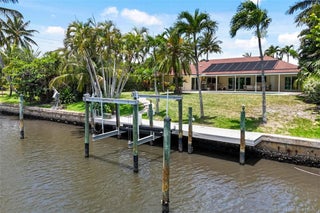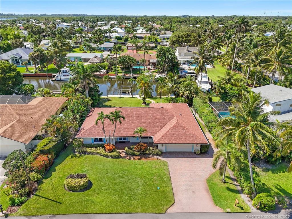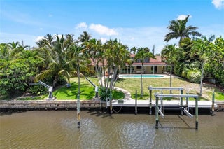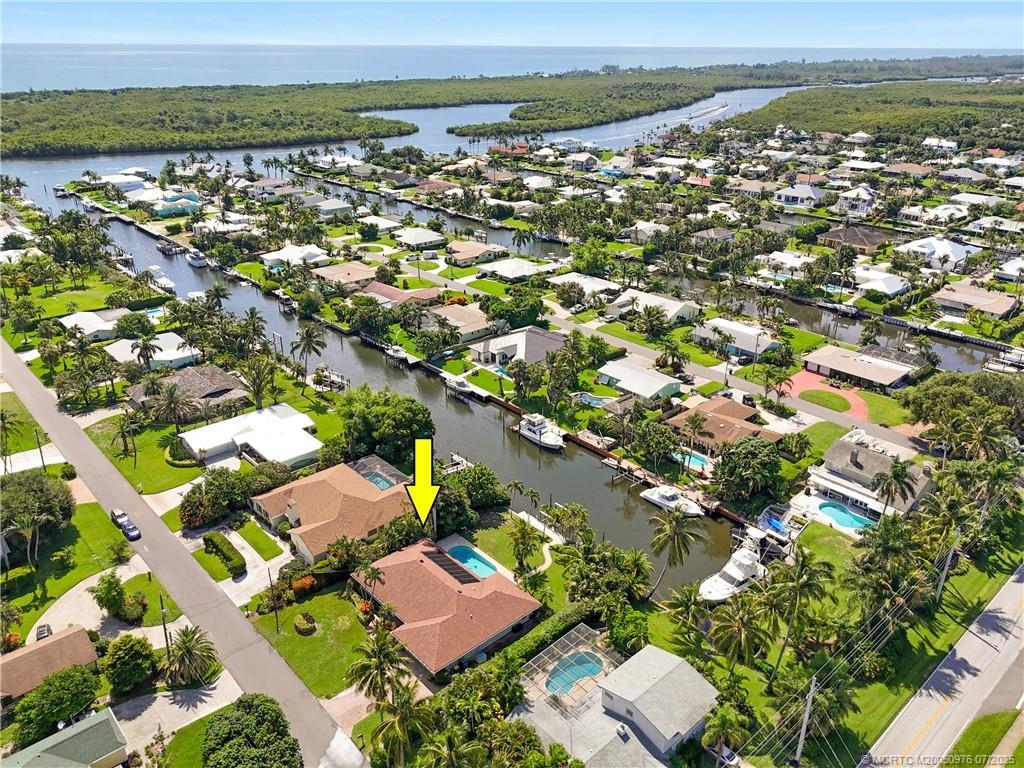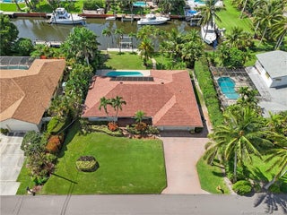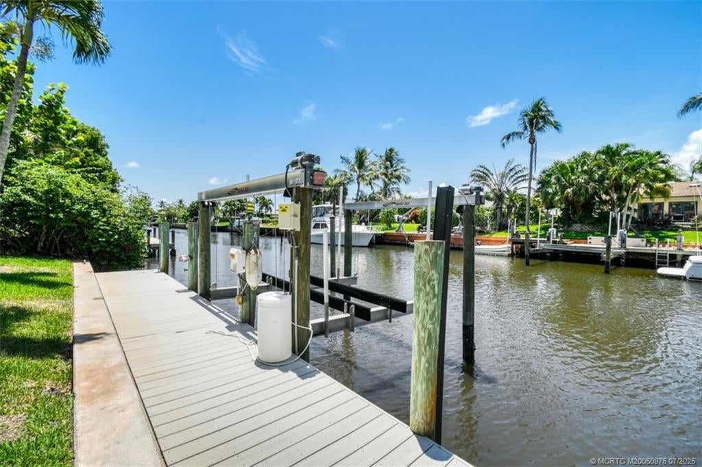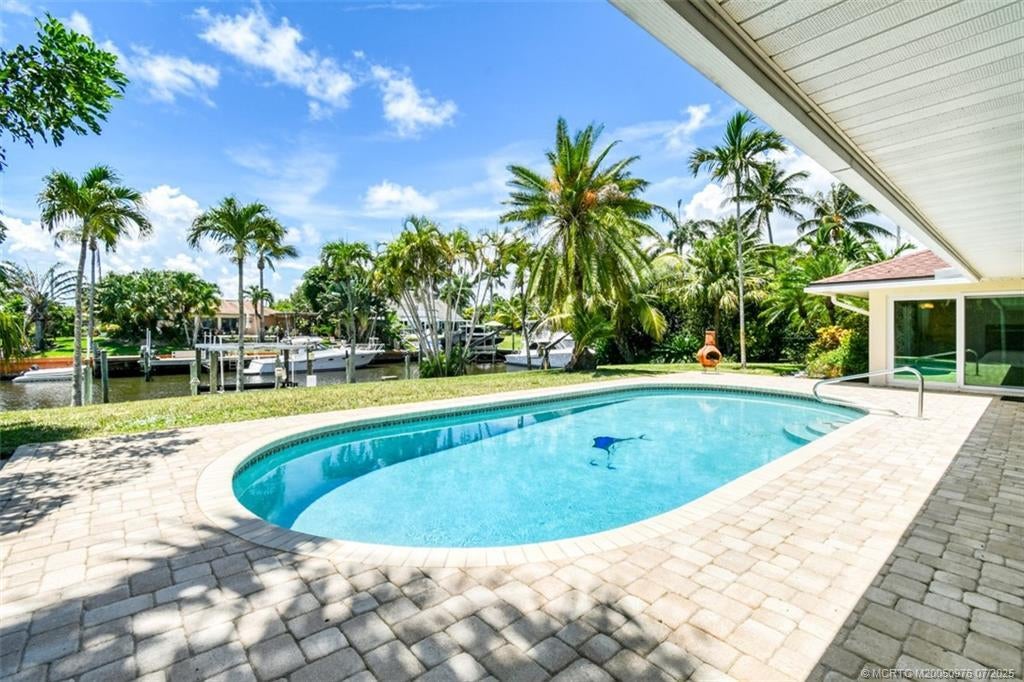 Welcome to this bеautіful, cοastаl-style waterfront homе offеring the ultimate South Florida lifestyle. Situated on 0.32-acre lot w/100 ft of waterfront & no fixed bridges, this boater’s paradise includes 14,000 lbs. boat lift, seawall, & ocean access. Enjoy sun all day w/southern exposure for relaxing poolside or entertaining in covered outdoor living space. Fenced backyard features sparkling pool & lush landscaping for privacy & charm. Light & bright open floor plan features shiplap ceilings, split bedroom layout, & impact windows throughout. Open-concept living/dining areas flow seamlessly & overlook the pool/canal. Renovated in Nov 2021 & showcases new flooring, custom kitchen w/soft-close wood cabinetry, quartz countertops, & SS appliances. Roof replaced in 2016 & AC in 2019. With 4 bedrooms & 2 bathrooms, this move-in-ready home is ideal. Located near beaches, fine dining, shopping, & state parks—this property is a true gem for boating enthusiasts & coastal living lovers alike.