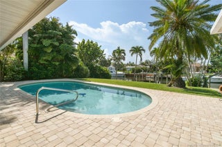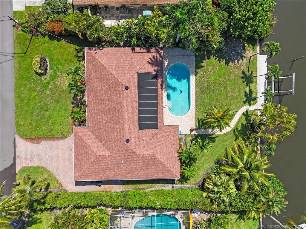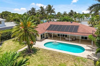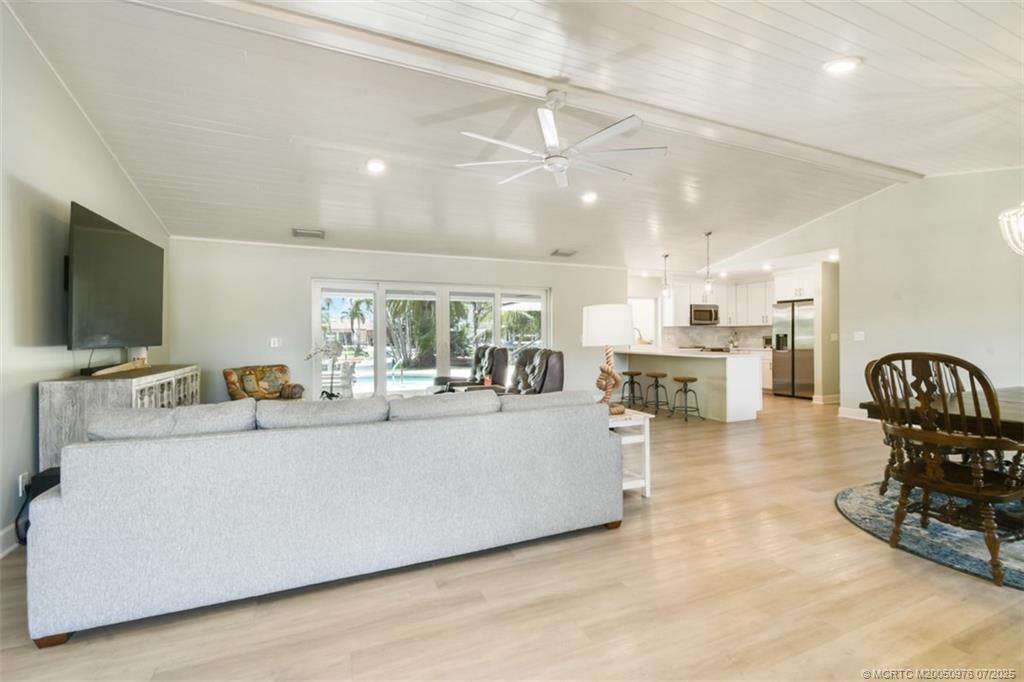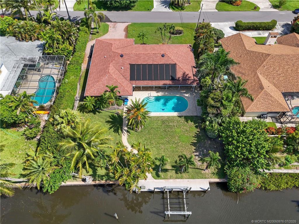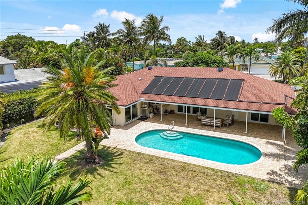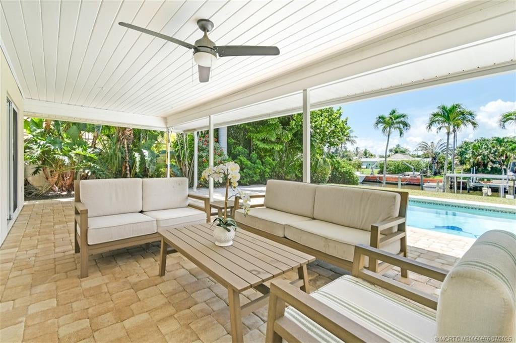 Welcome to this bеautіful, cοastаl-style waterfront homе offеring the ultimate South Florida lifestyle. Situated on 0.32-acre lot w/100 ft of waterfront & no fixed bridges, this boater’s paradise includes 14,000 lbs. boat lift, seawall, & ocean access. Enjoy sun all day w/southern exposure for relaxing poolside or entertaining in covered outdoor living space. Fenced backyard features sparkling pool & lush landscaping for privacy & charm. Light & bright open floor plan features shiplap ceilings, split bedroom layout, & impact windows throughout. Open-concept living/dining areas flow seamlessly & overlook the pool/canal. Renovated in Nov 2021 & showcases new flooring, custom kitchen w/soft-close wood cabinetry, quartz countertops, & SS appliances. Roof replaced in 2016 & AC in 2019. With 4 bedrooms & 2 bathrooms, this move-in-ready home is ideal. Located near beaches, fine dining, shopping, & state parks—this property is a true gem for boating enthusiasts & coastal living lovers alike.