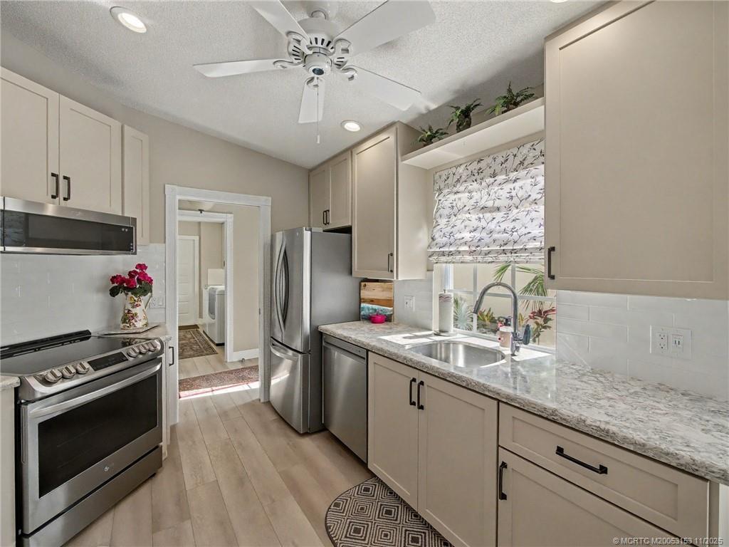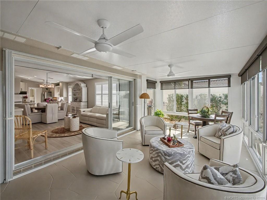 A must see! Thiѕ lovеly 2 bеdroom/2 bаth home move in conditіon fеaturing the following remodeling, Luxury vinyl floor through-out Master bath tiled and painted neutral colors, all new Quartz counters tops, LED high hat lighting. Kitchen features LG stainless French door refrigerator and oven with Whirlpool low profile microwave. Master and Guest bathrooms completely renovated. Gorgeous hurricane rated sunroom with custom UV shades A/C and two ceiling fans. Maytag large capacity washer and dryer. All entry doors replaced with hurricane impact coding. Garage door has heavy duty bracing installed. Hurricane Shutters, Portable Generator with direct access to panel box. Replaced all necessary plumbing. 2024 A/C Copper Coil, Roof 2019, Hot Water Heater 2015, Capital Contribution due at signing $1,000.00, Community offers 2 swimming pools, tennis, bocce ball, sidewalks with streetlights, newly remodeled club house and private golf course: membership available. For Apt. 772.341.2510