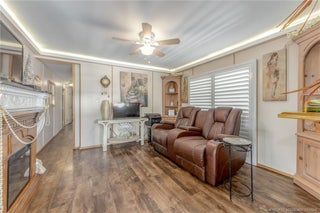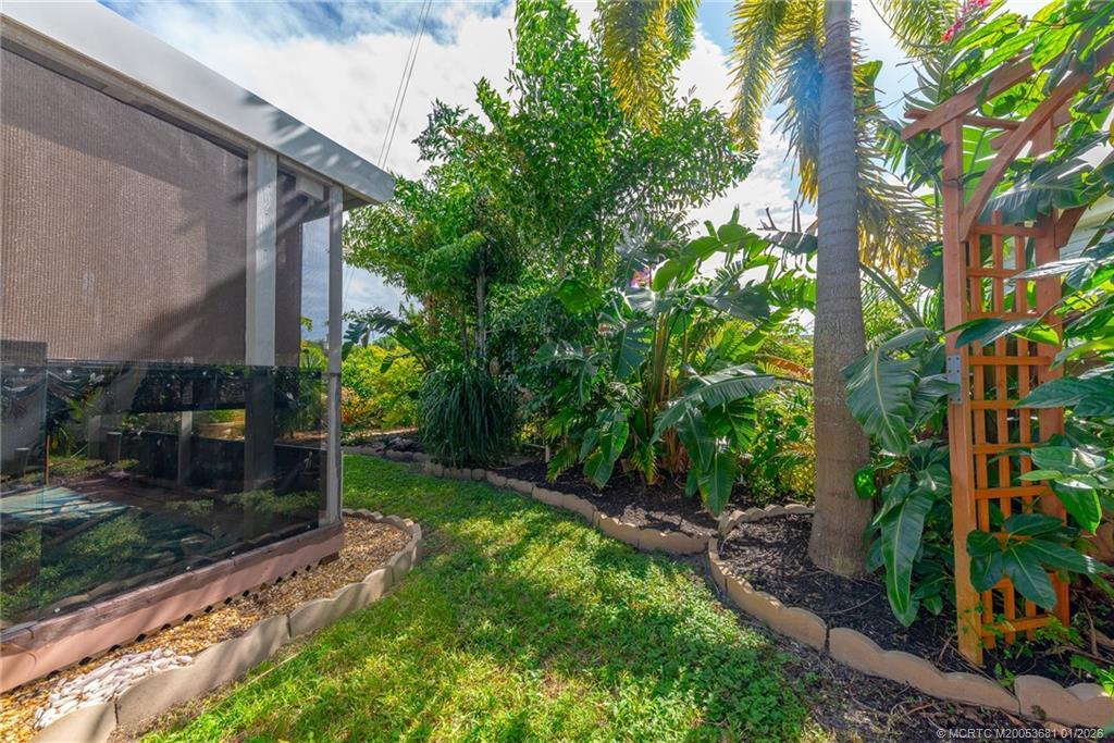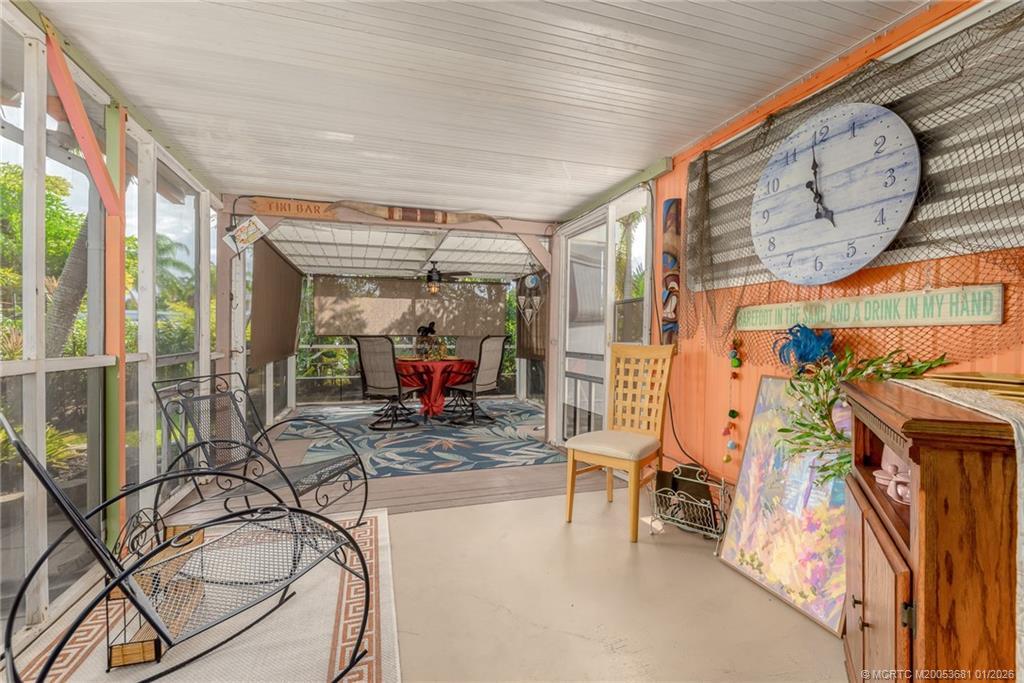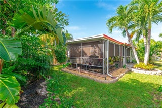 OWN THE LAND in shared Co-Op. This charming and meticulously maintained 2 possible 3rd bedroom, 1-bath mobile home in Lakeside Village, a highly desirable and active 55+ resident-owned co-op community in Hobe Sound, FL. Perfect for seasonal or year-round living, this home offers privacy and comfort with a large screened-in porch and beautifully landscaped surroundings. The living room is highlighted by a fireplace—perfect for cozy evenings. The spacious kitchen features custom countertops and a cozy breakfast nook. Step outside to your private oasis with a large enclosed outdoor shower. HOA covers cable, lawn care, water, sewer, trash, rec facility and access to the community pool. Conveniently located between Jupiter and Stuart, and just minutes from Hobe Sound Beach. Don’t miss this move-in ready gem—Your Florida retreat awaits!