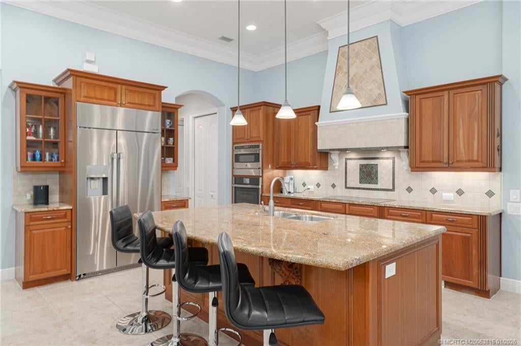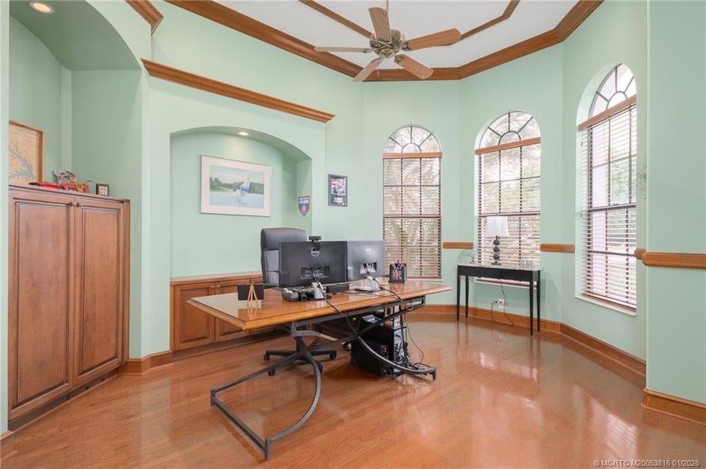 Prestigious Arthur Rutenberg Custom Residence presents a masterful display of craftsmanship where refined carpentry defines every living space. Direct Ocean Access to the Intracoastal Waterway with no fixed bridges, a prized end slip with exceptional maneuverability and a coveted sense of open water docking ease; offered as an additional purchase. This one-of-a-kind home showcases superior craftsmanship with solid core doors and custom finishes throughout. The central living space is defined by a generous kitchen and family room with striking island and enhanced by integrated surround sound system, offering a seamless balance of function and sophistication. A flexible 16 x 16 flex space/second office with private entrance full bed/full bath offers rare multi-generational living potential. Outside, a curated summer kitchen pairs with a distinctive fire feature and custom LED pool lighting, setting the stage for tranquil evenings and refined outdoor entertaining second to none.