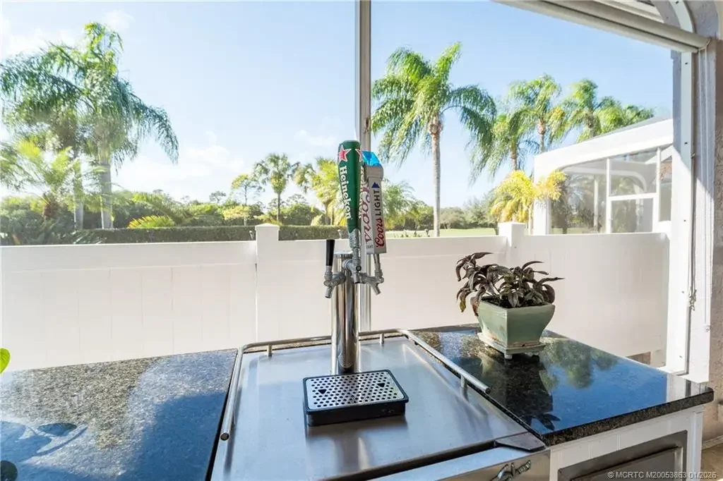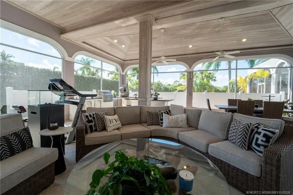 This stunning home, complete with impact windows and door and whole house generator is located in Hobe Sound Golf Club, a private gated golf community. The three bedrooms each offer ensuite remodeled bathrooms. This home is made for entertaining with the gourmet chef's kitchen including top of line appliances and professional gas range. The living and family rooms open out to covered patio with tongue and grove ceiling and a full summer kitchen including a pizza oven. The patio leads out to the screened pool and jacuzzi.