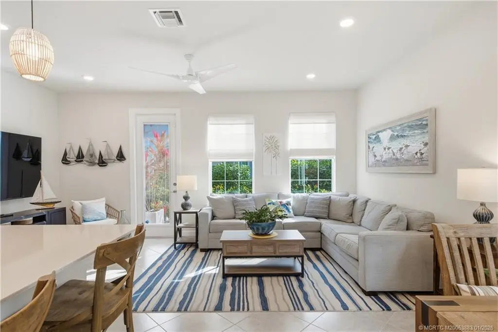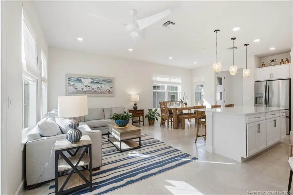 MUST-SEE 2022 Townhome in Stuart! This light, bright, and beautifully maintained residence has been gently lived in and is truly move-in ready. Inside, you’ll find an open-concept floor plan featuring: quartz countertops, large kitchen island, pendant lighting, tile flooring, an extended paver patio and impact glass throughout for added peace of mind and potential insurance savings. The two-car garage includes epoxy flooring and ample storage space. Enjoy effortless Florida living just minutes from downtown Stuart, the St. Lucie River and area beaches. The ideal location offers quick access to shopping, dining, and entertainment. HOA provides high-speed internet and professional landscaping for easy, low-maintenance living. A true gem in Stuart that you don’t want to miss. Furniture can be available for Sale.