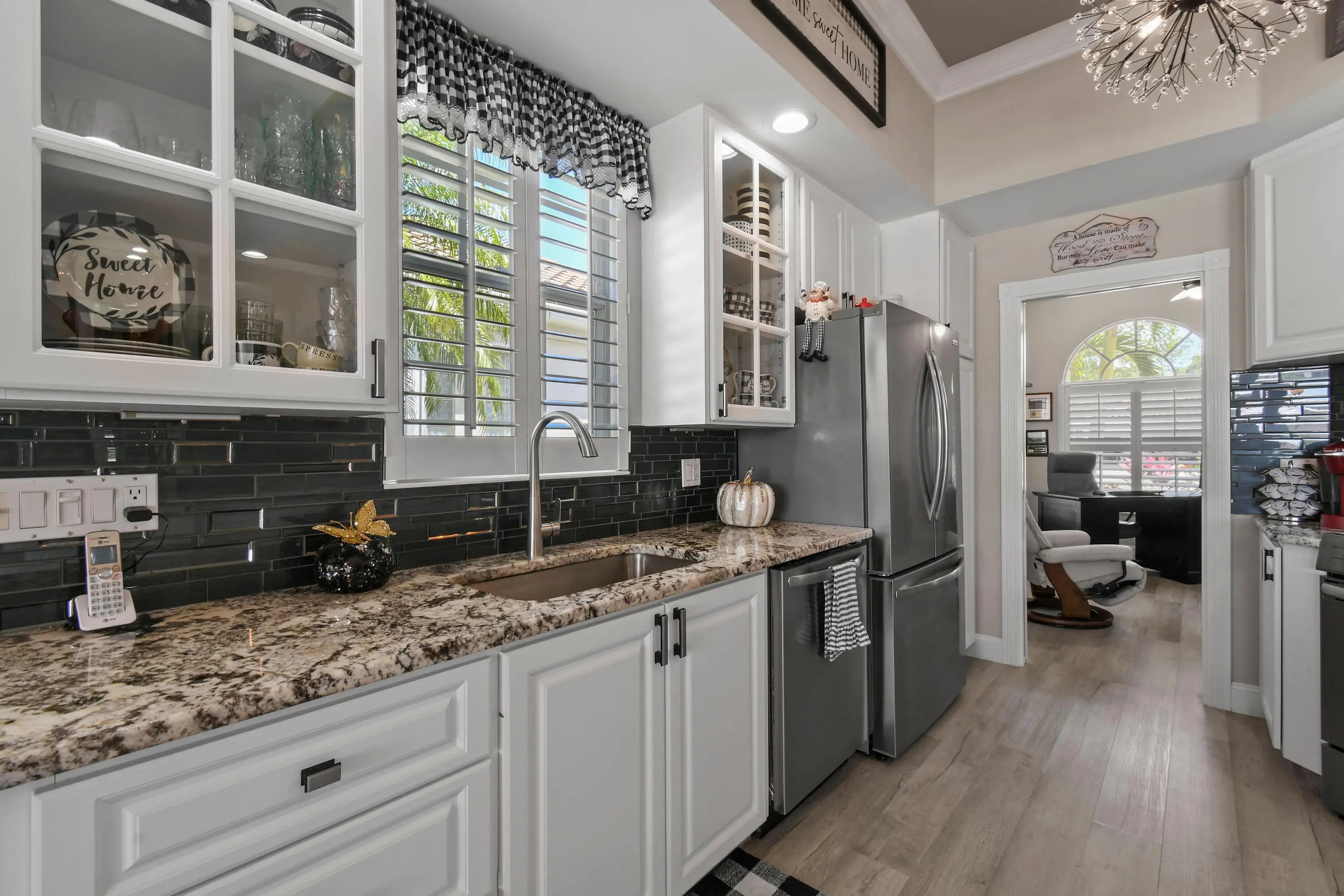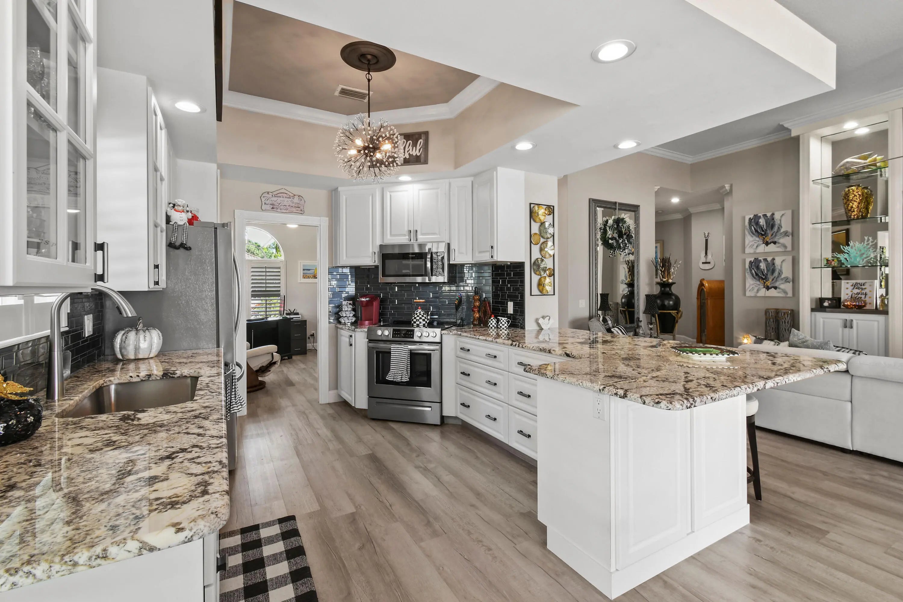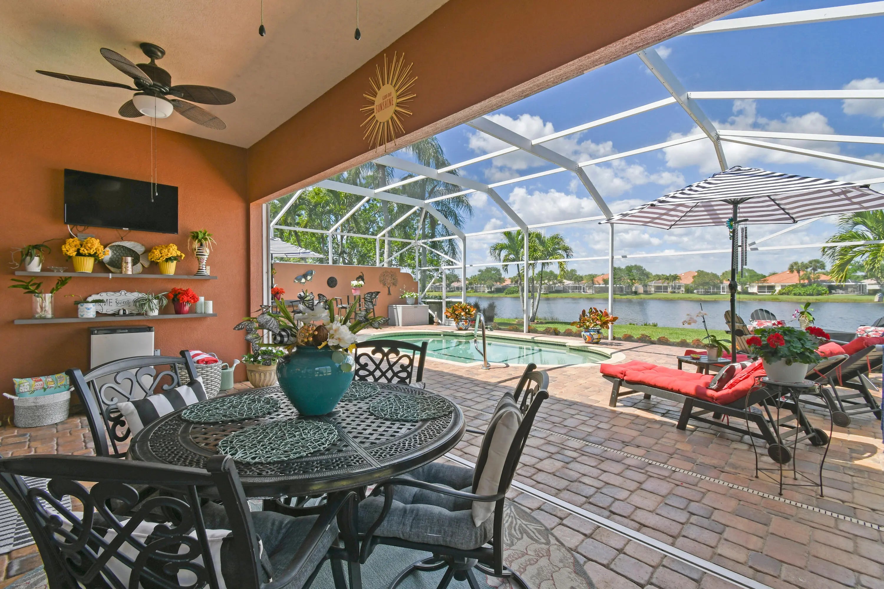 This lovely updated home offers stunning lake views, on a Premium Lot, sparkling pool, and the perfect blend of tranquility and Gated community living. Featuring 3 spacious bedrooms plus a flex room, this home is designed for both comfort and functionality, ideal for unwinding in style. Newer Roof,A//C, Appliances, open-floor plan highlighted by stylish modern LVP flooring throughout, creating a warm, inviting atmosphere perfect for relaxing or entertaining. This modern style updated home is a must see.The screened in patio offers a peaceful setting to enjoy your morning coffee or unwind poolside. Close to Spectacular Hobe Sound Beach, Shopping, Restaurants. 2 Community Pools,Tennis,Pickleball,Bocce, Golf available.