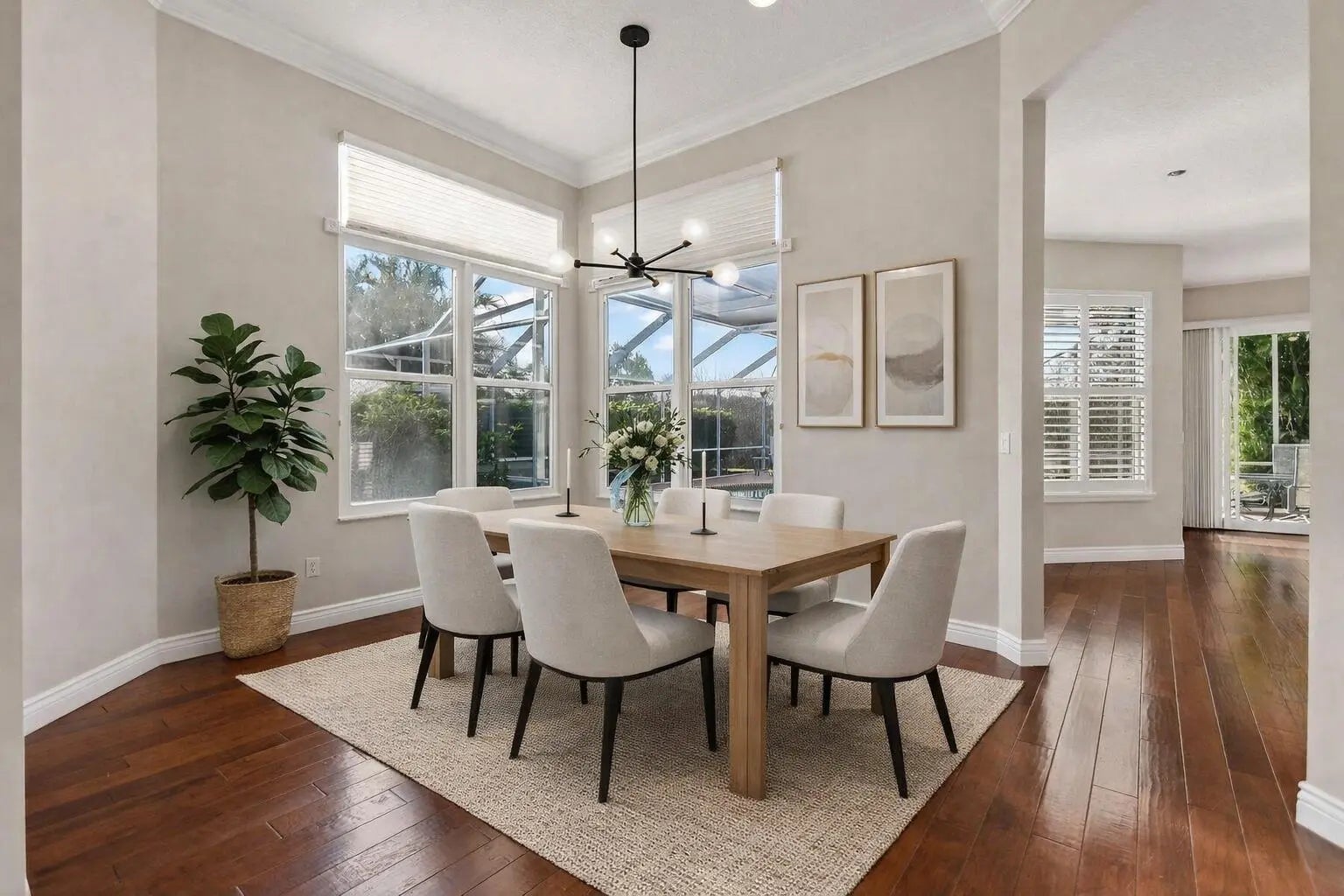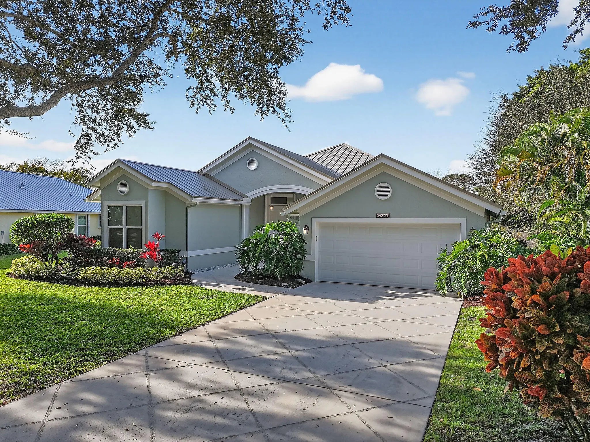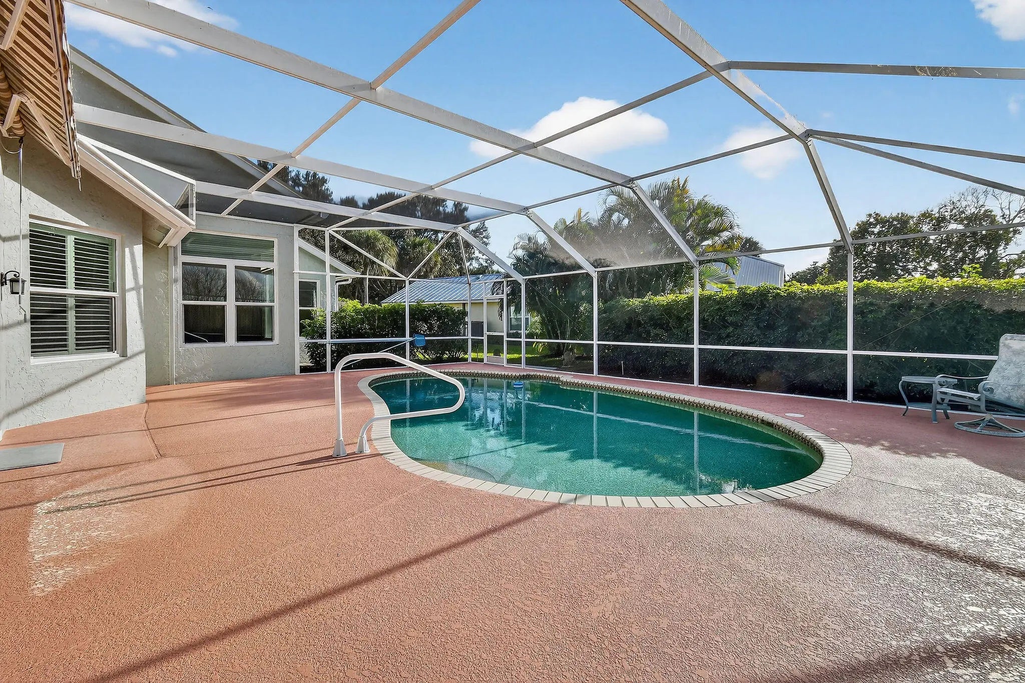 Experience refined Florida living in this exceptionally designed 3-bedroom, 3-bath residence with a den, located in the highly desirable Arbors of Hobe Sound. Bring all reasonable offers. Set in a private, tranquil setting, this home is filled with natural light and thoughtfully crafted for comfort and elegance. High ceilings, crown molding, and wood-look ceramic tile create a timeless interior, while the expansive primary suite offers a true retreat with double vanities, a walk-in shower, and a Roman soaking tub. Step outside to your own private oasis--a heated free-form pool with screened patio overlooking a peaceful pond, perfect for entertaining or unwinding while enjoying beautiful sunset views. Recent upgrades include a metal roof (2020), central A/C (2019), impact windows (20 and a new Pool Heater, providing both luxury and peace of mind. A new impact rated garage door has been installed as well. Ideally situated near a quiet cul-de-sac with access to a scenic nature trail, this home blends privacy, elegance, and lifestyle in one exceptional offering just minutes from everything Hobe Sound has to offer. Visit the Hobe Sound Restaurants, Golf Courses, the new Tennis Center, and the beach, all of which are within minutes. See this unique opportunity soon.