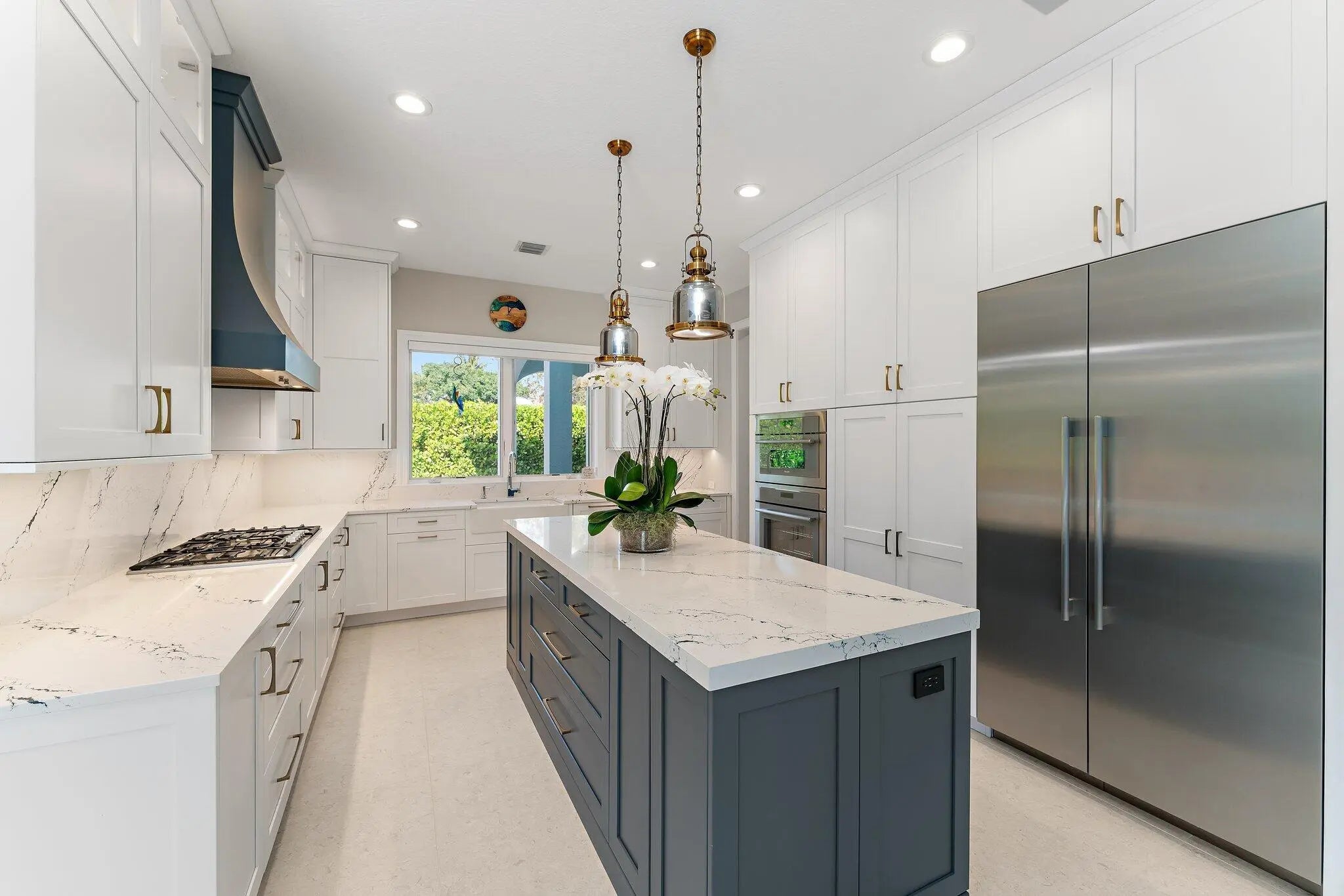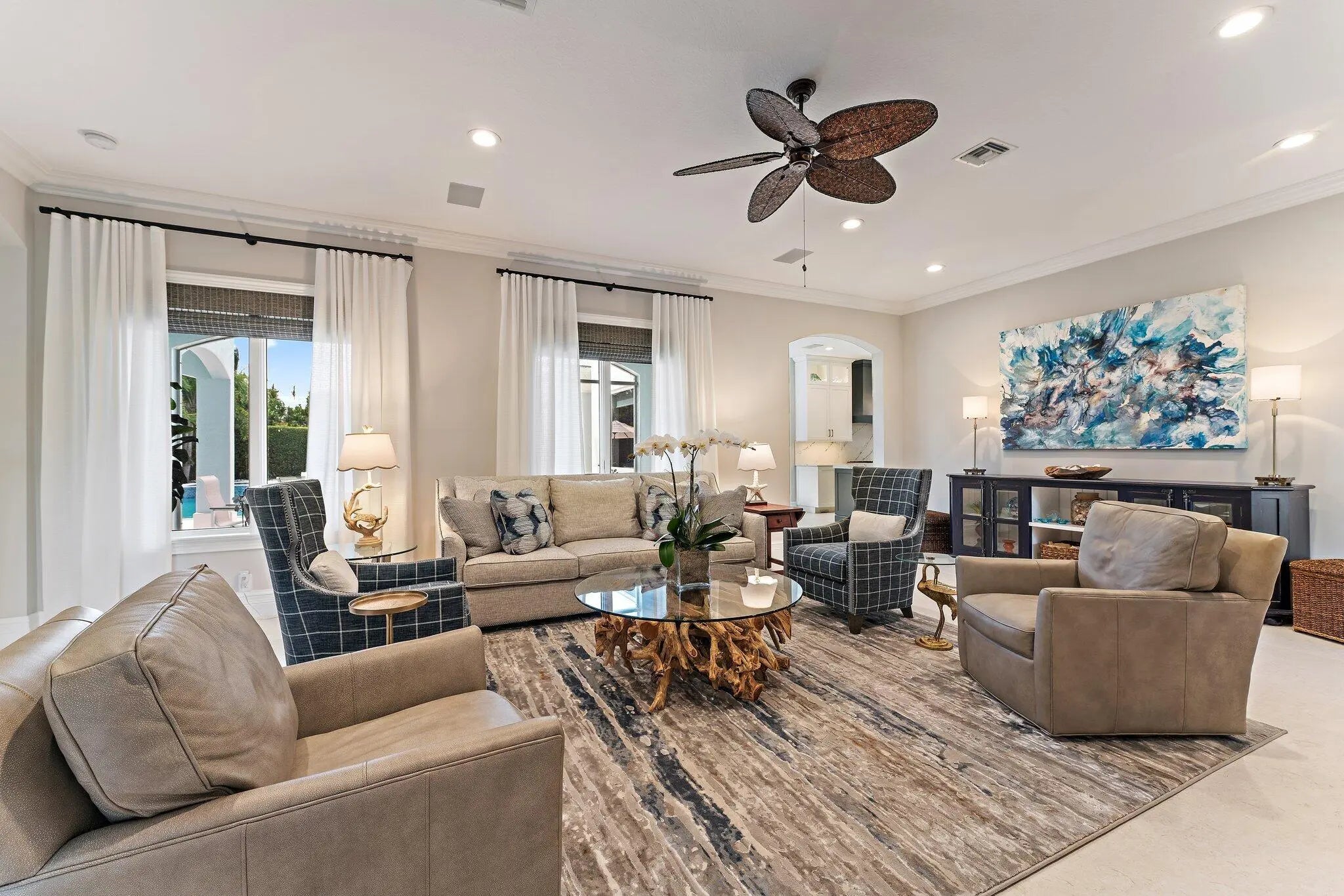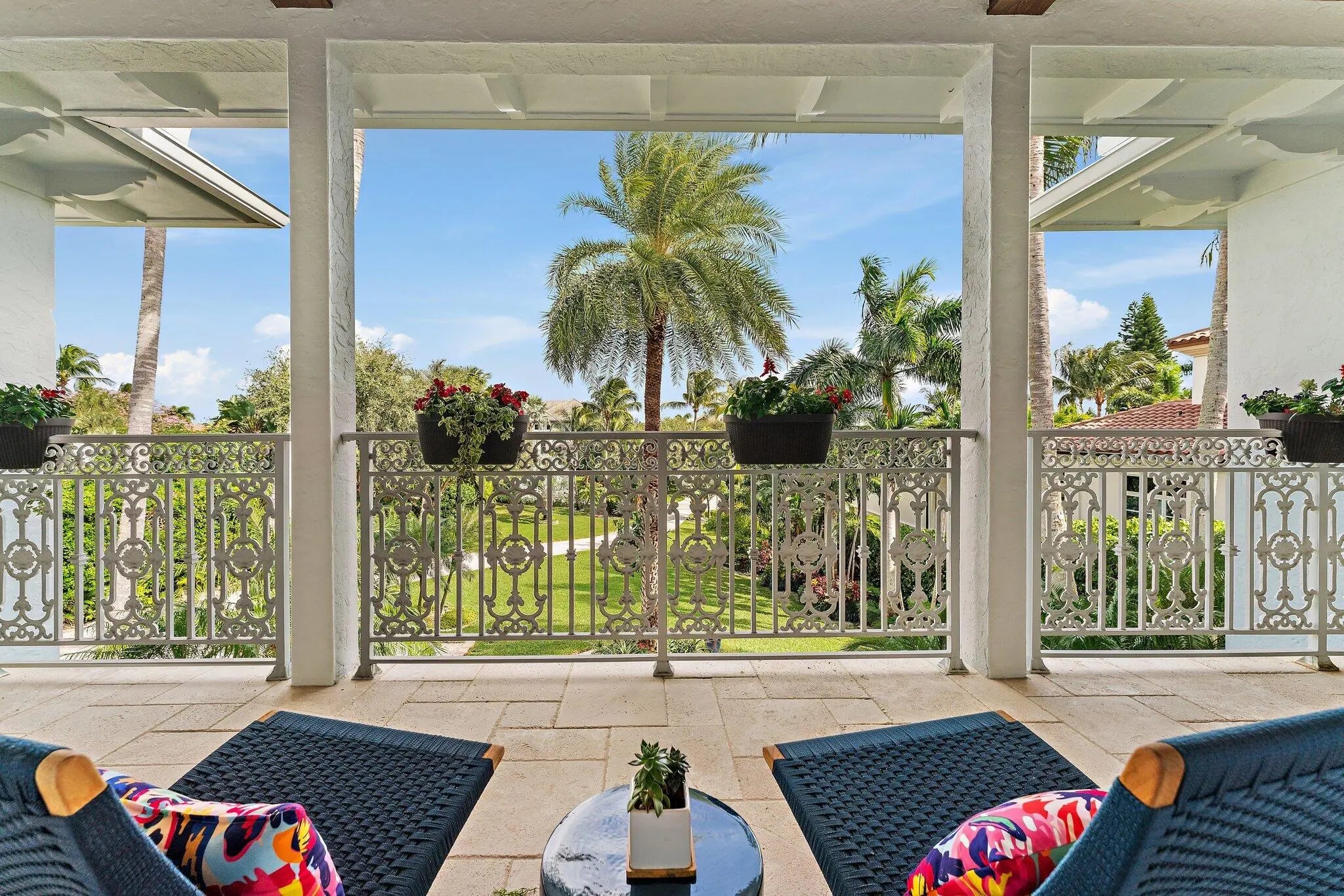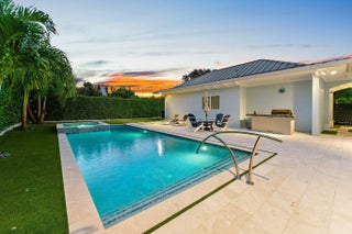 Now attractively repositioned with a recent price improvement, this 4-bedroom, 4.1 bath + two bonus rooms British West Indies-inspired residence captures year-round ocean breezes from its elevated 24- foot position across from the Intracoastal Waterway, set on a generous 3/4 acre lot. A comprehensive 2022 renovation showcases porcelain flooring, high-end cabinetry, and quartz countertops. Located in the desirable Indian Hills neighborhood, known for its gentle rolling terrain-an uncommon feature in Southeast Florida-this property is surrounded by a premier enclave, including numerous Intracoastal front estates. This residence blends coastal flair with fresh, modern touches, enhanced by a whole home generator, new standing seam metal roof (2022) and a 3-car climate controlled garage. The main level offers a seamless flow between the gourmet kitchen, dining area, butler's pantry and spacious room. A very private guest suite overlooking the pool provides comfort and separation for visitors, while a media room on the ground floor offers flexible living space. Upstairs, the primary suite is a serene retreat featuring a fireplace, two walk-in closets, a private office, and east- and west-facing balconies for both sunrise and sunset views. Two additional en suite bedrooms complete the second floor, providing comfort and privacy for family and guests. The media room and office offer bonus spaces that may be repurposed to suit a variety of needs. Outdoors, the resort -style pool and spa (2022) feature a saltwater filtration system and are surrounded by palms and a privacy hedge, creating a tranquil and private setting. A covered lanai provides shaded outdoor living. Plans are available to accommodate a future elevator should the need arise, offering flexibility for long-term living. Indian Hills offers Intracoastal access and is directly across from Jupiter Hills Golf Club, and just a short drive to other world class golf destinations including The Medalist, McArthur, Apogee and Atlantic Fields. Also, near the pristine beaches of Jupiter Island, as well as fine dining and upscale shopping-and only 30 minutes from both PBI and Witham Field. This home combines elegance, privacy and an unbeatable location-Florida living at its finest!