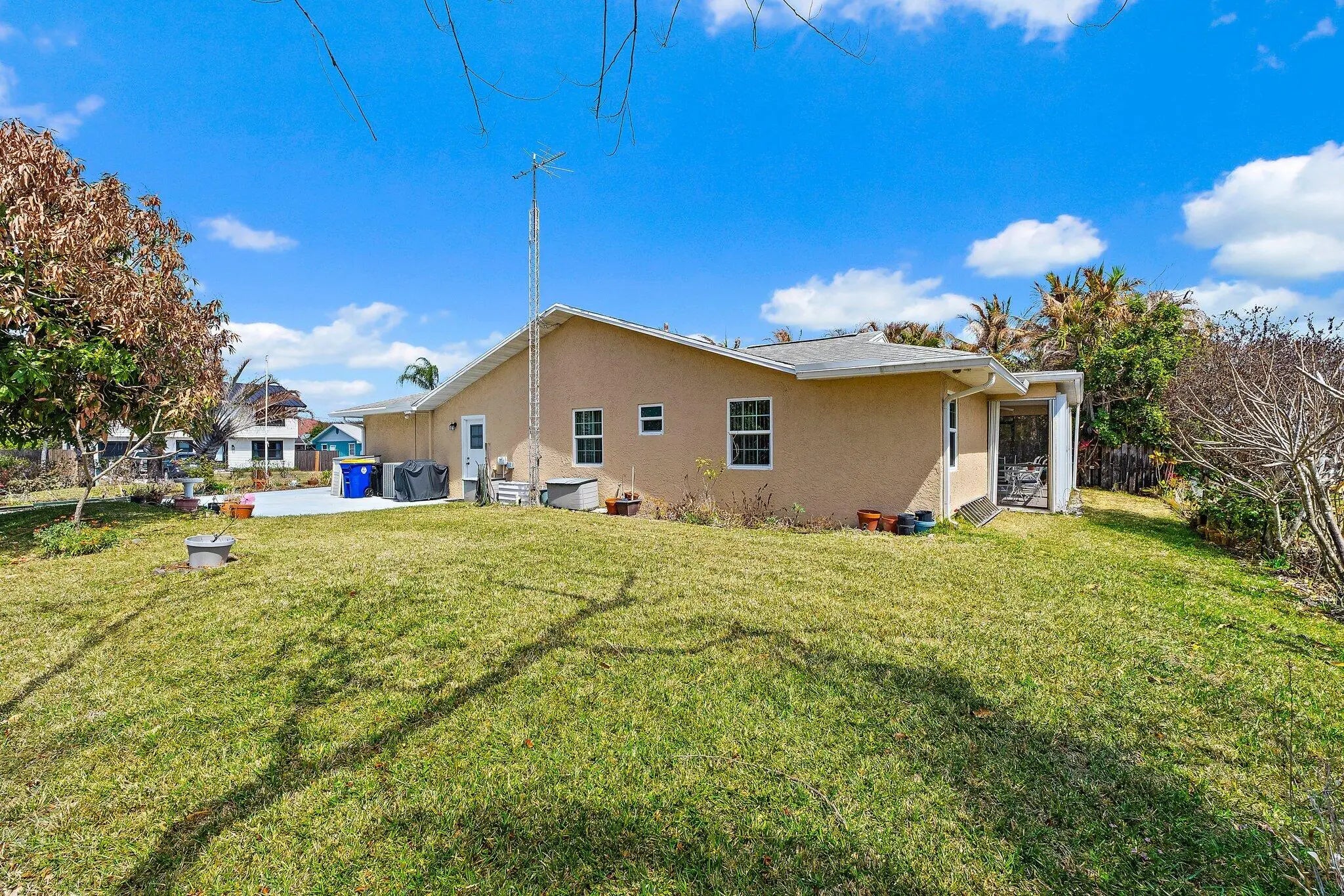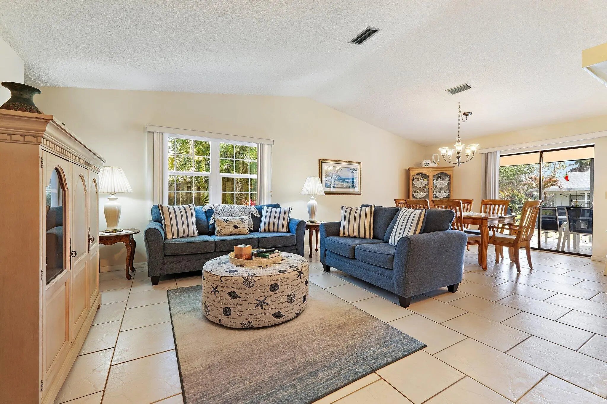 Enjoy living in the quaint town of Hobe Sound, close to beaches, with many parks, shops and restaurants near by! It's a great walking and biking community too! This 3 bedroom, 2 bath home has been lovingly cared for and has many great features, including a newer roof, Impact Windows for the home and accordion shutters for the LARGE screened in patio across the back of the home! Enjoy Public Drinking Water with well water for your lawn and gardens! A new drain field was installed in 2024, and the irrigation was updated then too! The inside has been freshly painted and new LVP flooring installed. The circular driveway makes it easy to park your Boat or RV in the side yard or the driveway extension. NO HOA. Home is being offered fully furnished, or with furniture removed.