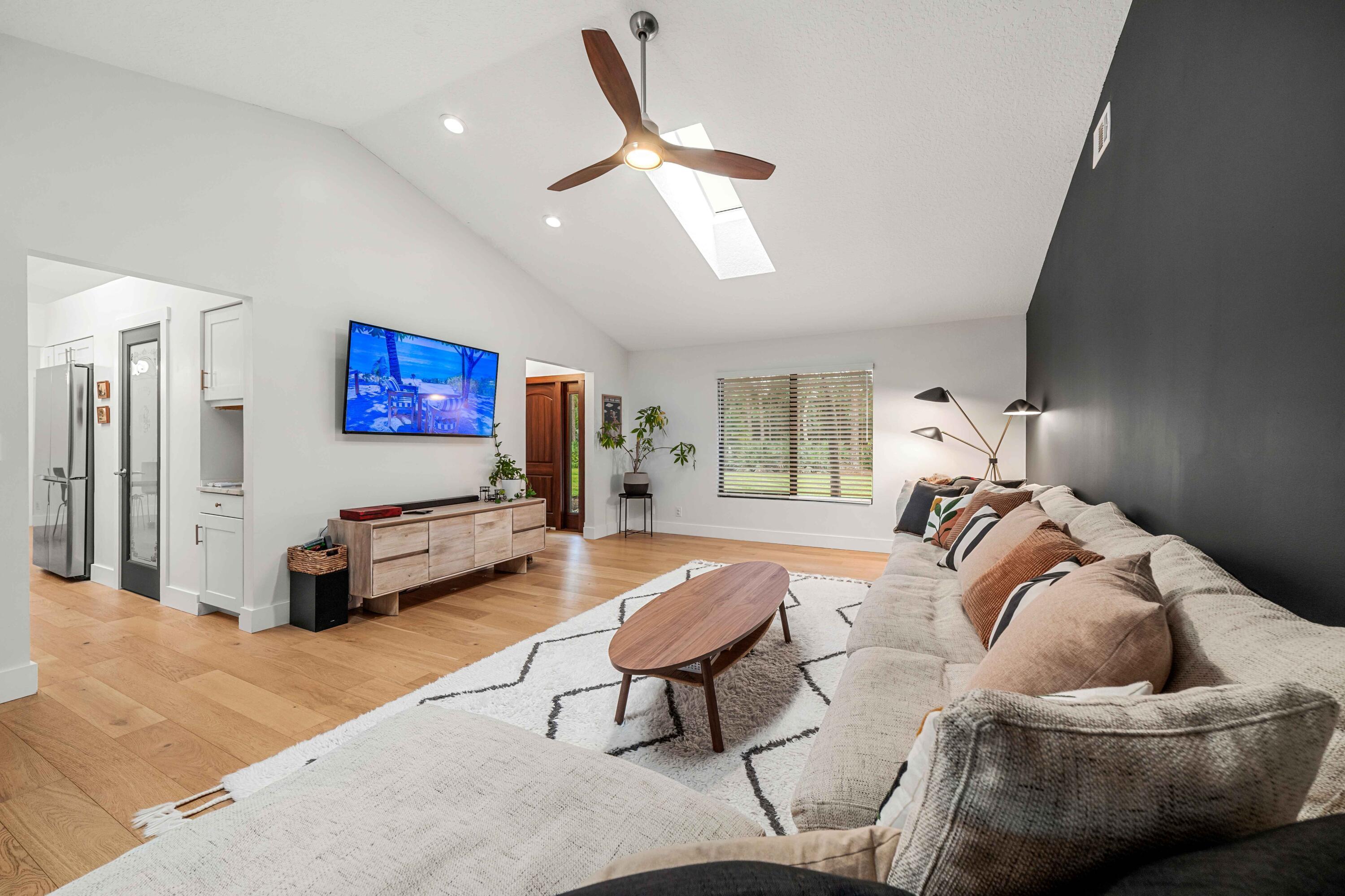 Modern farmhouse on 1.55 acres--no HOA--w/ full 2BR/2BA guest house, pool, 2025 workshop & solar. Renovated main home (3,657 SF living; impact glass, vaulted ceilings, engineered hardwood) opens to a screened, app-controlled saltwater pool & spa. Designer kitchen, spa-style primary, and flexible office/den. Separate ADA-friendly guest house includes full kitchen & garage--ideal for multigenerational living, guests, or rental. Solar + Enphase microinverters keep electric bills low; transferable warranties. Private, fenced grounds w/ fruit trees and irrigation. Bring boats/RVs--no HOA. Minutes to A-rated schools and Jupiter amenities. Ask for the features sheet, solar data, and virtual tourResort-style pool surrounded by mature landscaping and wraparound patio 20x25 detached workshop for hobbies, business, or storage Impact windows, metal roof, and solar panels = lower insurance + energy savings Room for RVs, boats, horses, chickensyou name it! This move-in-ready property offers the ultimate Jupiter Farms lifestyle just minutes from town. Whether you're seeking multi-gen living, hobby farming, or a secluded sanctuary, this one checks every box. =Í Showings by appointment onlycome experience this one-of-a-kind escape for yourself.