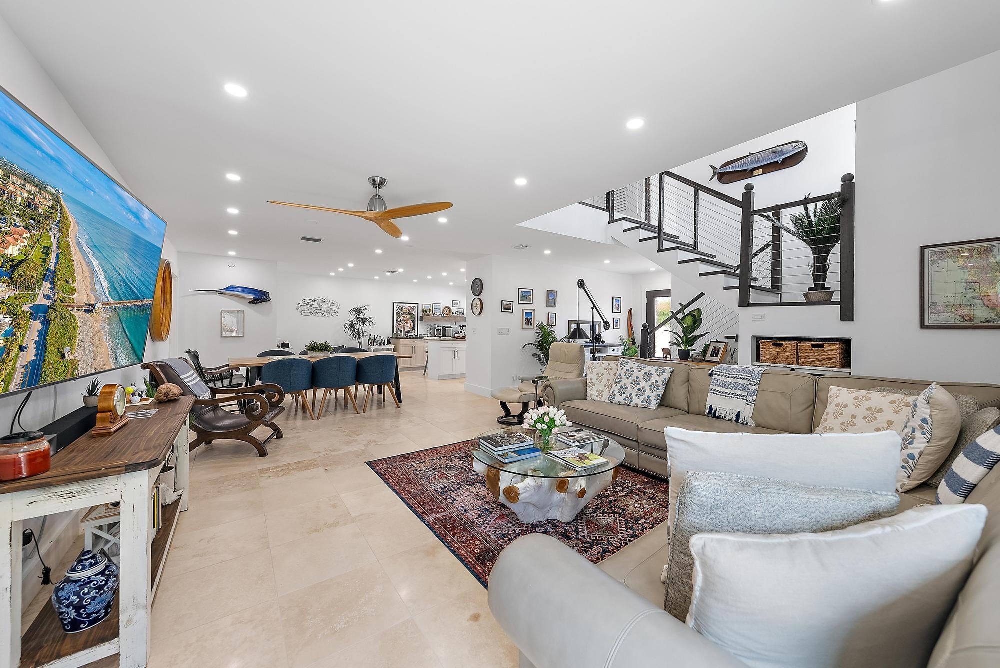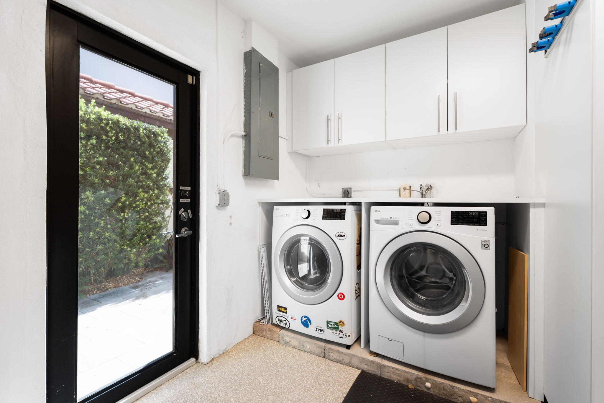 Enjoy coastal living in this single-family home in Via Del Mar, offering easy accessibility to the beach and close proximity to Jupiter's best dining and parks. This 3-bedroom, 2-bath home features a spacious open layout, private patio, and one-car garage. The split-bedroom design offers comfort and privacy, while the low HOA covers the exterior maintenance for an easy laid-back lifestyle. Perfect as a year-round residence or seasonal retreat in one of Jupiter's most desirable beachside communities.The kitchen is a true showstopper, featuring sleek white cabinetry, stainless steel appliances, a large island, a built-in sidebar fridge, and ample storage and counter spaceperfect for the home chef or avid entertainer. The primary suite is a serene retreat, complete with sliding glass doors to the backyard and a spa-like ensuite featuring a walk-in shower, soaking tub, and dual sinks set in elegant countertops. Indoor and outdoor living blend seamlessly, with inviting living spaces that flow out to your private backyard oasis. The fully enclosed backyard is highlighted by deck tiling, a summer kitchen with grill and fridge, a beautiful outdoor shower, and a power awning for added shade. This meticulously maintained home also offers peace of mind with full impact glass, a hurricane-rated roof, and a wind mitigation report. Major updates include a new roof (2022), new AC and mini-split system (2022), all-new AC ductwork (2024), new interior doors and hardware, a new front door, updated gutters and downspouts, and a finished garage with attic access. Fresh exterior paint, upgraded lighting, and landscape lighting complete the picture. Via Del Mar residents enjoy access to a sparkling community pool and worry-free lawn care in a well-kept, beautifully maintained neighborhood. With Jupiter's pristine beaches, upscale dining, and premier shopping just minutes awayand easy access to I-95, the Florida Turnpike, and Palm Beach International Airportthis home offers the perfect balance of luxury, convenience, and coastal living.