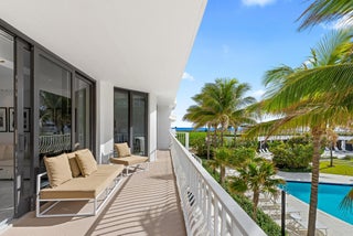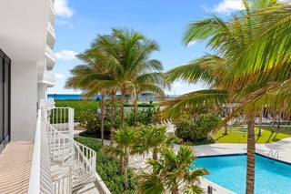 Fabulous Sloan's Curve condo with 2 bedrooms, 2 bathrooms, and powder room. This light filled, south-facing unit features a fantastic open floor plan and a large, covered balcony with beautiful views of the resort style pool area and peeks of the ocean. In addition to the serene views, the spacious balcony also features a spiral staircase that leads to the pool and beach access. Sun-soaked great room with wet bar is perfect for entertaining guests. Primary wing with dual walk-in closets, large bath, and dressing area that could double as an office. The full-service, oceanfront Sloan's Curve Condominium offers 24-hour security, full time manager, exercise facilities, tennis courts, beautiful pool area, and beach access for residents.