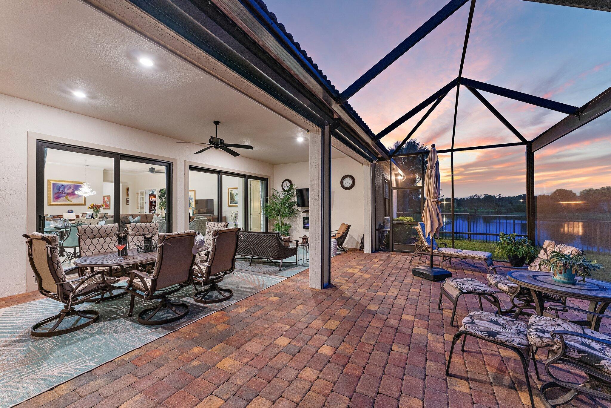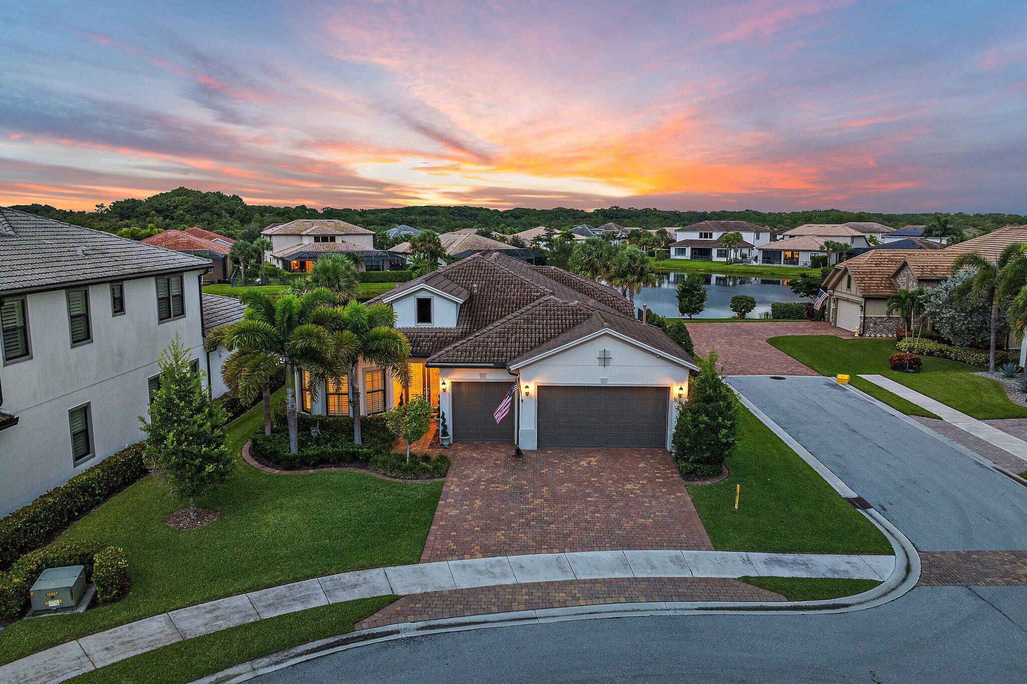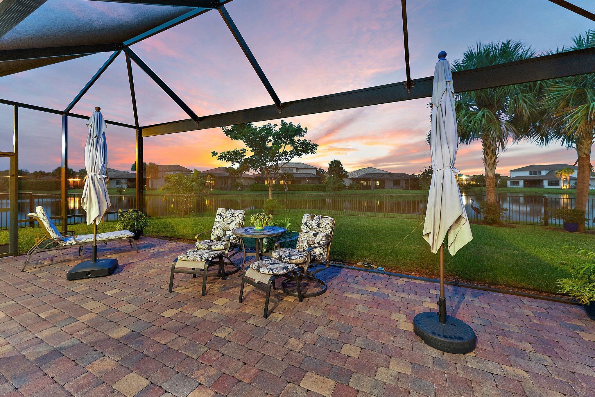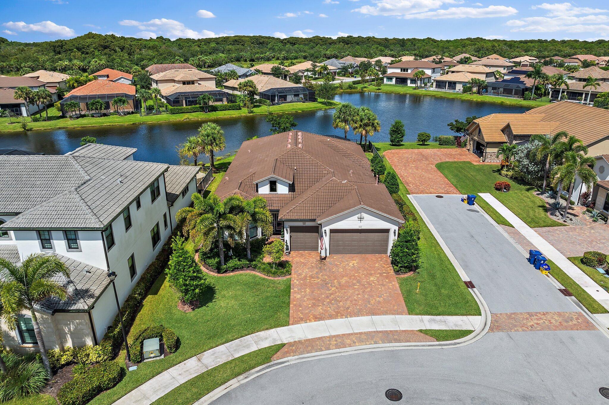 This extremely popular one-story ''Stonewater'' model home by DiVosta is located in the heart of the community, at the end of a cul-de-sac, and overlooking a large lake. Special features include a whole house, gas generator; patio roll-up sun shades and armor hurricane roll-up blinds; Twin Eagle gas grill; crown molding; ''no-seeum'' patio screening; enlarged garage with built-in cabinetry and epoxy floor; solid core doors throughout, and much more.