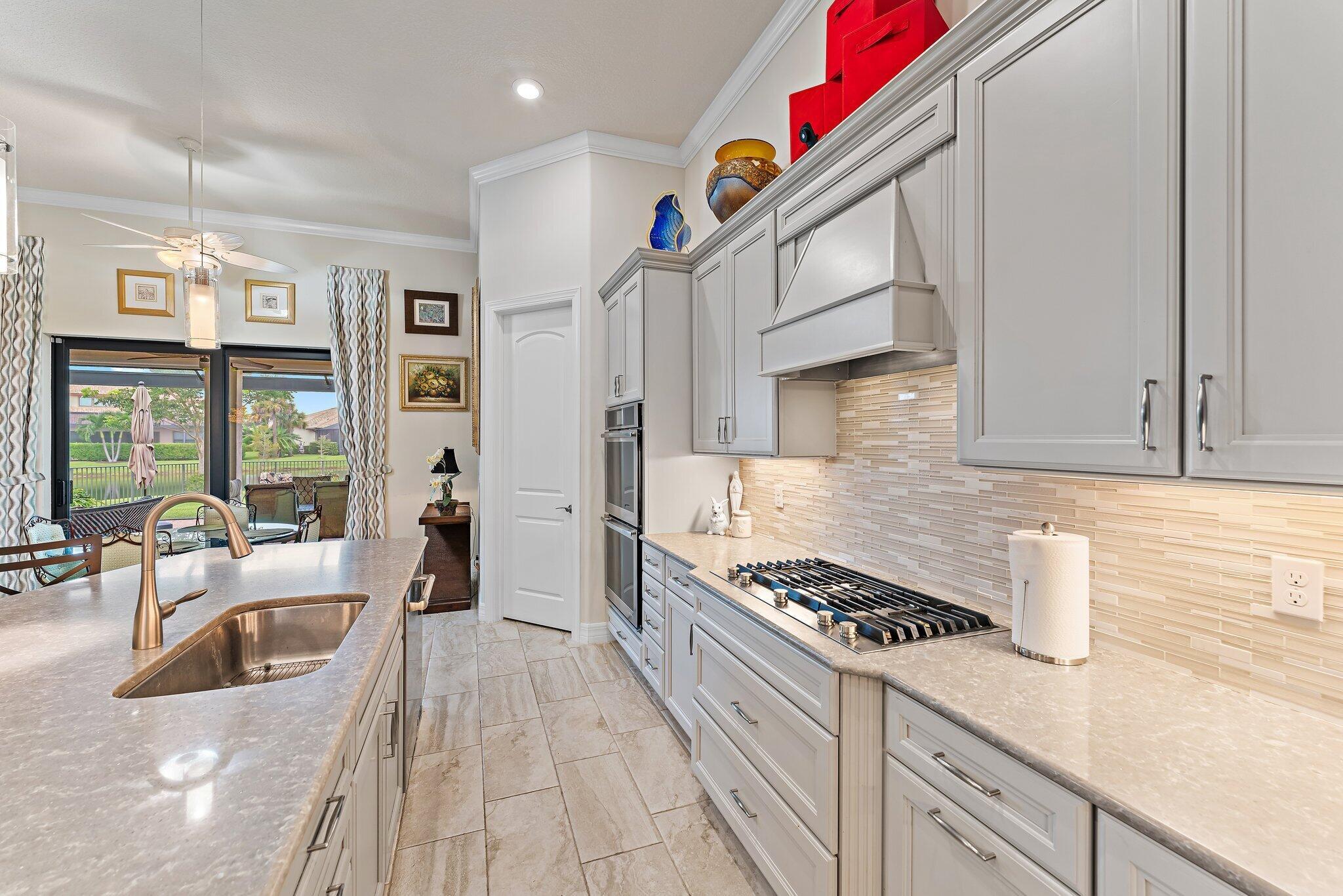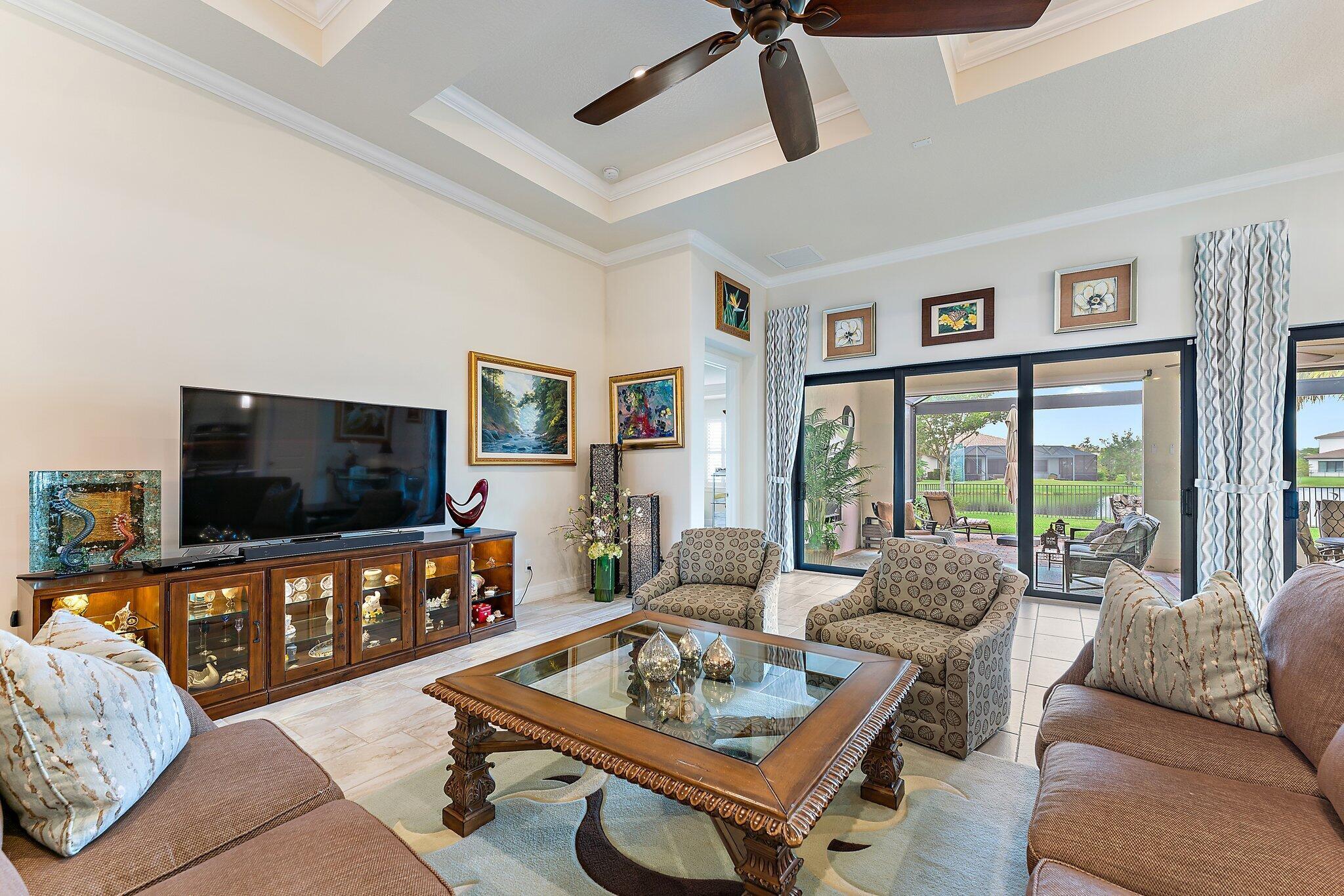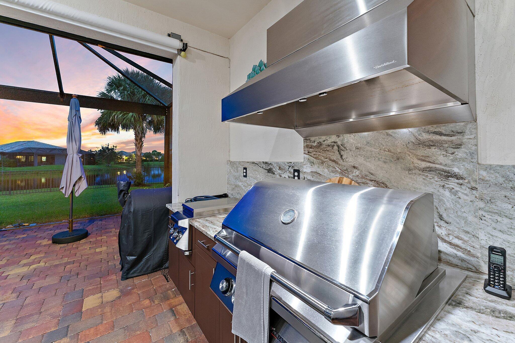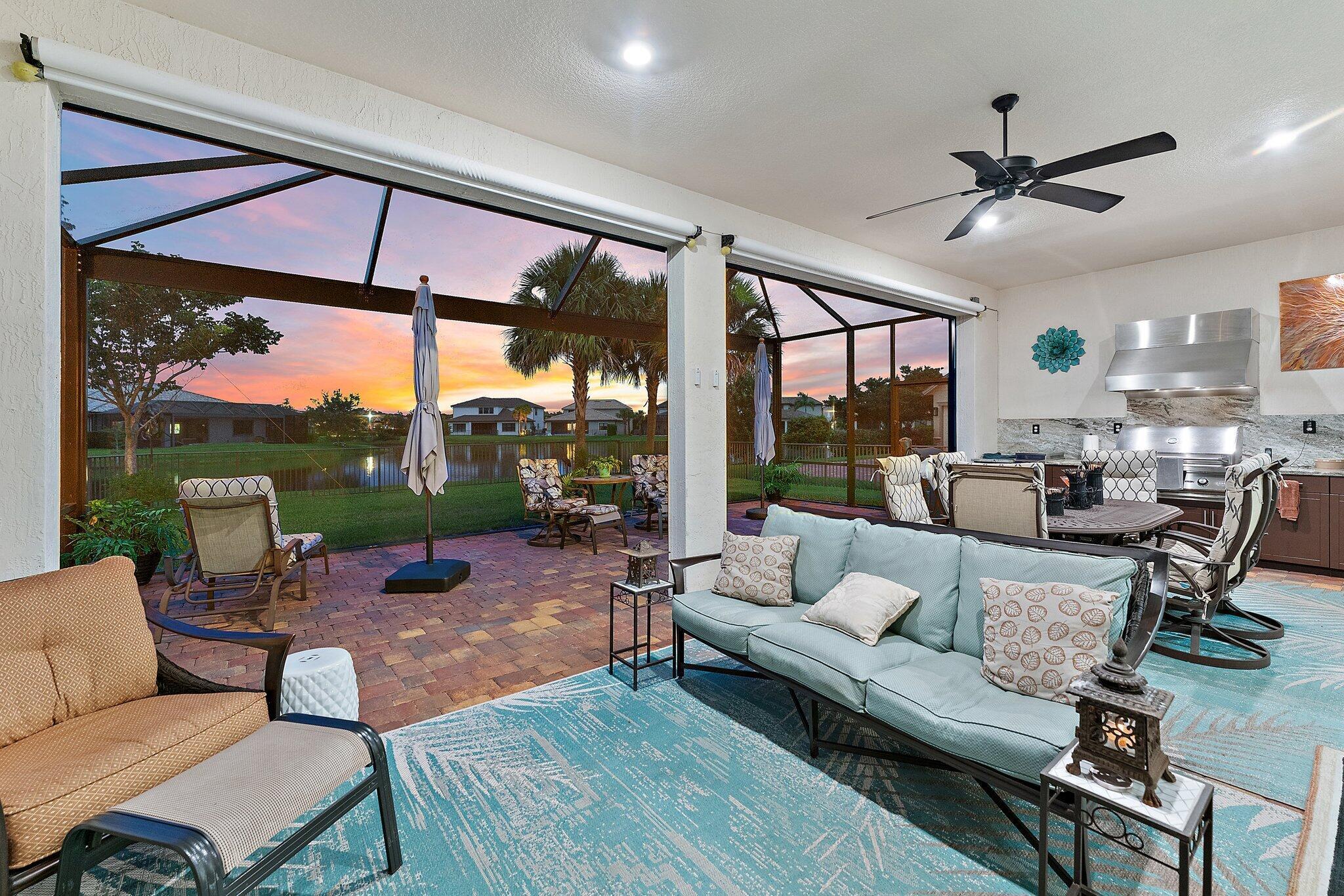 This extremely popular one-story ''Stonewater'' model home by DiVosta is located in the heart of the community, at the end of a cul-de-sac, and overlooking a large lake. Special features include a whole house, gas generator; patio roll-up sun shades and armor hurricane roll-up blinds; Twin Eagle gas grill; crown molding; ''no-seeum'' patio screening; enlarged garage with built-in cabinetry and epoxy floor; solid core doors throughout, and much more.