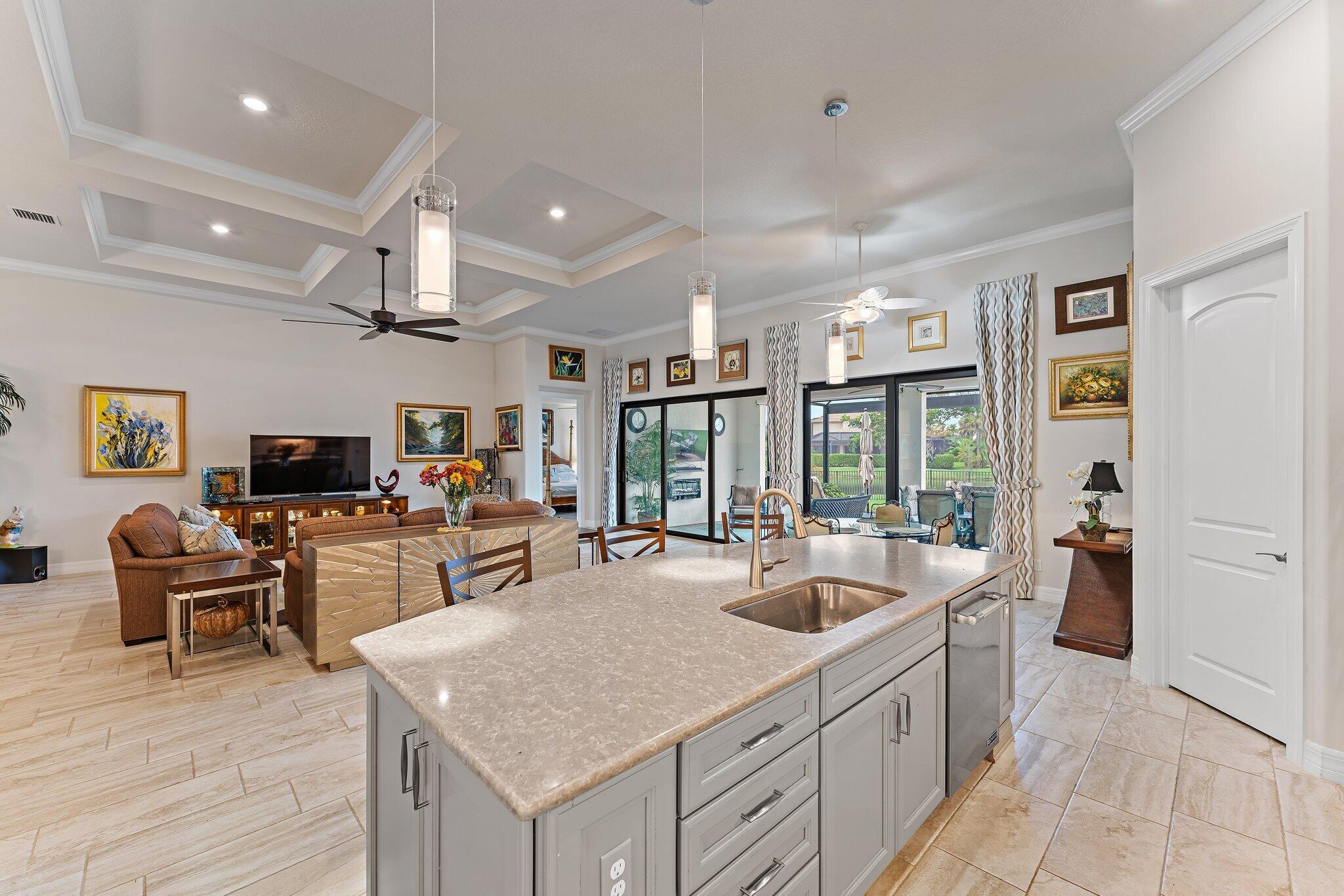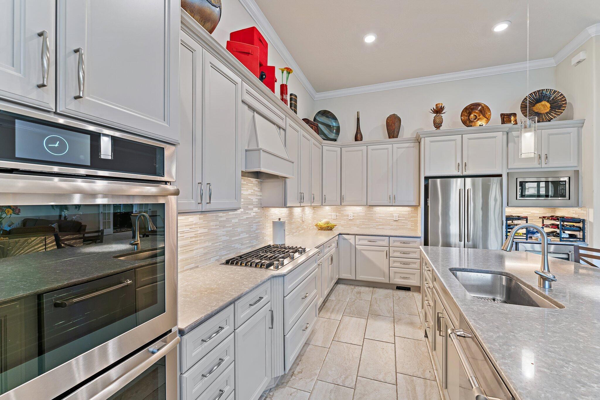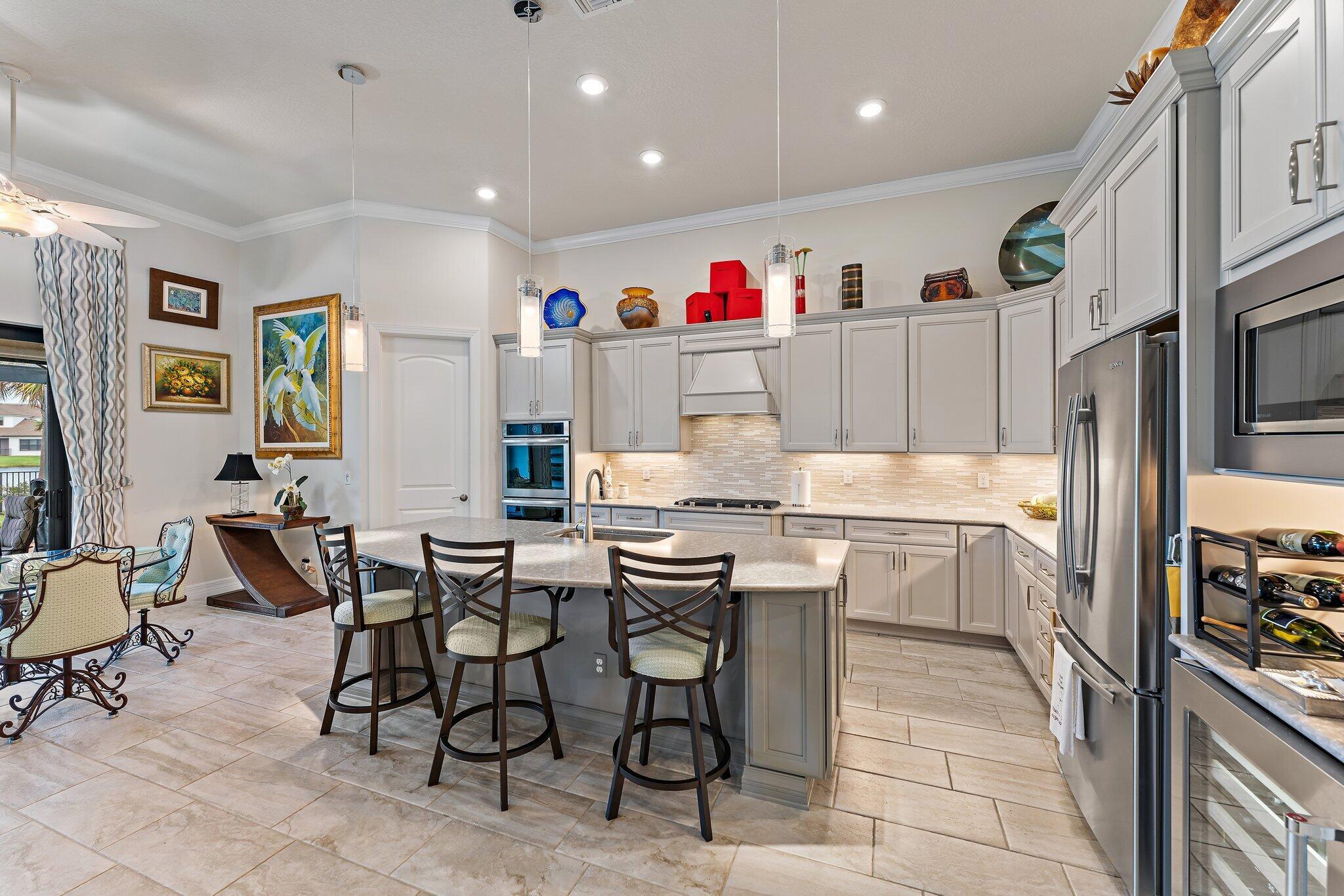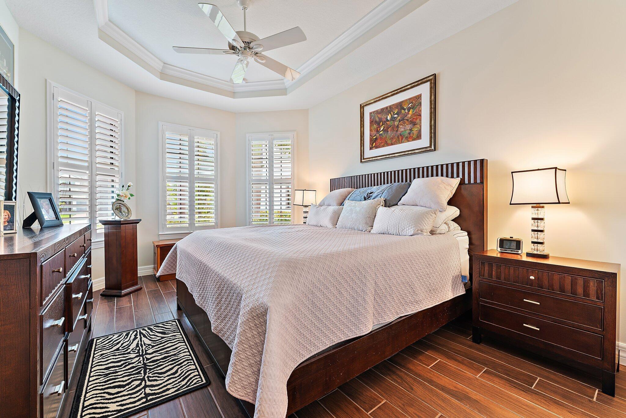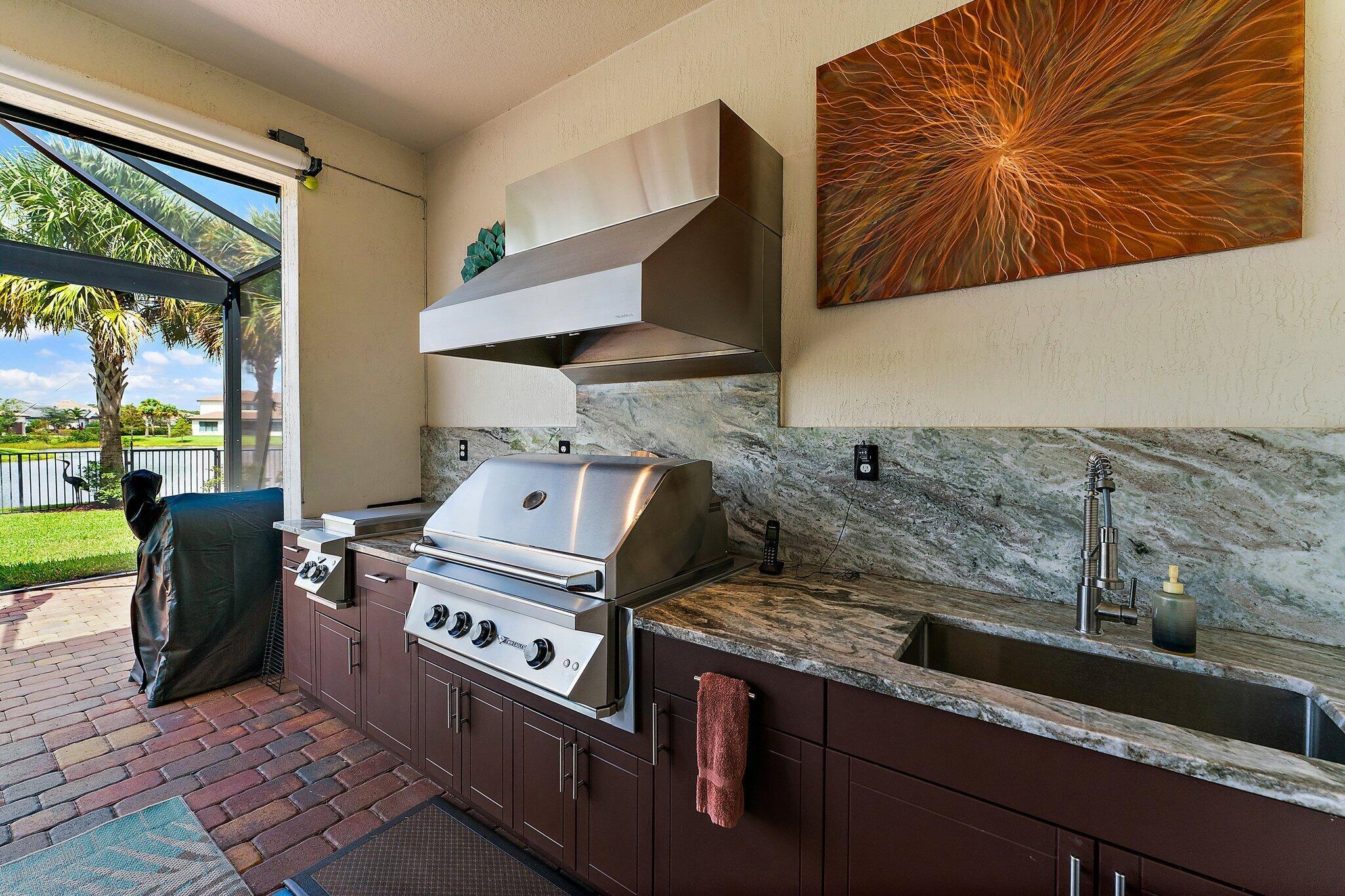 This extremely popular one-story ''Stonewater'' model home by DiVosta is located in the heart of the community, at the end of a cul-de-sac, and overlooking a large lake. Special features include a whole house, gas generator; patio roll-up sun shades and armor hurricane roll-up blinds; Twin Eagle gas grill; crown molding; ''no-seeum'' patio screening; enlarged garage with built-in cabinetry and epoxy floor; solid core doors throughout, and much more.