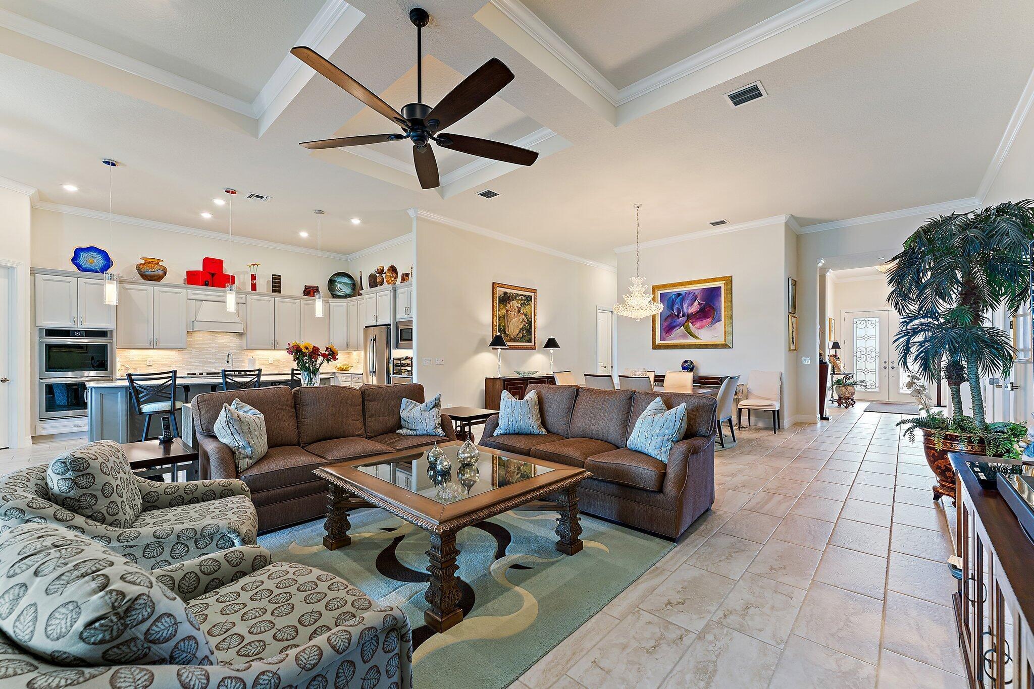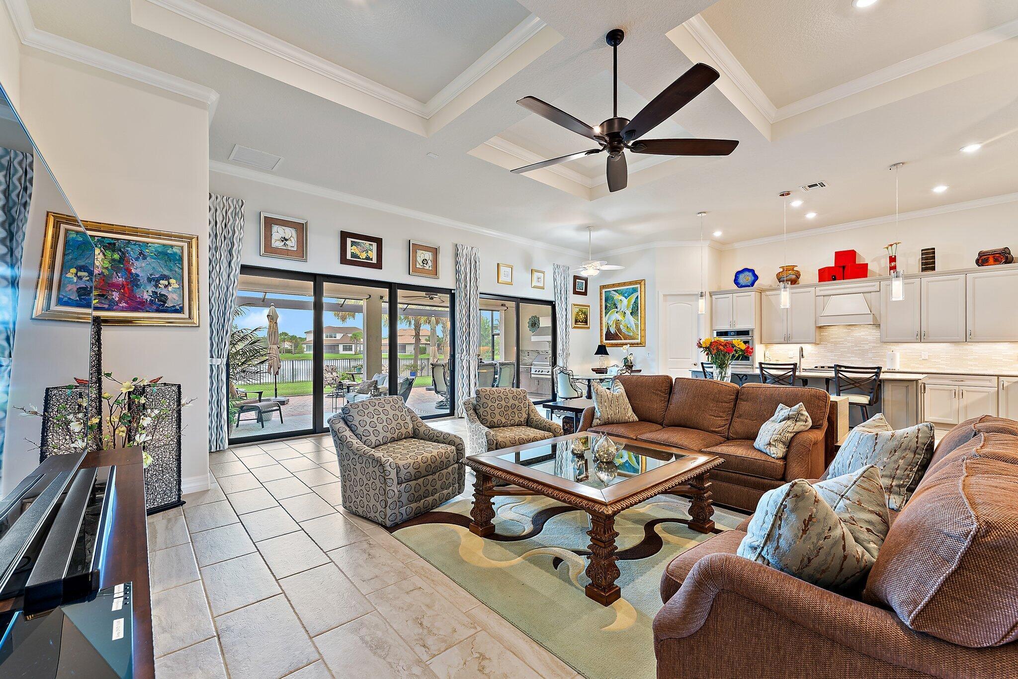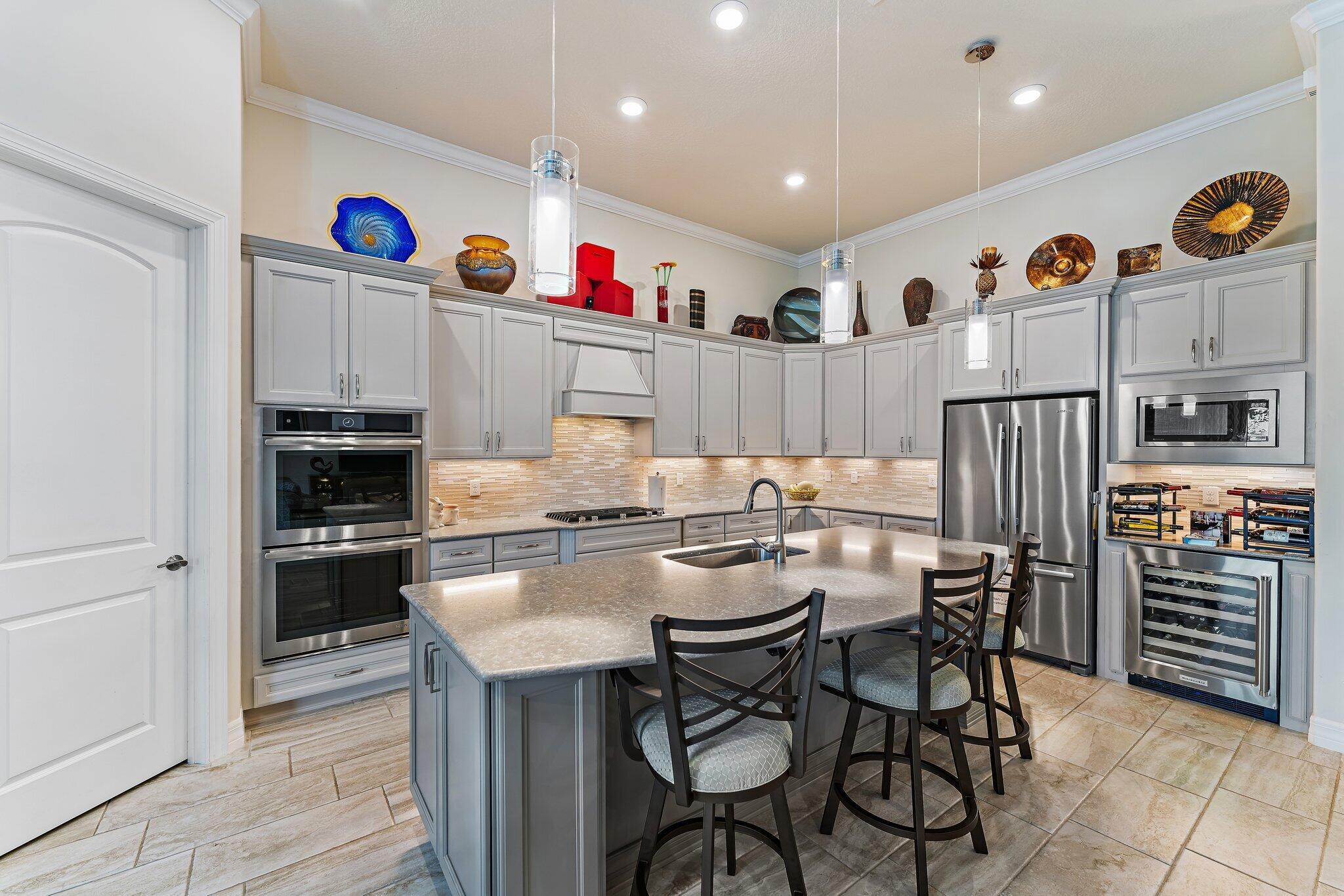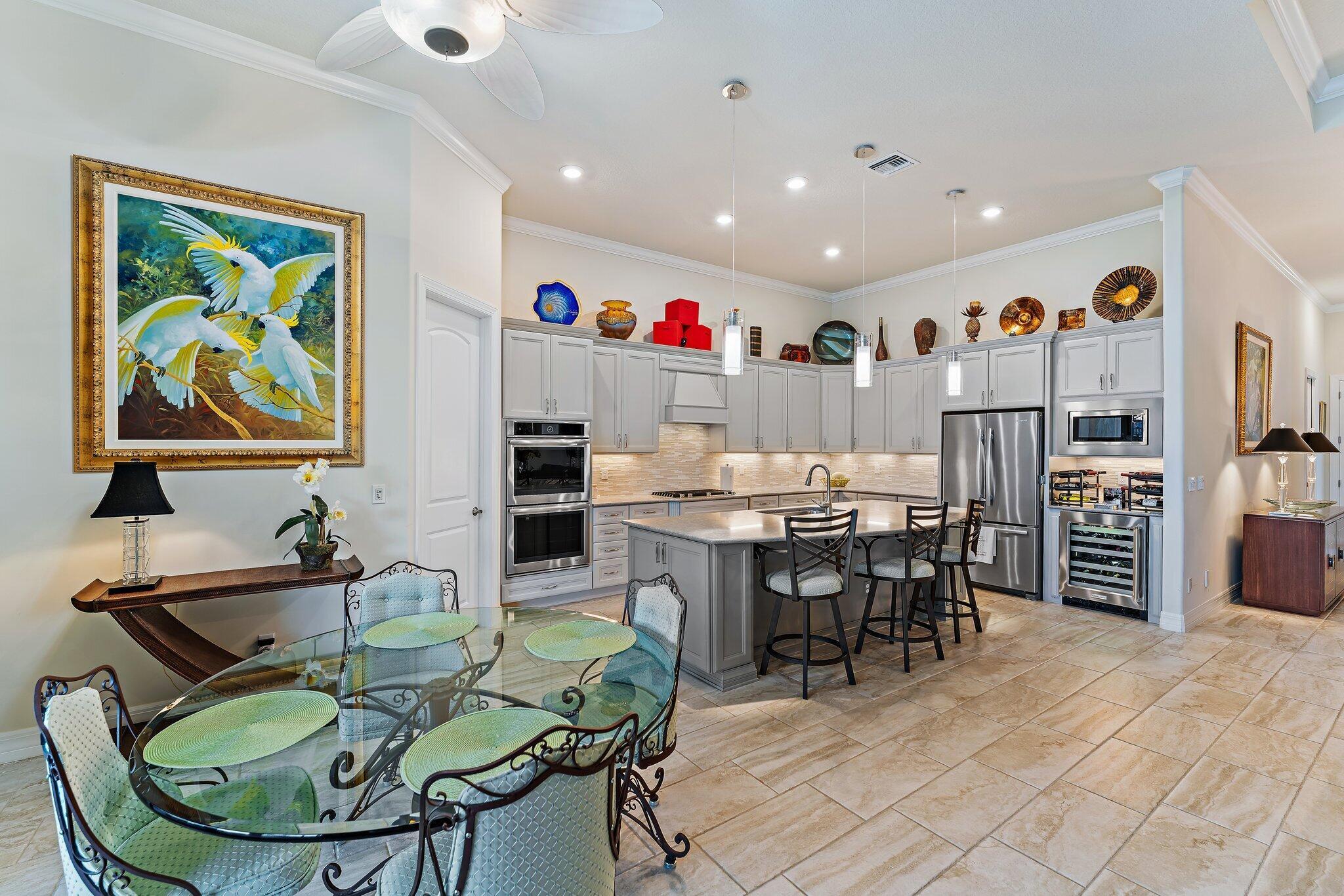 This extremely popular one-story ''Stonewater'' model home by DiVosta is located in the heart of the community, at the end of a cul-de-sac, and overlooking a large lake. Special features include a whole house, gas generator; patio roll-up sun shades and armor hurricane roll-up blinds; Twin Eagle gas grill; crown molding; ''no-seeum'' patio screening; enlarged garage with built-in cabinetry and epoxy floor; solid core doors throughout, and much more.