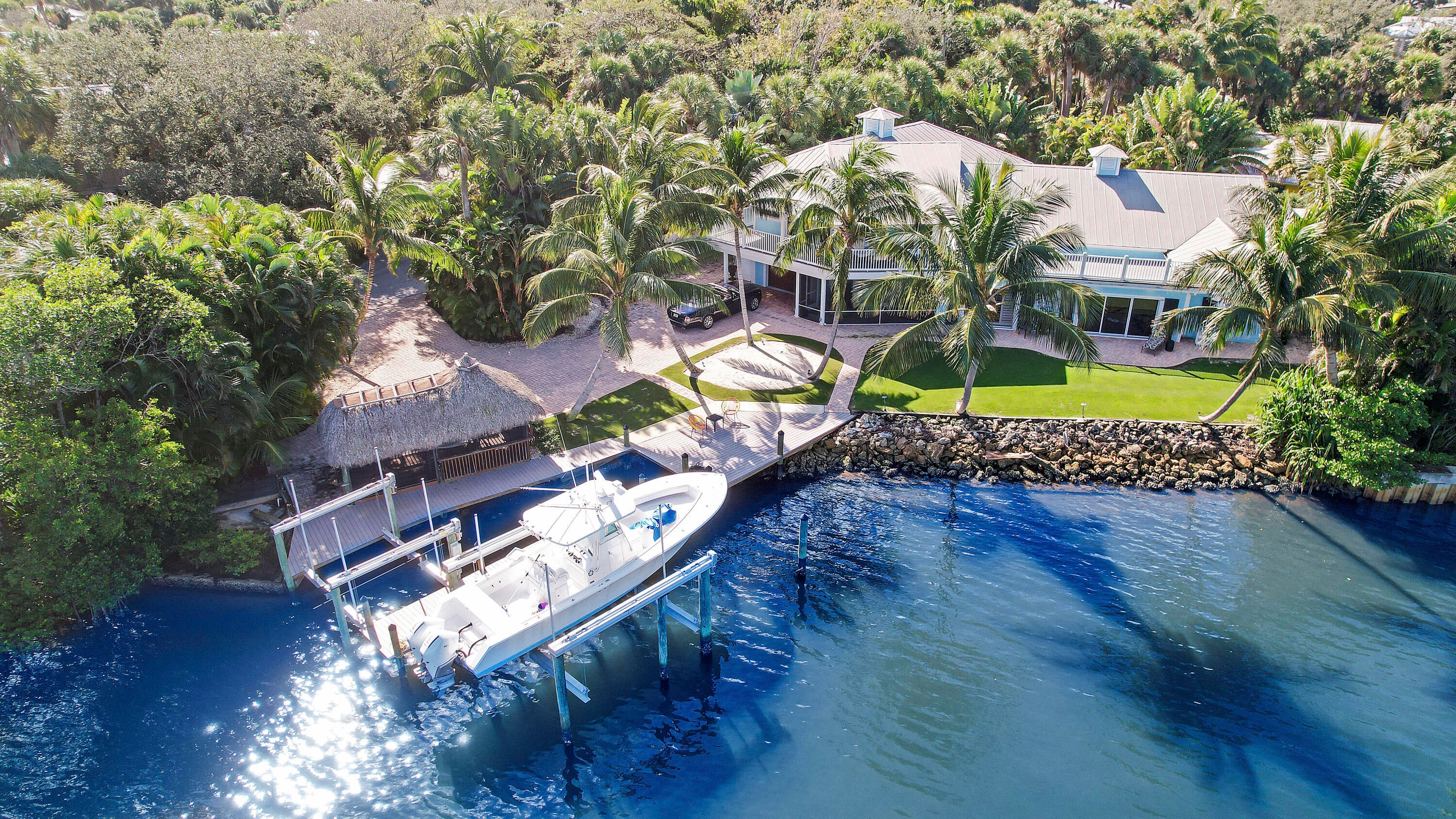 THIS IS A MUST SEE LUXURY HOME! Escape to Paradise! Spectacular sunrises and Amazing direct Intracoastal views from this one-of-a-kind Key West style pool home. Renovated with impeccable taste, the main house has 4 bedrooms & 3 full baths with the Owner's suite, kitchenette & 400 sq. ft of sundeck upstairs. The separate 1/1 guest house has breathtaking views as well! This home features over 150+ feet of private Intracoastal frontage, 2 new docks, 2 new boat lifts- 24,000 lbs & 16,000 lbs, You also have access to a community boat ramp. Screened Tiki-Hut, 500 Gallon Underground Gas Tank, Hardiplank Siding, Metal Roof, Summer Kitchen, Marble Floor, Tongue and Groove Ceilings, Limestone Countertops with Natural edge, High-End Kitchen Appliances, Walk-In Pantry and so much more