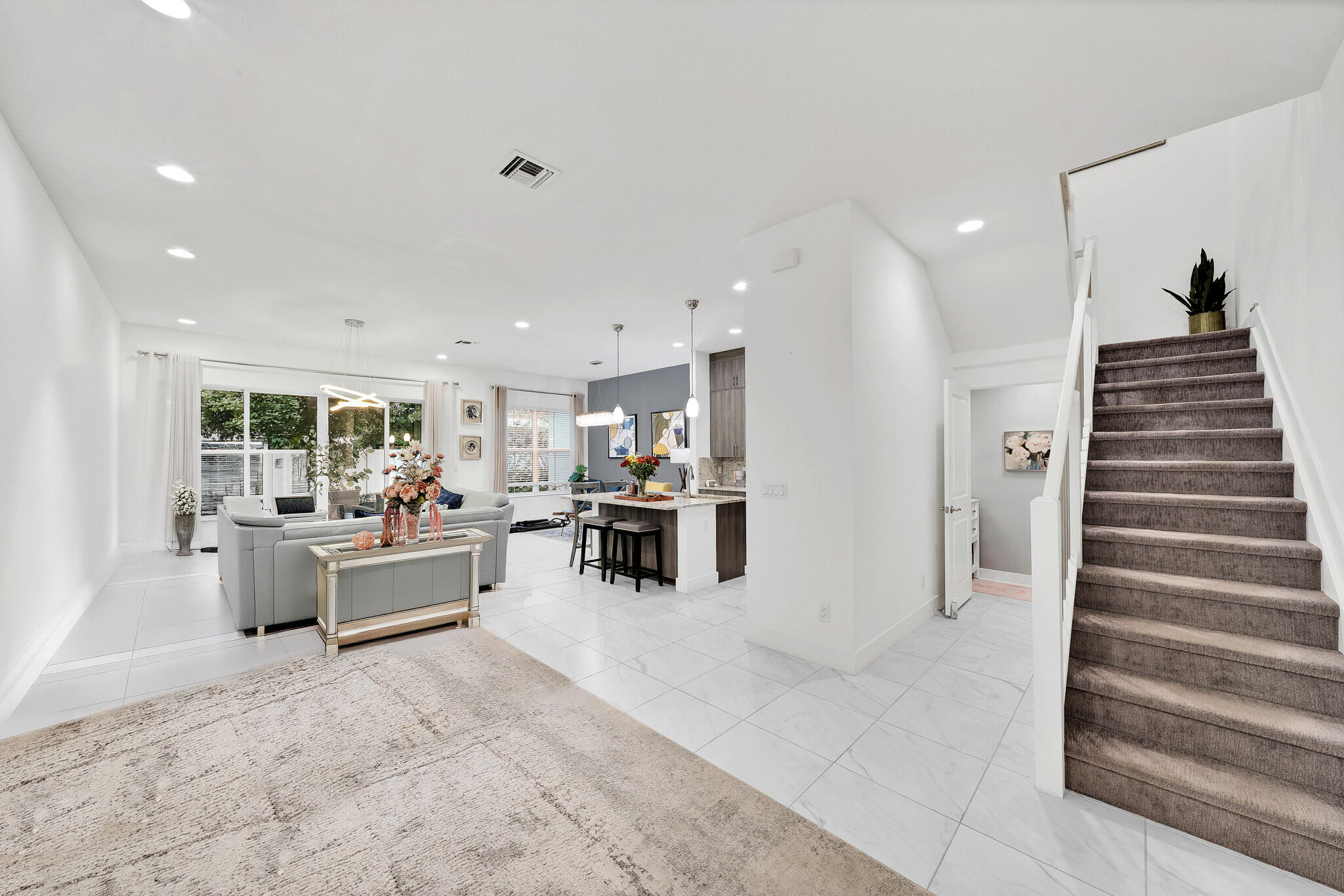 Located just 0.1 miles from Midtown shops and dining, this upgraded townhome at 4821 Pointe Midtown Road offers a prime walkable Palm Beach Gardens lifestyle. The home features a modern kitchen with premium cabinetry and stainless-steel appliances, an open and functional layout, and an upgraded owner's bath with built-in closet organizers. Impact glass throughout, a Ring doorbell security system, and extensive interior updates provide comfort and peace of mind. Enjoy a private patio, a 2-car garage, and access to the community pool, all conveniently close to dining, retail, and major roadways.
