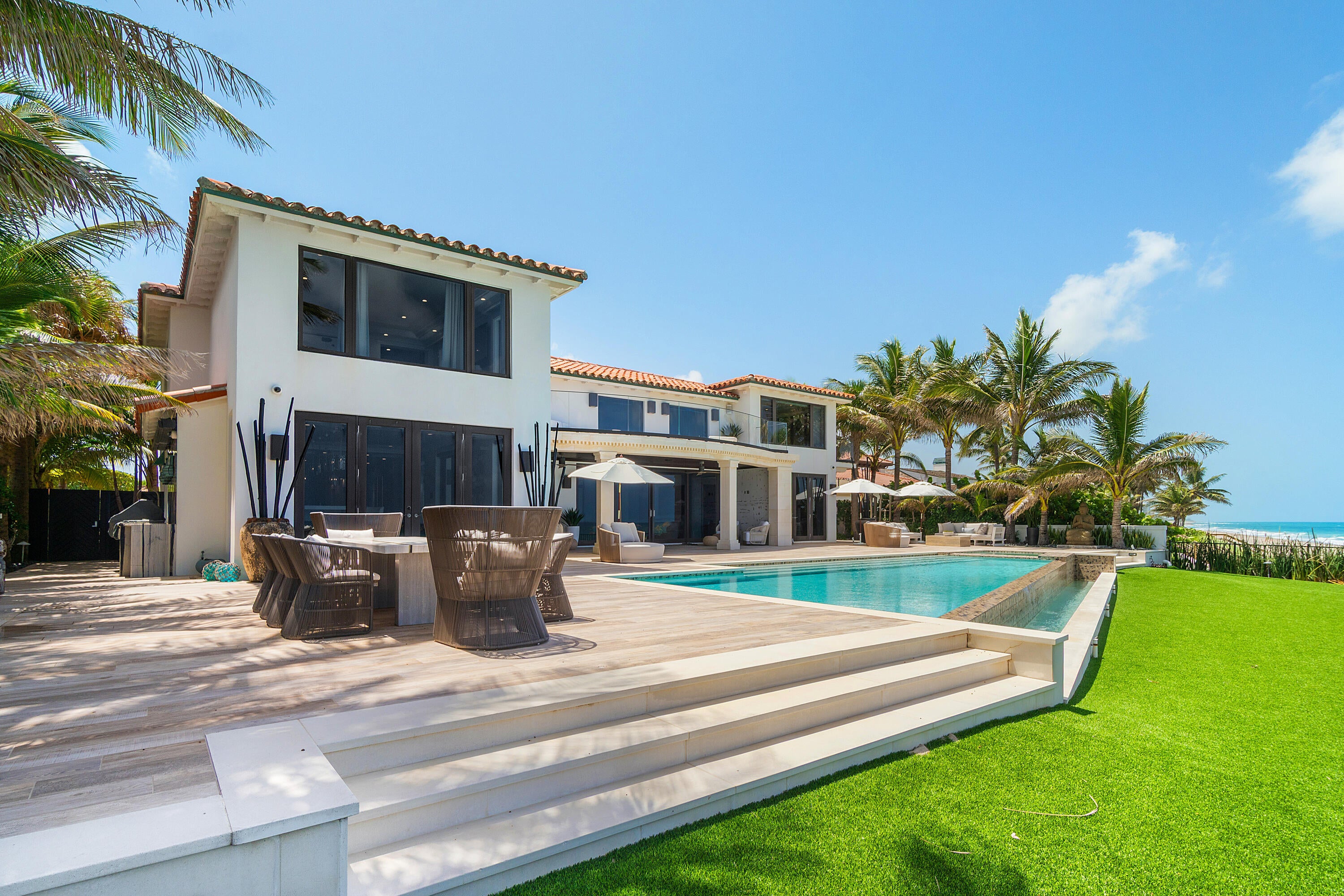 Elevated atop a high bluff with breathtaking panoramic ocean views, this direct oceanfront estate in prestigious Jupiter Inlet Colony is a rare opportunity to own a meticulously maintained, move-in-ready coastal retreat. Boasting 5 bedrooms plus a den and 5 full bathrooms & 2 half baths, this residence seamlessly blends timeless elegance with modern enhancements, making it an exceptional sanctuary for both entertaining and relaxation.Originally renovated in 2016, this home has been continually upgraded to ensure the highest level of comfort and sophistication. A whole-house generator was installed in 2021, providing peace of mind and uninterrupted power.In 2023 and 2024, the property underwent significant improvements, including a newly resurfaced pool with updated tiling, the installation of five brand-new AC units, and a complete exterior repaint, giving the home a fresh and modern look. The Control 4 Smart Home System was also upgraded with a new motherboard, enhancing automation and convenience. Additional enhancements include new astro turf, fencing, and an irrigation system, ensuring a beautifully maintained outdoor space, as well as a Mosquito Joe system, updated wiring, and new low-voltage landscape lighting, creating a tranquil and inviting ambiance. The oceanfront landscaping was also recently upgraded, maximizing privacy while perfectly complementing the stunning coastal backdrop. Designed to take full advantage of its spectacular waterfront setting, the home features impact windows and doors, allowing natural light to flood the open and airy interior. The gourmet kitchen is appointed with top-tier appliances, custom cabinetry, and luxurious finishes, while the expansive living and dining areas flow seamlessly to the outdoor living spaces, ideal for entertaining. The primary suite offers a private sanctuary with sweeping ocean views, a spa-inspired ensuite, and direct terrace access. Situated in the exclusive Jupiter Inlet Colony, this sought-after community offers a secluded beach, optional exclusive beach club membership, and a serene & secure coastal setting, all while being just minutes from world-class dining, shopping, golf, and entertainment. This is a rare opportunity to own an exceptionally maintained, move-in-ready oceanfront estate in one of Palm Beach County's most desirable locations. As a bonus, the seller owns a boat slip at the JIB Marina, capable of accommodating a vessel up to 80 feet in length. The slip is available for purchase separately, in conjunction with the home. Schedule your private showing today!