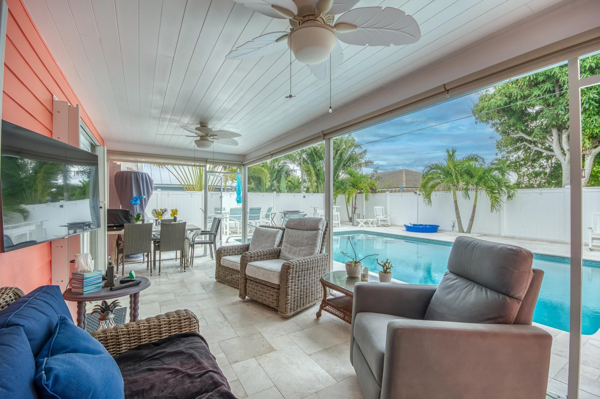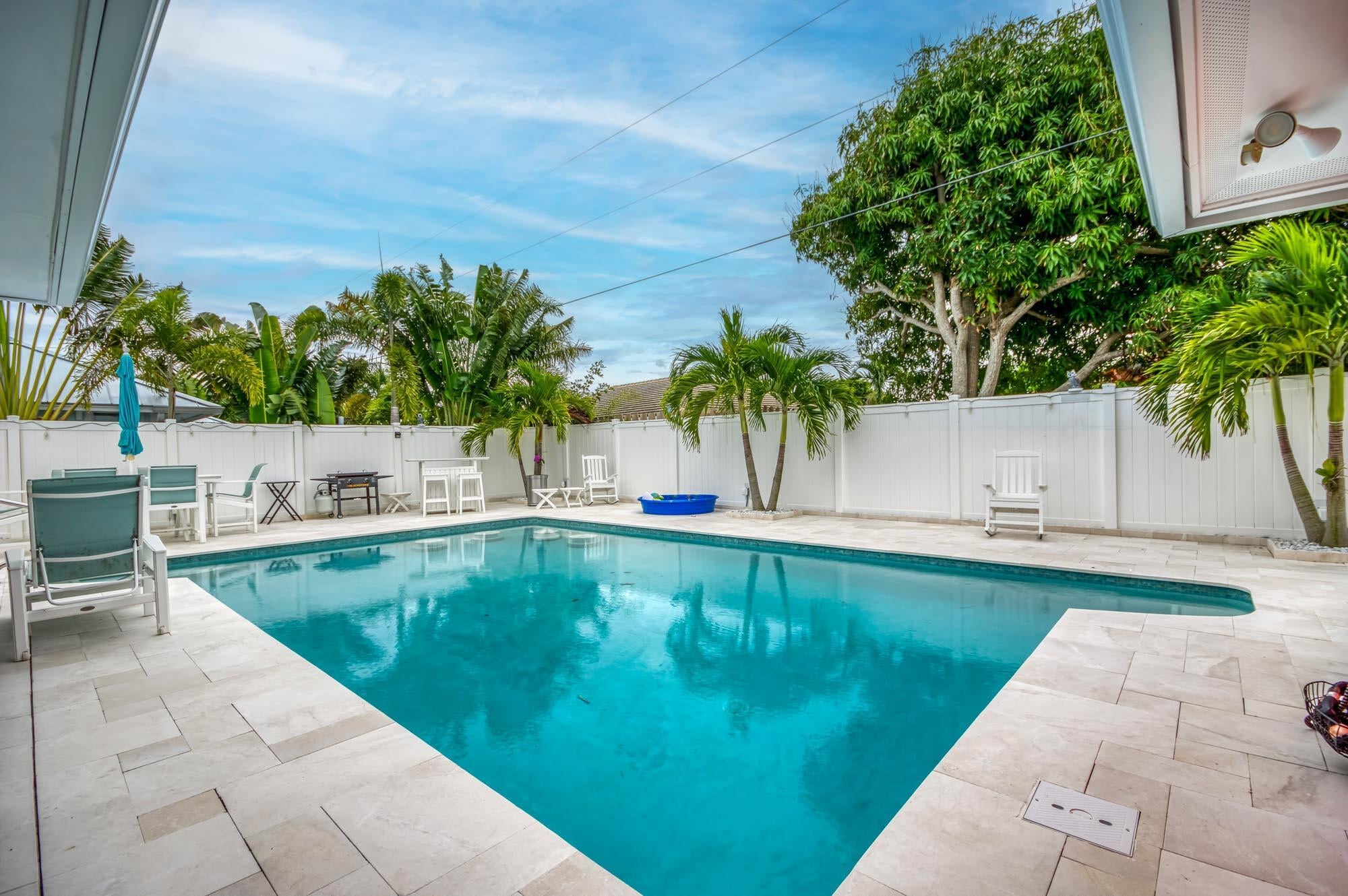 Discover this stunning, fully updated 3-bedroom, 2-bathroom home nestled in highly desired Tequesta. Boasting an open floor plan, perfect for entertaining, this residence offers modern living at its finest. Enjoy peace of mind with full hurricane protection throughout, and revel in the beauty of rich wood floors. The home features a split floor plan for added privacy, and a fully updated kitchen and baths, showcasing contemporary style. A brand new pool surface and pavers create a luxurious outdoor oasis, complemented by a fully fenced yard and a convenient dog run with artificial turf. With a 1-year-old roof, you can rest easy knowing this home is move-in ready. Located in an amazing location, this Tequesta gem is the perfect place to call home.