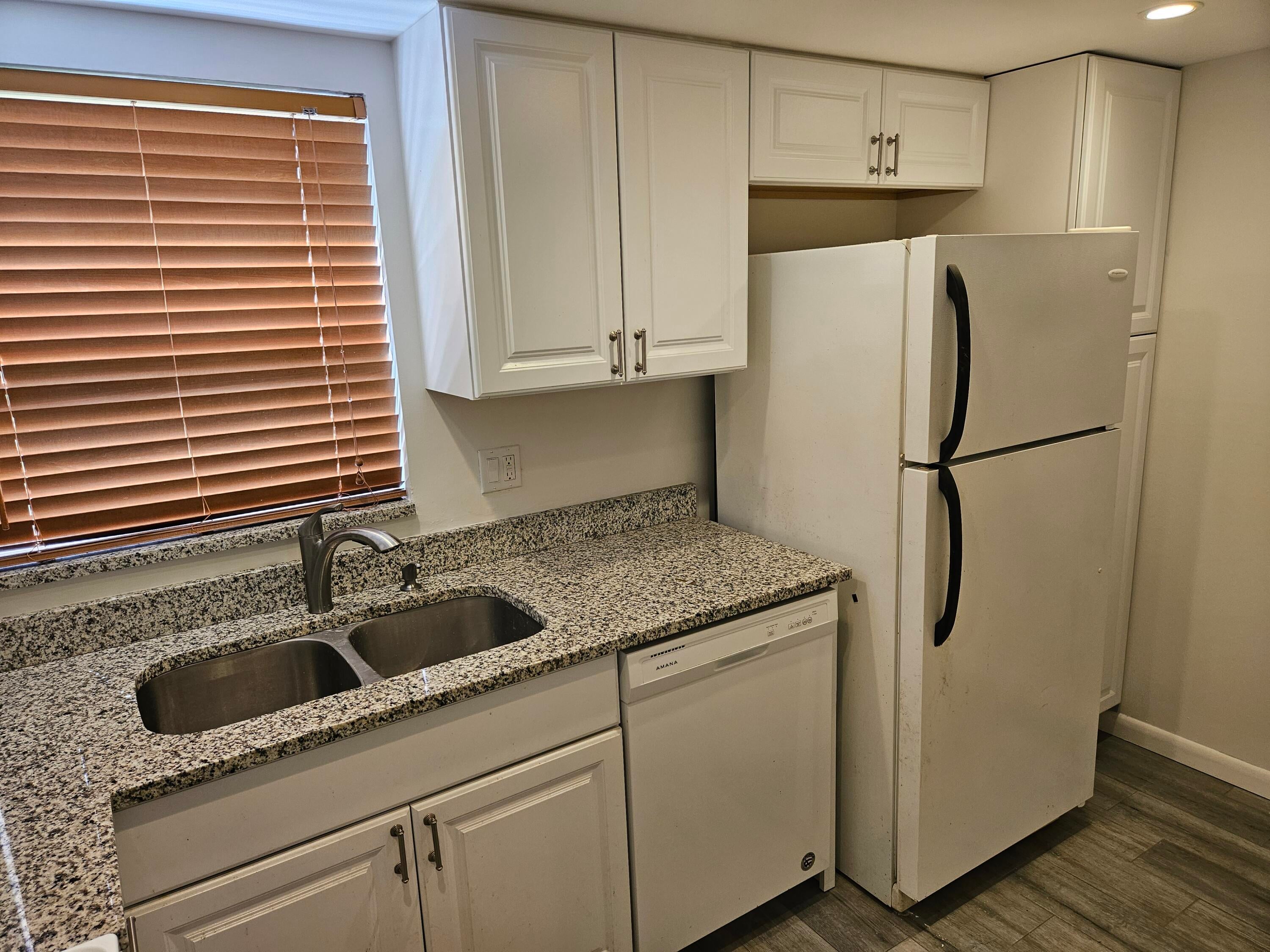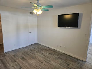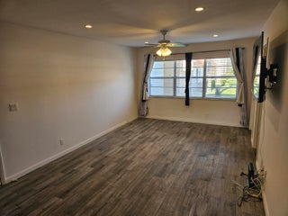 Welcome to your slice of heaven! This remodeled ground floor 1/1 unit includes AC 2024, granite countertops, new garbage disposal, fresh paint, new bathroom, all tile floors, updated closet doors + window blinds, professionally installed TVs in each room, + private screened patio - perfect for grilling or a catio! Max 2 Cats or birds are allowed. Washer/dryer in unit. Banks, grocery stores, restaurants, gas stations, + shopping centers are VERY close by. PBC fire rescue station is just outside of the main gate. This well-manicured + well-appointed community offers bus service several days a week. You'll be entertained w/shows, exercise classes, bridge, bingo, dances, trips, clubs + activities! Whether here to retire or for the season, you'll never be bored! Schedule your showing today.