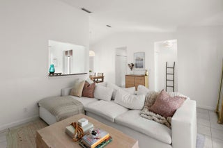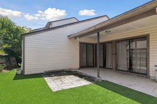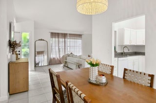 Immaculate single-story corner villa featuring two bedrooms and a private corner yard. This light and bright home offers high ceilings, an updated kitchen that opens to the great room and to the covered patio and landscaped yard. The interior is finished with tile flooring throughout, and recent upgrades include a new roof in 2020, a new AC in 2021, a new washer and dryer. Both bathrooms have been tastefully updated, and the primary suite features a private bath and dual walk-in closets. The backyard is enhanced with fresh turf inlays, creating an inviting outdoor retreat. Two parking spaces are conveniently located directly in front of the home. Ideally situated close to shopping, dining, schools, and major highways, this villa offers a perfect combination of comfort and convenience.