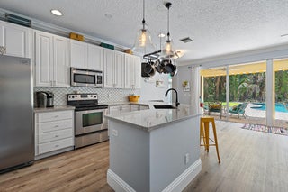 Welcome to 297 Marlberry Circle in New Haven! Situated on a quiet street and on a 'one of a kind' lot with expanded privacy and waterfront views. This home offers 4 bedrooms, and office, 3 full bathrooms, and a 2-car garage and much more. This floor plan offers multiple spaces, both inside & outside, for enteraining, a large open kitchen, a large private backyard with a pool & heated spa. Significant upgrades include: (2012) Pool, pump, 400k gas heater, a 500 gallon buried propane tank, (2017) impact windows upstairs, (2018) water heater, (2019) new roof, (2020) new washer/dryer, (2021) two new AC units, 2022 - wood look vinyl flooring downstairs, stairway and upstairs hallway and in 2024 the exterior of the house was painted. Dont miss it!