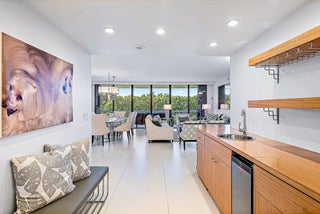 This sophisticated 2,600+ SF residence at Sloan's Curve offers coveted southern exposure and ocean views. The versatile layout includes 2 bedrooms, 2.5 baths, a guest/kids' room, den/office, family TV room, and a workspace in the primary suite. Highlights include high ceilings, a chef's kitchen, sleek finishes, and a rare private side yard. Sloan's Curve is one of Palm Beach's premier oceanfront addresses, with 24-hour gatehouse and doorman service, onsite management, concierge-level EV-ready garage, tennis with pro shop, fitness center, sauna, and resort-style pool. Motivated seller--an exceptional opportunity in a coveted community.a concierge-level EV-ready garage, one of the island's premier tennis facilities, a state-of-the-art fitness center, and a resort-style poolall in a prime beachfront location.