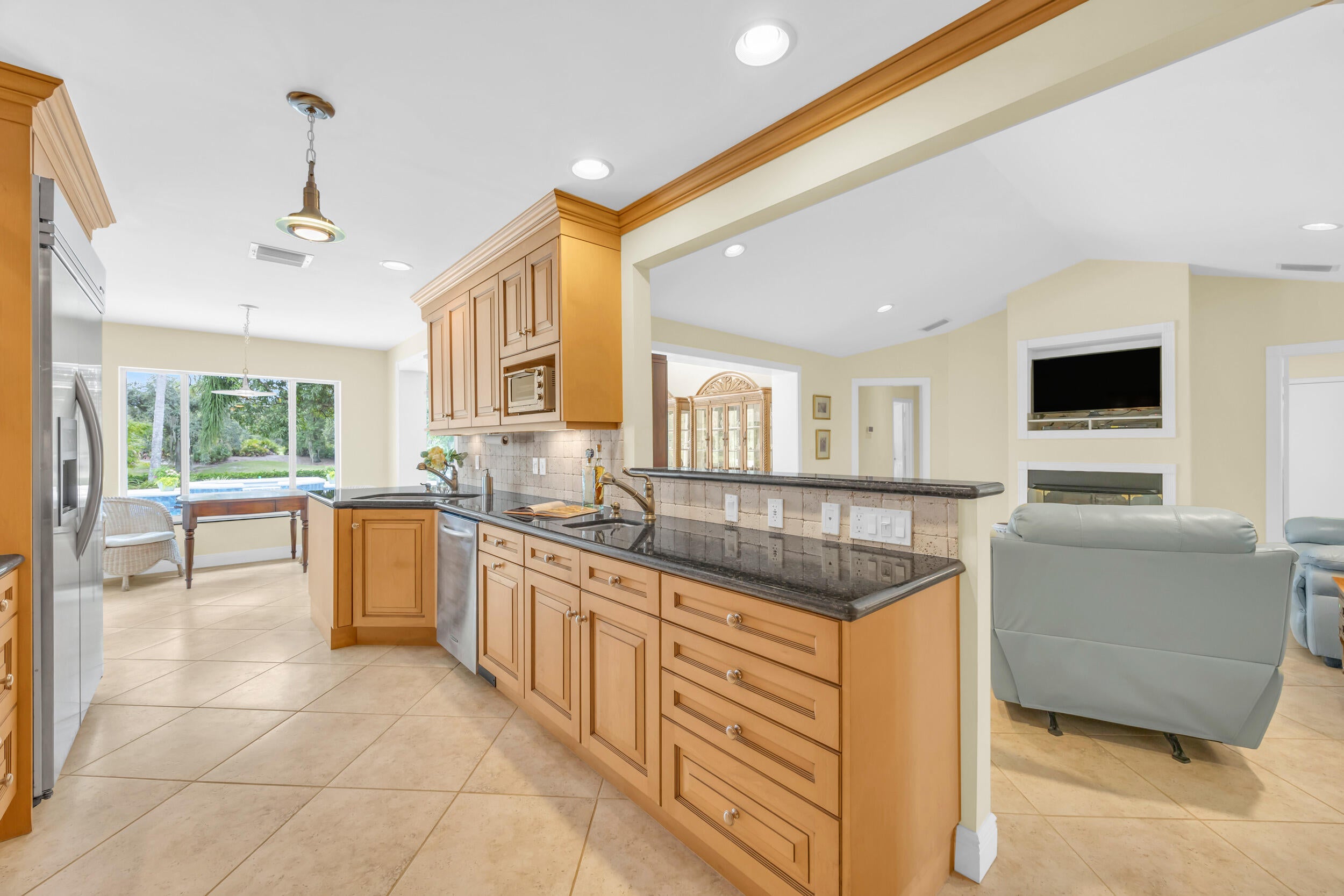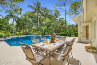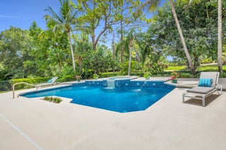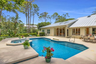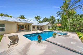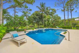 Jupiter's Best Value! Over an acre in Ranch Colony, overlooking the 10th green of the Dye Preserve in a 24 hour guard gated community. The pool and views are amazing! Privacy in both front and back. No membership required. Low HOA fees. HOA fees include Hot wire TV and Internet. Newer metal roof - 3 years old. Also skylights are impact and 3 years old. Some impact windows and or shutters.Salt pool with iAquaLink Application and Auto Fill. The fully fenced pool area is a tropical oasis on 1.21 acres. Water System is 3 years old. New tankless water heater, Whole house generator. 250 gallon propane tank.High-end appliances with a 6 burner Gas stove, electric oven. This community has underground utilities. AC units are 2 months old and 5 years old. The garage is oversized at 650 square feet with a hurricane impact door. The community is special, offering 5 different life styles behind the gates of Ranch Colony. Two golf communities, a fly in airpark community, and two Ranching communities. It feels like you are in the country but just minutes from everything! Call now for your private showing! Owner is disclosing that pool heater may not be operable. Being sold AS IS.