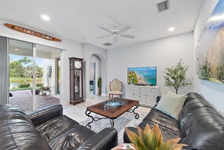 Completely renovated CBS one-story lakefront home in the highly desirable gated community of Rialto in Jupiter. Featuring impact windows and doors, a split floor plan, and stunning sunrise lake views, this home offers a serene setting with an extended patio to enjoy the sights of birds and waterfowl. Located directly across from Rialto's exceptional amenities, including a clubhouse, resort-style pool, splash park, tennis, pickleball, fitness center, and playgrounds. A stylish retreat with easy access to shopping, dining, highways, and airports.
