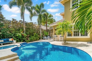 Exquisitely renovated 4-bedroom plus office CBS residence nestled in the heart of Paseos--one of Jupiter's most sought-after communities, prized for its exceptional location, lifestyle amenities, and enduring value.Step inside to discover a beautifully reimagined interior featuring a brand new custom kitchen, rich wood flooring, and striking marble throughout the first level. Crown molding accents every room with sophistication, while impact-rated windows provide peace of mind. The expansive primary suite includes a private lounge retreat, ideal for unwinding in comfort.Outdoors, a private pool and spa oasis awaits--designed for effortless relaxation and memorable gatherings. Recent upgrades include a high-efficiency hybrid water heater that cools the garage, newer HVAC systems