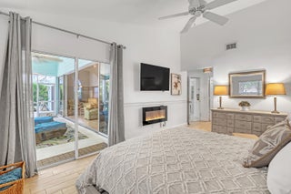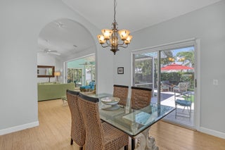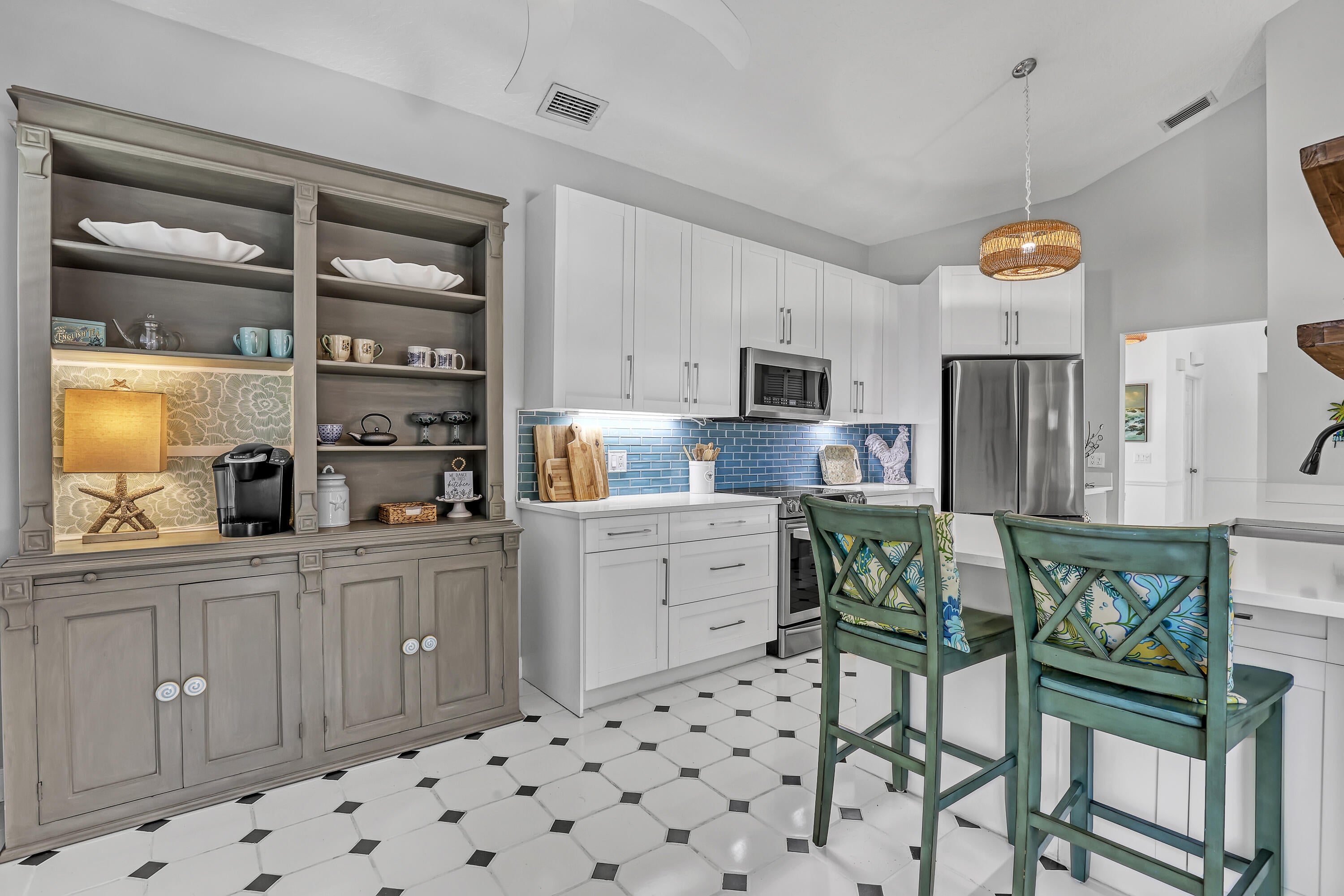Charming Key West-Style Home with Metal Roof - This beautifully maintained 3-bedroom, 2-bath gem offers a spacious 2-car garage and numerous upgrades. Filled with natural light, featuring cheerful living spaces and large glass pocket doors that seamlessly open to the outdoor living area. This kitchen boasts stainless steel appliances and a brand-new refrigerator, while elegant bamboo flooring flows through the living room, dining room, and one bedroom. The backyard showcases lush, low-maintenance artificial turf, perfect for relaxing or entertaining. With a low HOA fee, designer lighting, a new hot water heater, and a newer HVAC system, this home combines style, comfort, and efficiency. Ideally located just 3 miles from the beach and JHS. 24 HOUR NOTICE TO SHOW