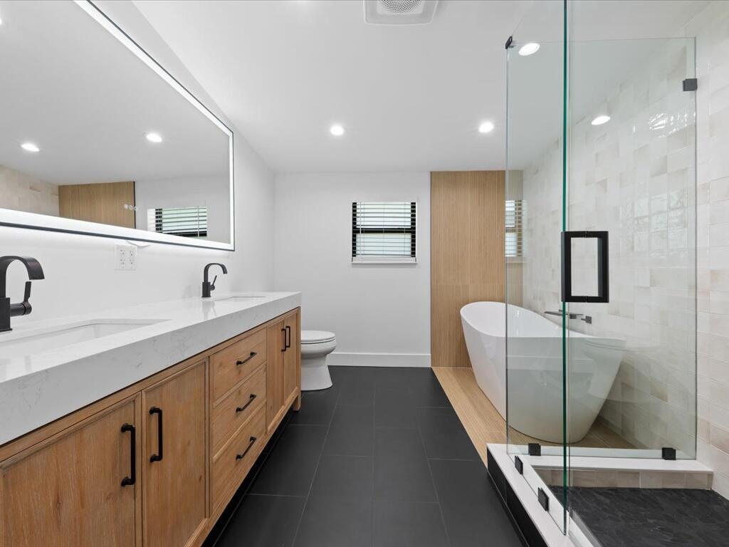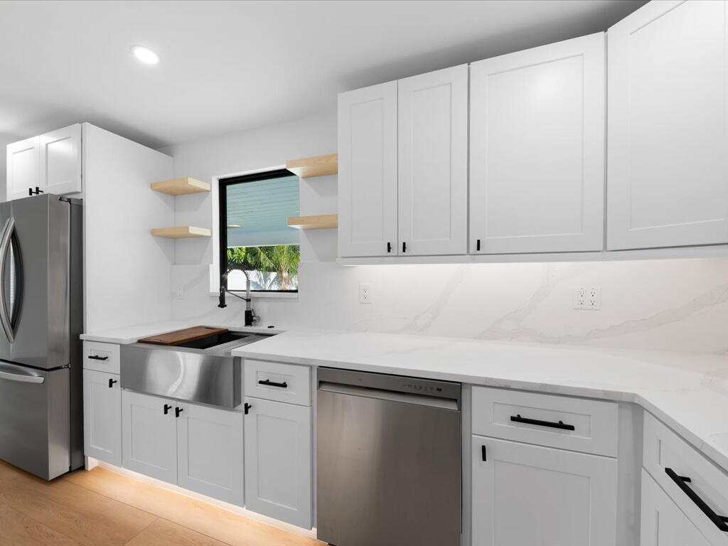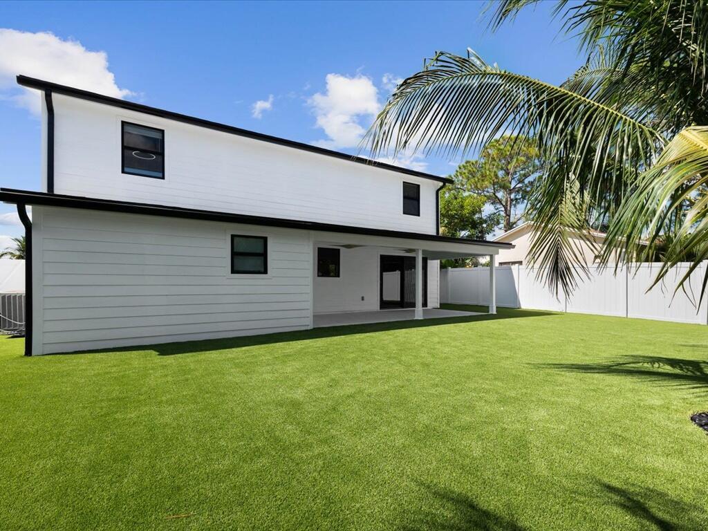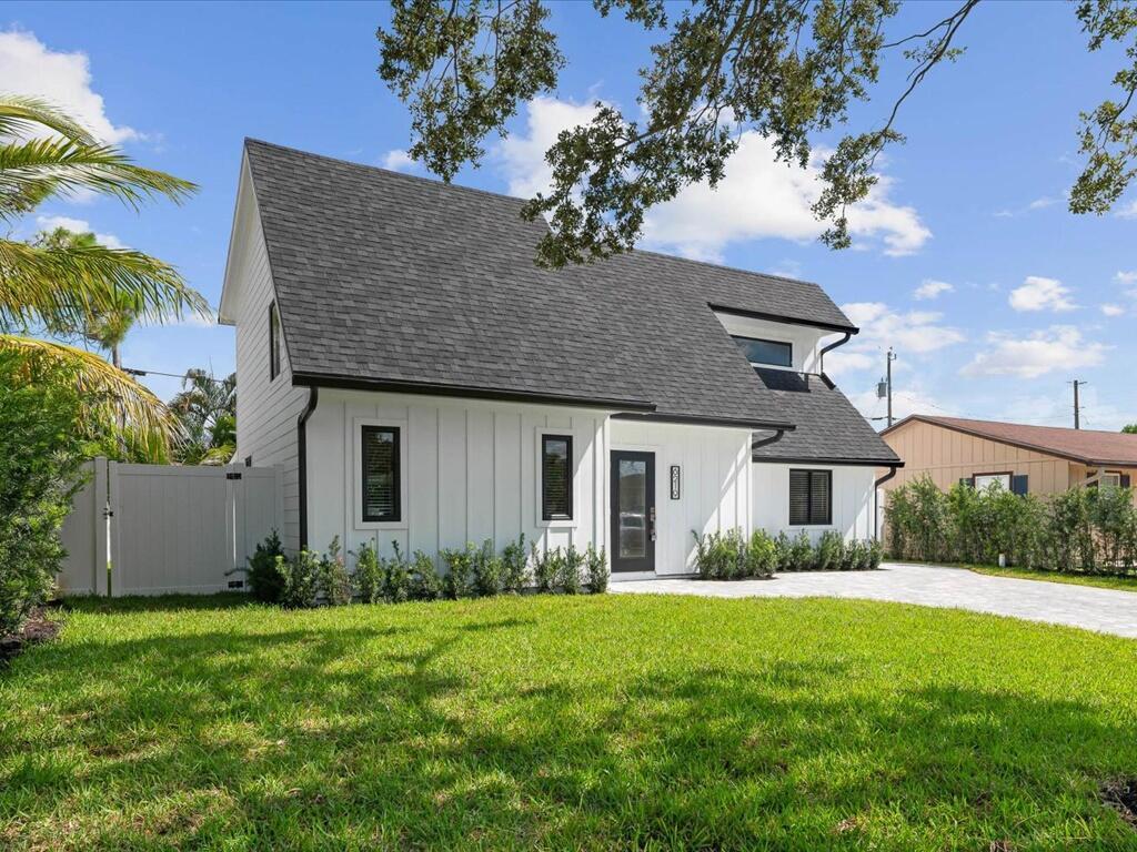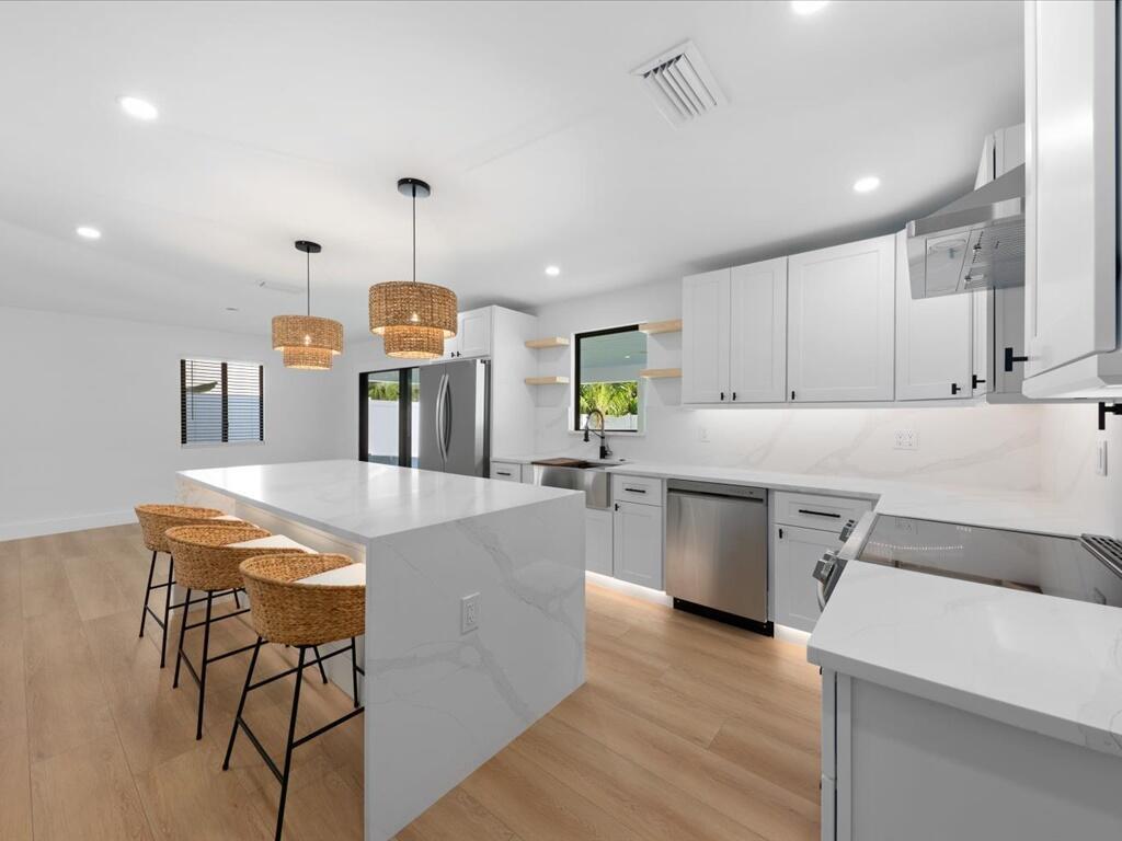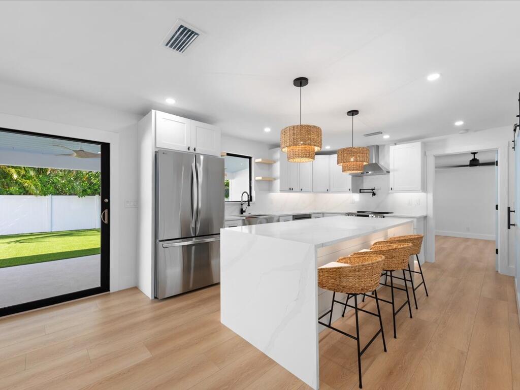 Stunning, fully renovated coastal farmhouse in Jupiter Heights! This beautiful remodeled 3 bedroom, 3.5 bathroom home is a must-see! Every inch of the 1,705 sqft home has been thoughtfully designed with luxury and comfort in mind. Each bedroom features its own private en-suite bathroom and walk-in closet, offering ultimate privacy and convenience. The primary suite boasts a sleek, spacious bathroom and a full size built in safe discretely tucked away in the closet. Designed for entertaining, the kitchen includes a large island with an open flow to the dining room and living area. Step outside to a fully turfed backyard oasis completed with beautiful palm trees and a spacious covered patio ideal for relaxing and entertaining year-round. Don't miss this one of a kind opportunity!