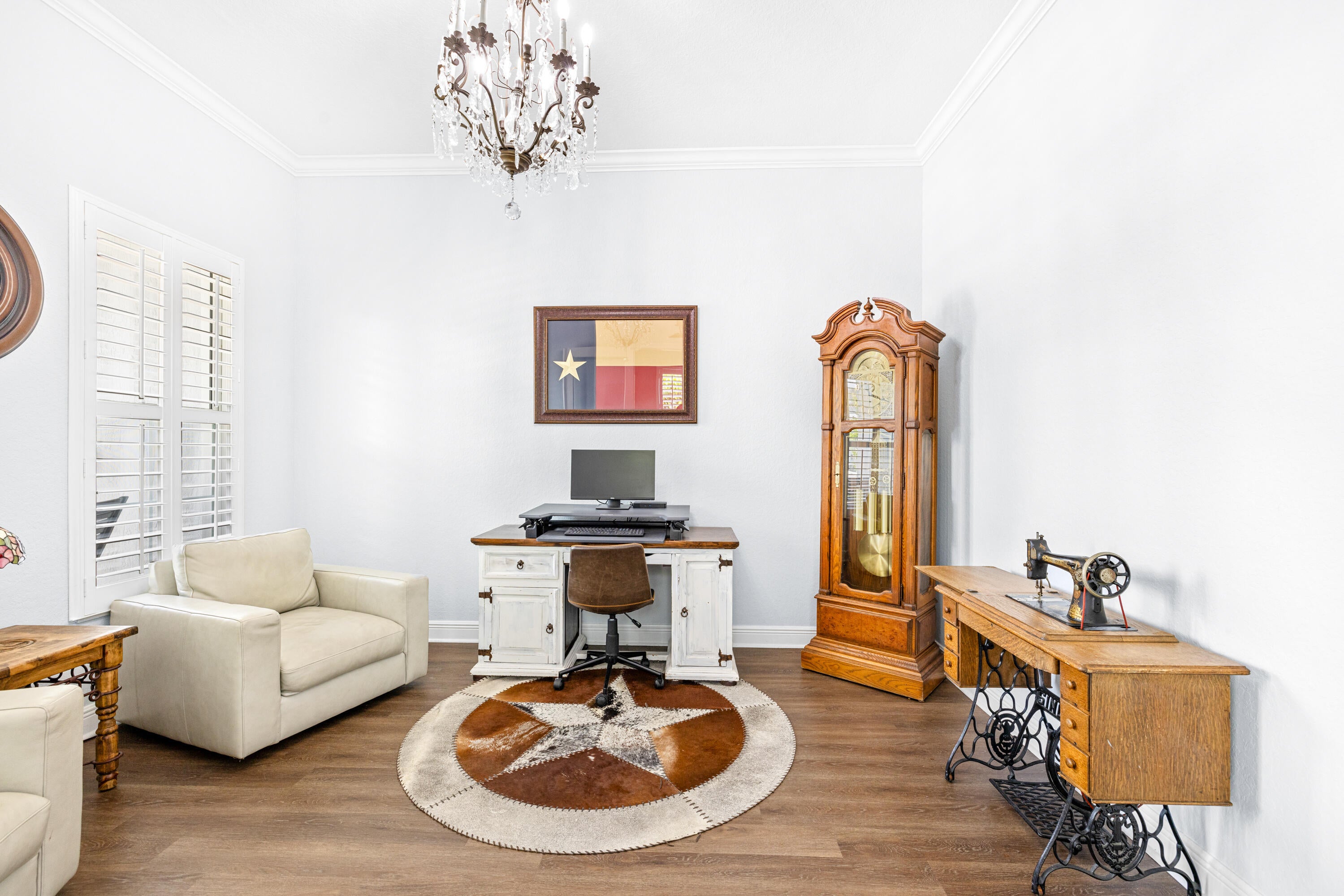 Built-in Shelves, Entry Lvl Lvng Area, Fireplace(s), Foyer, French Door, Cook Island, Laundry Tub, Pantry, Pull Down Stairs, Split Bedroom, Volume Ceiling, Walk-in Closet