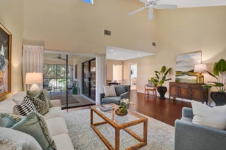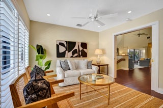 Enjoy tranquil water views & lush gardens from this beautifully appointed home featuring a newly-installed elevator, rich hardwood floors, plantation shutters & vaulted ceilings. With 1,800+ sq ft, the 3-bdrm, 2-bath layout includes a flexible third room--ideal as a den, office, guest suite, or any combination to fit your needs. Relax on the screened balcony & take in the peaceful surroundings. Additional perks include a one-car attached garage plus a separate golf cart garage for extra storage. Located in prestigious Jonathan's Landing, with OPTIONAL memberships for golf--incl. the newly renovated Village Course--tennis & a variety of social activities, all with no mandatory club fees. Just minutes from pristine beaches, shopping, dining, PBI Airport & everything SE Florida has to offer!
