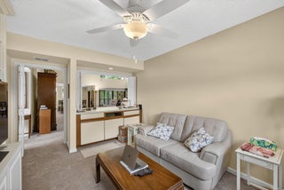 Welcome to this beautifully updated 2-bedroom condo with a versatile den, perfectly designed to serve as a third bedroom, private home office, or cozy reading nook. Nestled within the prestigious Waterbend community of Jonathan's Landing, this home offers both comfort and style in one of Jupiter's most desirable locations. From the moment you step inside, you'll appreciate the fresh paint, new carpet, and open floor plan that make this condo move-in ready. Cathedral ceilings invite natural light to fill the living space, creating a bright and airy atmosphere. Enjoy peaceful mornings and relaxed evenings on your screened-in porch, where sweeping views of the 10th fairway provide the perfect backdrop for entertaining or unwinding after a long day. This residence also (see more)... offers a variety of thoughtful features, including: A convenient golf cart barn, Impact windows for security and efficiency. A recently updated A/C unit (2.5 years old) and water heater (4 years old). Two spacious full bathrooms. With its prime location, modern updates, and serene golf course setting, this condo is more than just a homeit's a lifestyle waiting for you in Jonathan's Landing. Perfectly located just one mile from the beach, this home offers easy access to shopping, dining, Jupiter Medical Center and Palm Beach International Airport. --