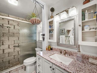 Beautifully renovated 3 bed, 2 bath home with a 2-car garage and a 2018 sunroom, located in the desirable 55+ community of Little Club. This home showcases impact windows (2017), solid wood doors, crown molding, and 18'' tile flooring throughout. The spacious, open kitchen boasts a large island, Curava recycled glass countertops, stainless steel appliances, white wood cabinetry, and stylish modern finishes. Both bathrooms have been tastefully updated, and the home offers abundant closet space for convenience. Step outside to enjoy the expansive tropical yard with two patios, both enhanced by pergolas and remote-controlled awnings. Additional upgrades include a 22kw generator with 750-gallon gas tank, water softener and reverse osmosis system, outdoor shower, epoxy garage flooring,and a mini-split in the sunroom. Community highlights: Little Club offers unlimited golf on a 9-hole course, tennis, pickleball, bocce, shuffleboard, swimming, a clubhouse with library and game rooms, plus a full calendar of social activities. HOA dues include common areas, fiber optic cable, Wi-Fi, and trash service. All this, just minutes from the beach, Jonathan Dickinson State Park, the Loxahatchee River, and the charming village of Tequesta.