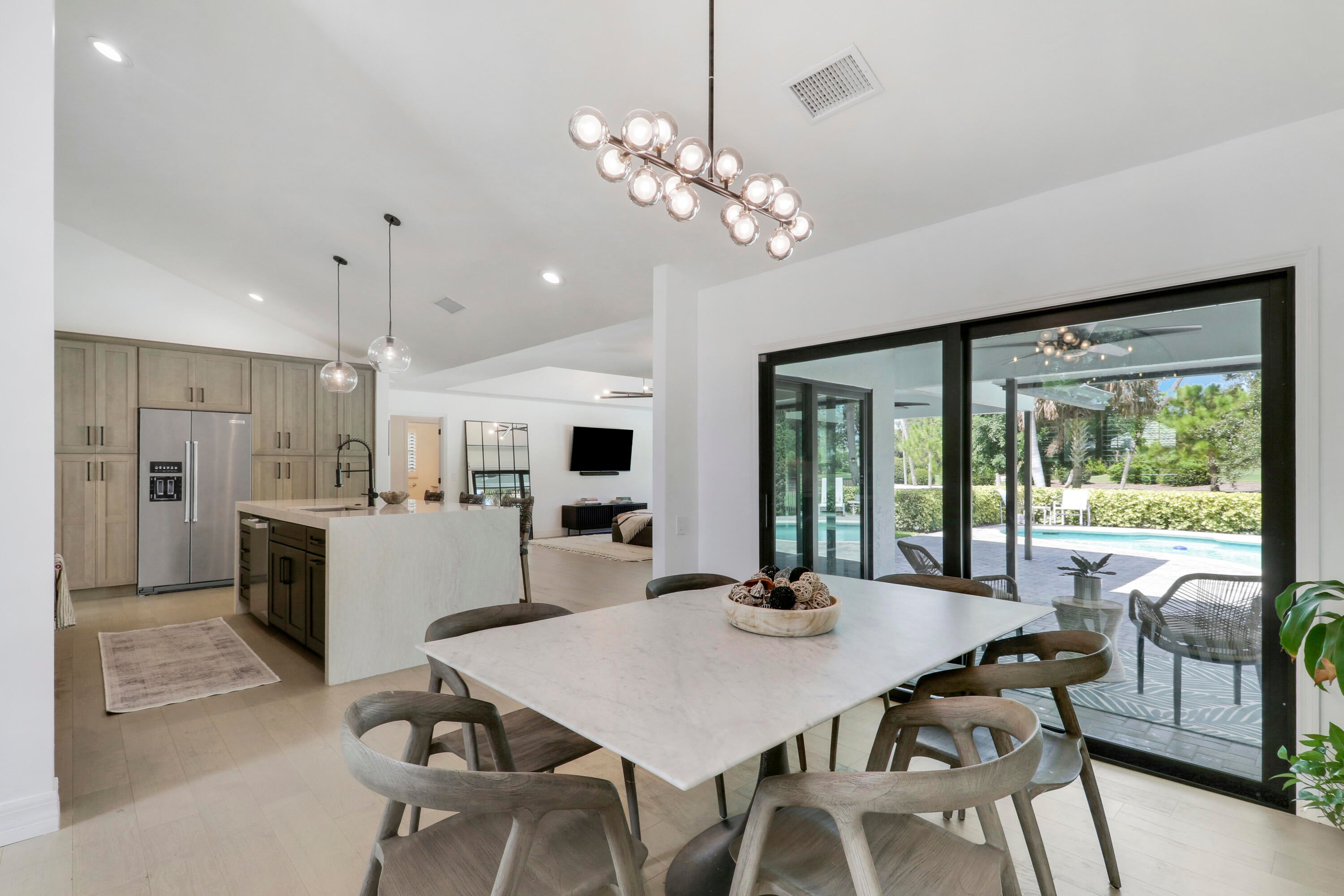 Welcome to 196 Southeast Turtle Creek Drive, a stunning residence nestled on the serene 11th tee box of the coveted Turtle Creek Golf Course. This exquisite home, set back from the course, offers a peaceful view and the ultimate golf cart-friendly lifestyle just moments away from the conveniences of Tequesta & Jupiter. This move-in-ready gem boasts 4 spacious bedrooms and 3 beautifully appointed full bathrooms. Inside discover a light-filled open kitchen, completely renovated with designer appliances, complemented by enhanced lighting and smooth ceilings. The airy living spaces are accentuated by vaulted ceilings and new engineered hardwood floors, all freshly painted inside and out.The home features impact windows and doors, providing peace of mind, and a modern Interlock Metalroof. Enjoy the comfort of a new air conditioning system and water heater, ensuring year-round comfort. Additional amenities include a 2 car garage, large paver driveway, pool, spacious covered patio, and a private outdoor space completely enclosed with a new aluminum fence. Practicality meets luxury with an electric car charger, resealed pavers, and an updated irrigation system, while refreshed landscaping enhances curb appeal. Electric and blackout shades offer privacy and convenience. This property is a true haven! It's your time to embrace the quaint TEQUESTA lifestyle everyone is talking about. Make your dreams come true andschedule your private tour today! Inquire about golf and social memberships at Turtle Creek Country Club. Membership is not required to purchase.