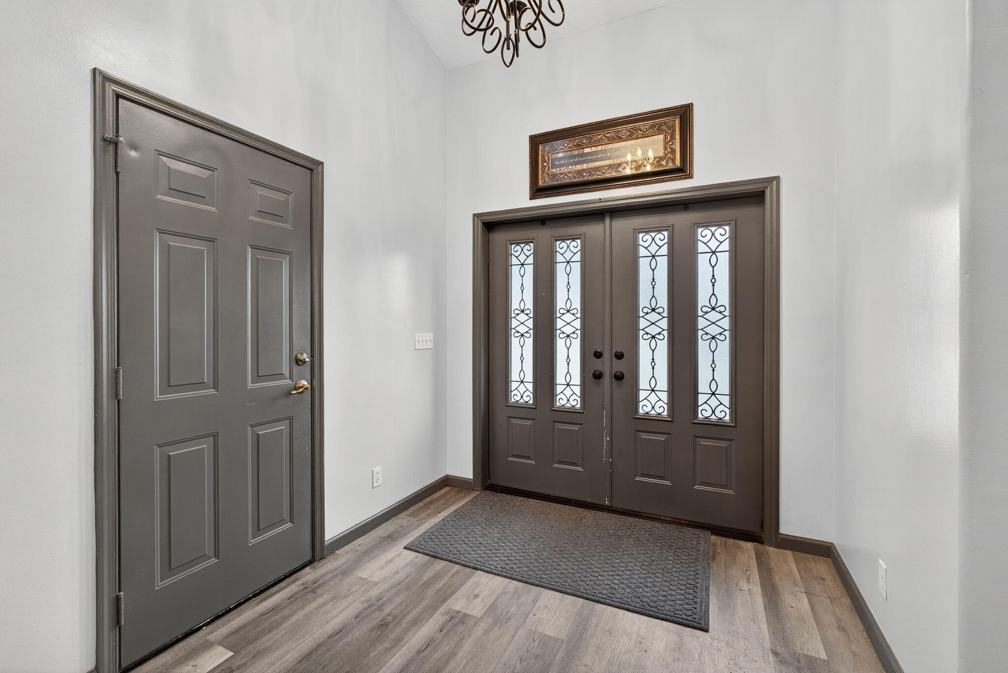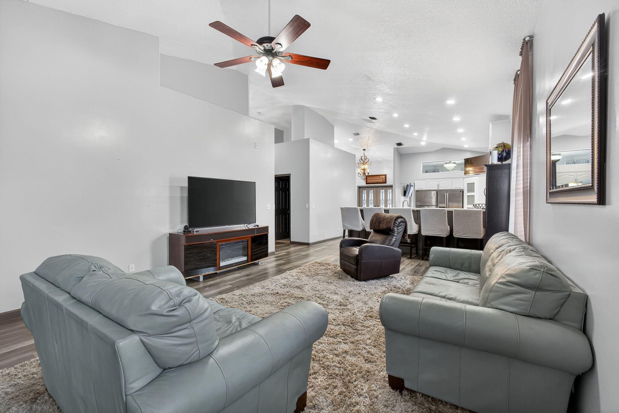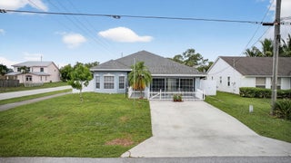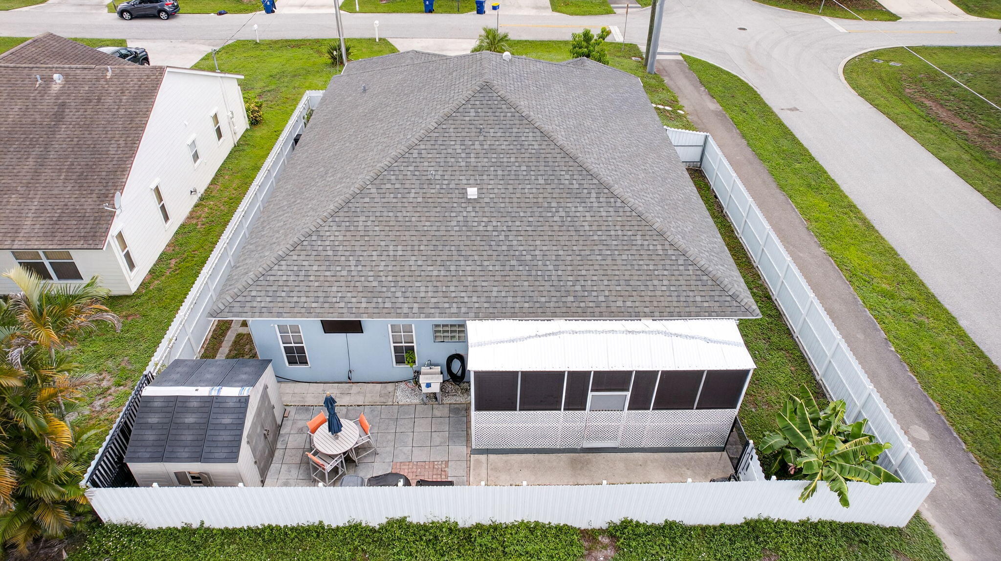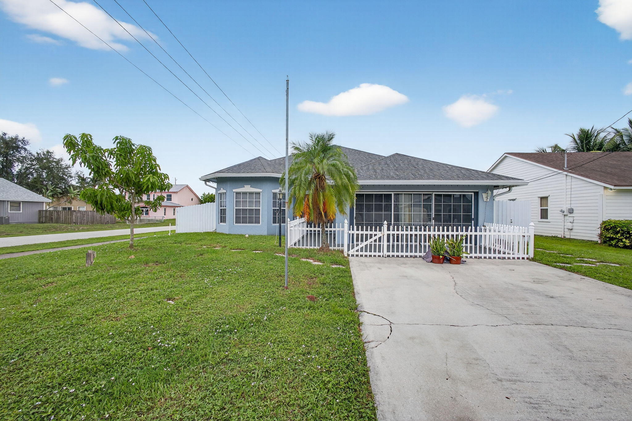 Beautifully maintained 4 bedroom, 2 bath home in the desireable Jupiter Heigths neighborhood. Builder's model home, only one in the neighborhood. Open floor plan from front to back with soaring cathedral ceilings. Desirable fenced corner lot with both tiled front patio, and screened back patio, home office, eat-in kitchen with solid ceramic tile and wood laminate floors in all living areas. French doors lead to patio. Master features tray ceiling, walk-in closet, spa tub, separate shower and dual sinks. New roof installed 2020.