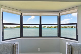 Bay Window, Drapes, Hurricane Windows, Impact Glass, Picture