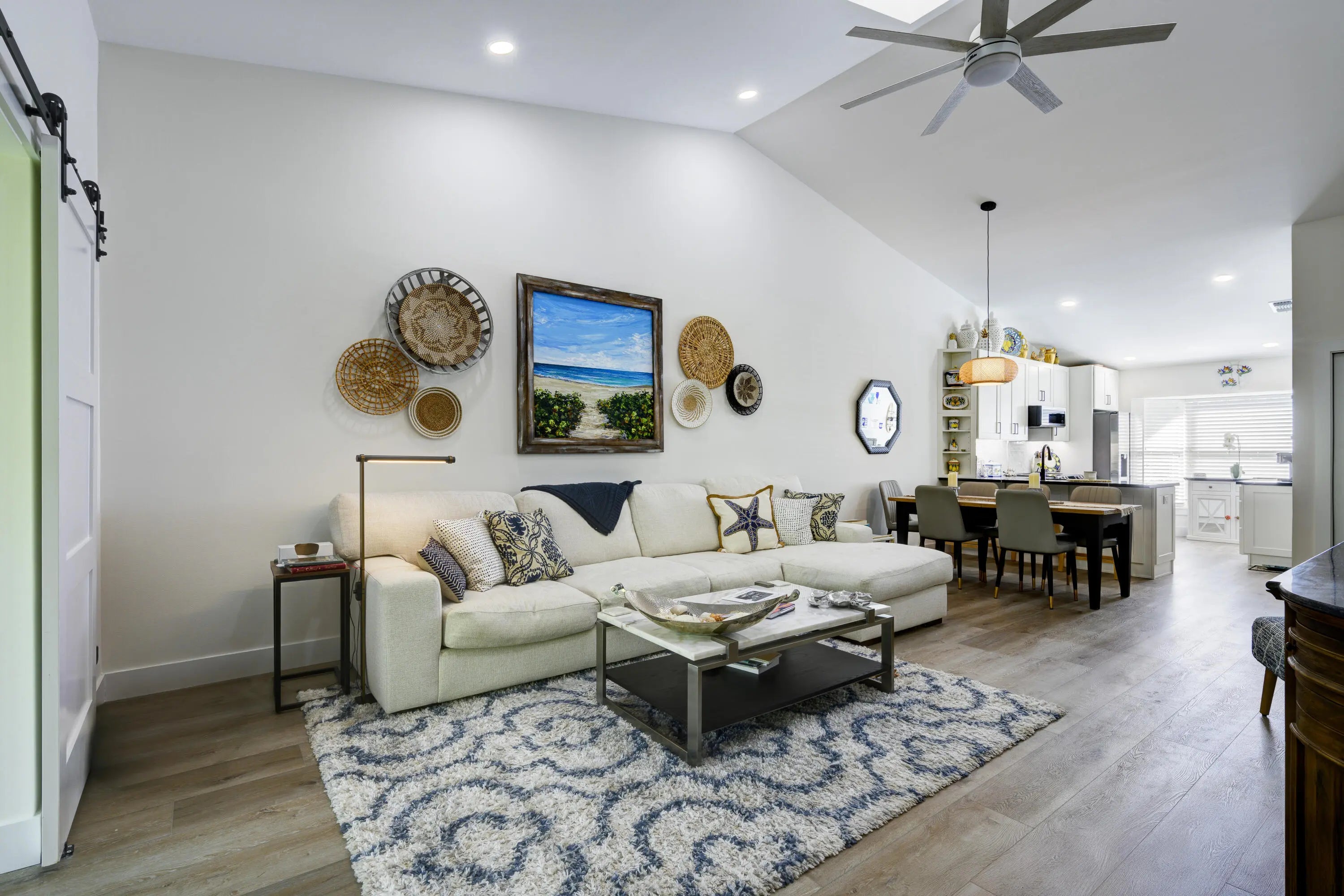 Fully renovated and beautifully maintained 2-bedroom, 2-bathroom villa located in the desirable Sea Pines community of Hobe Sound. This charming home offers 1,299 sq ft of living space (1,650 total sq ft) and backs up to a peaceful preserve, offering a sense of privacy and tranquility. Inside, you'll find a bright and spacious living room with vaulted ceilings and impact glass windows that flood the space with natural light. The open kitchen, complete with a cozy breakfast area, Shaker cabinets, newer Samsung appliances (2023) and induction Samsung stove. The kitchen connects seamlessly to the dining room, making it perfect for everyday living or entertaining guests. A versatile den provides the perfect space for a home office, or additional guest area complete with a custom Murphy bed.