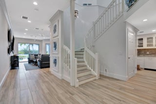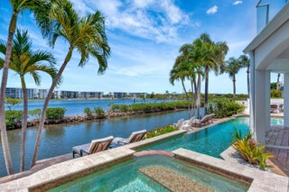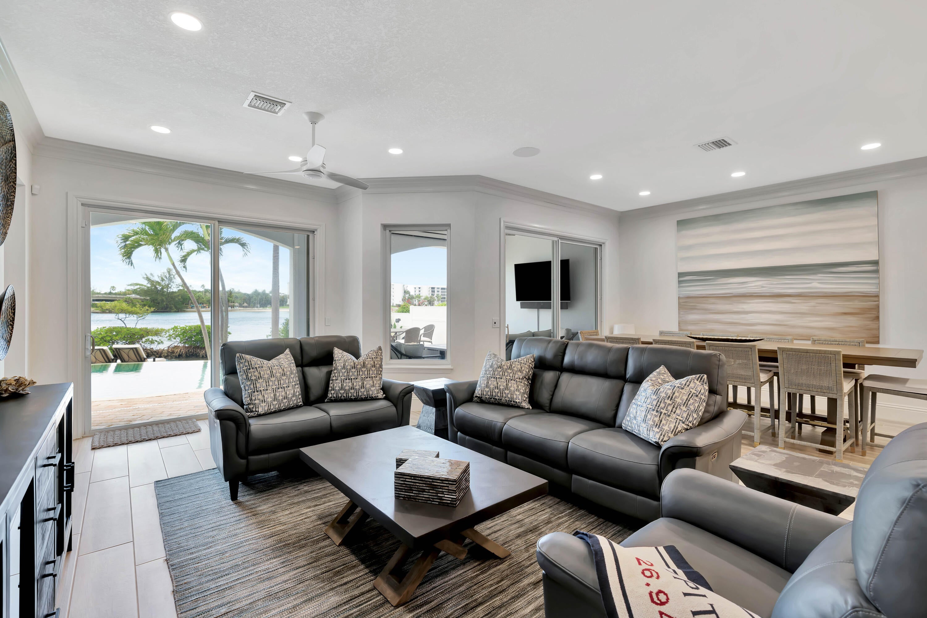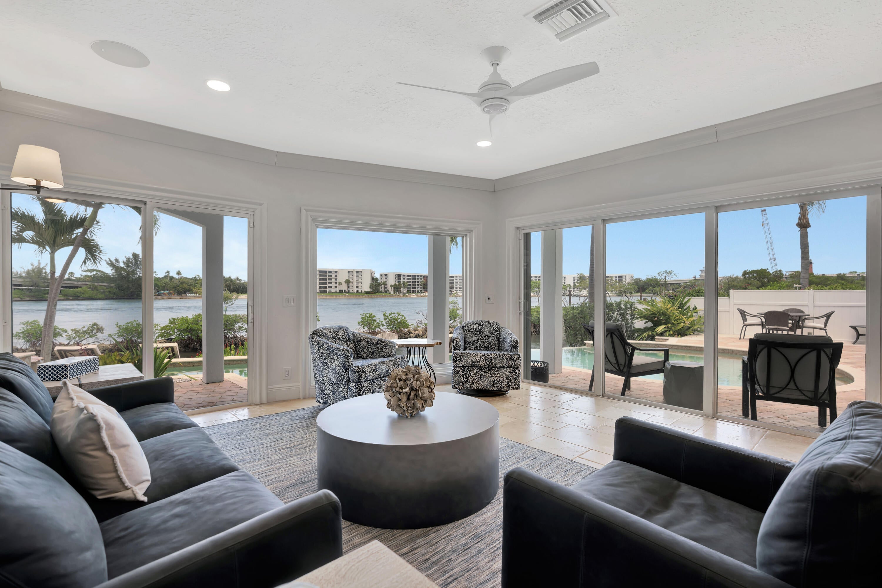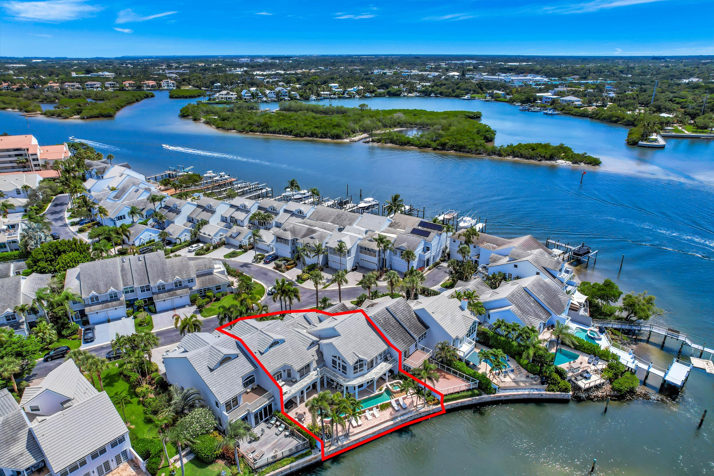 Located along 90 ft of pristine Intracoastal Waterway, this extraordinary 5,200+ sq ft residence is a one-of-a-kind gem in Jupiter, Florida. Masterfully combining two units into a single home, it showcases breathtaking views of the tropical blue waters and the iconic Jupiter Lighthouse, offering a serene escape. Located within a secure, manned gated community and just a short walk from the renowned 1000 North restaurant and the lively charm of Love Street. The home features six comfortable bedrooms, including two spacious master suites, four full bathrooms, and two half bathrooms. Two full kitchens, each with wine storage and a bar, make hosting gatherings effortless. Three distinct sitting areas, all with stunning water views.The property will be delivered fully furnished, including all professional grade gym equipment and a state-of-the-art medical breakthrough massage chair.