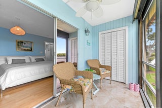 Welcome to De La Bahia Condo, a 55+ waterfront community perfectly set along the St. Lucie River. This 2-story condo offers a 2nd-floor unit with 1 bedroom, 1.5 bathrooms, and 685 sqft of living space. The interior features travertine tile in the dining, kitchen, and living areas, with laminate flooring in the bedroom. The kitchen is equipped with cabinets, a counter with bar seating, and flows into the open living space. The screened and covered balcony off the bedroom provides unobstructed river views and breathtaking sunsets over a tranquil parkland setting.Enjoy the ultimate boating lifestyle with a dock available for use, ocean access, and no fixed bridges! Community amenities include a pool, clubhouse, yacht club, social groups, dances, and group adventures. All within minutes of downtown Stuart, beaches, shopping, dining and more!