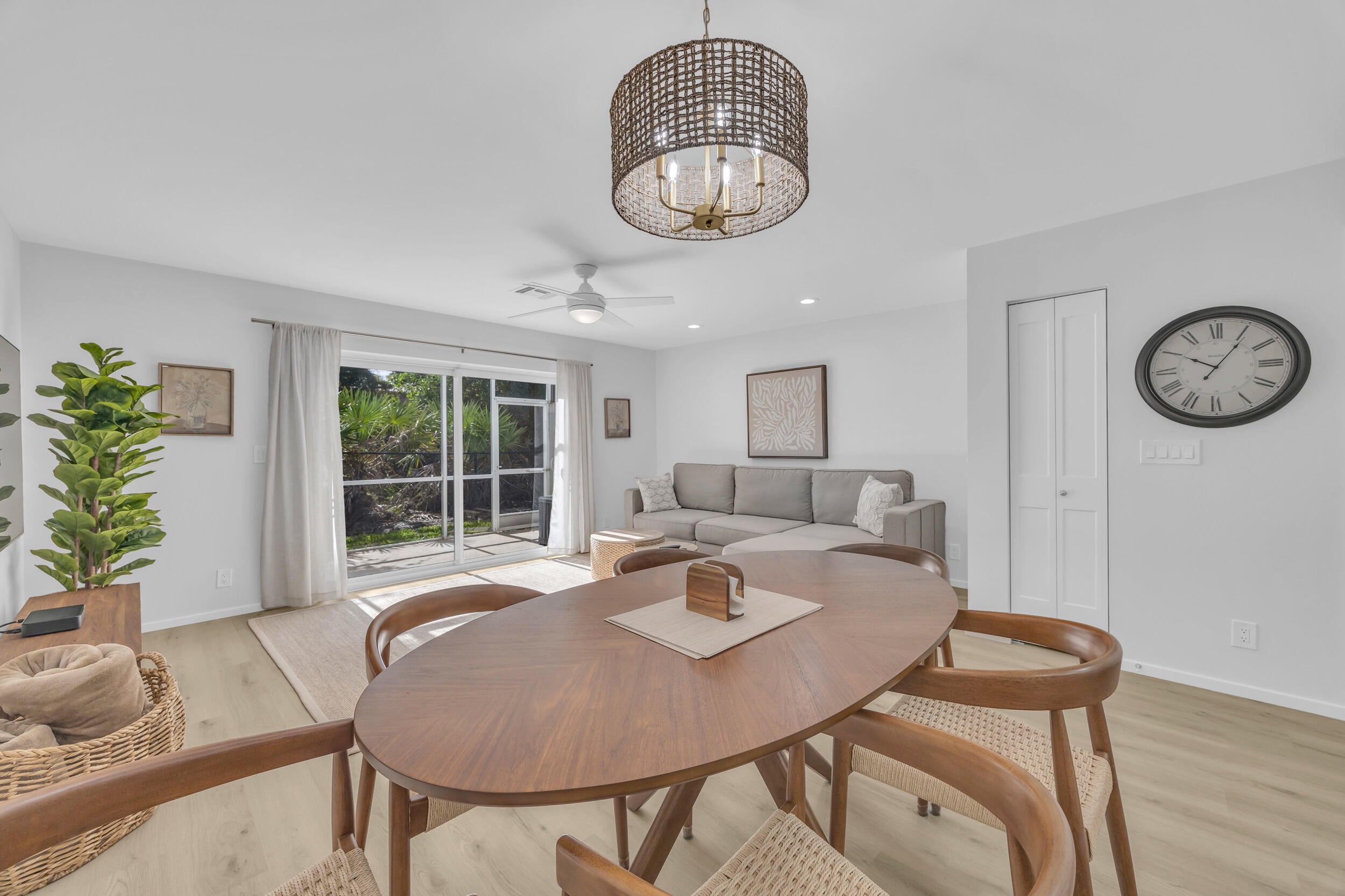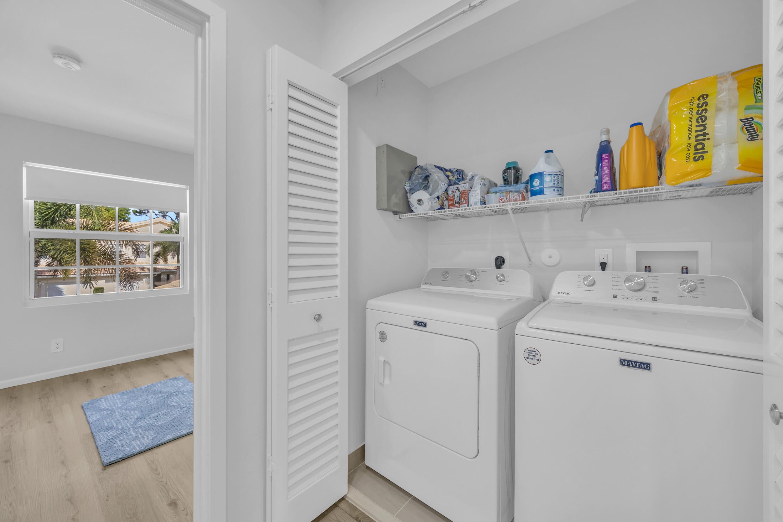 Welcome to 107 Wooden Mill Terrace, a beautifully reimagined two bedroom, two and a half bathroom townhome in the heart of Jupiter. Taken down to the studs and rebuilt with a Scandinavian-inspired contemporary aesthetic, this residence offers clean lines, timeless finishes and worry-free living with all-new systems and upgrades.Step inside and be greeted by fresh Benjamin Moore paint, luxury vinyl plank flooring and a bright open layout. The custom kitchen is a true showpiece featuring flat-panel cabinetry with birch interiors, Blum hardware and Hettich drawer slides. The sleek Lioher Cava-style doors are complemented by striking Carrara quartz countertops with elegant brown veining and brand new stainless steel appliances.The bathrooms have been completely transformed with frameless glass shower doors, custom vanities and all-new Kohler fixtures and toilets creating spa-like retreats. Upstairs, brand-new stairs and railings add architectural detail and a touch of sophistication. This home is as functional as it is beautiful with brand-new electrical throughout, updated smoke detectors, a new water heater, new washer/dryer, epoxy-coated garage flooring and a new garage motor. The 2023 A/C ensures year-round comfort, the roof is only about 4 years old and impact windows and doors (including a stylish new metal front door) provide peace of mind and energy efficiency. The community offers a playground and a resort-style pool perfect for relaxation or play. Beyond the neighborhood, Jupiter is known for its incredible local restaurants, world-class beaches and a collection of favorite spots that make everyday living feel like a vacation. Perfectly located, move-in-ready and beautifully designed, this home combines the very best of style, function and lifestyle in the heart of Jupiter.