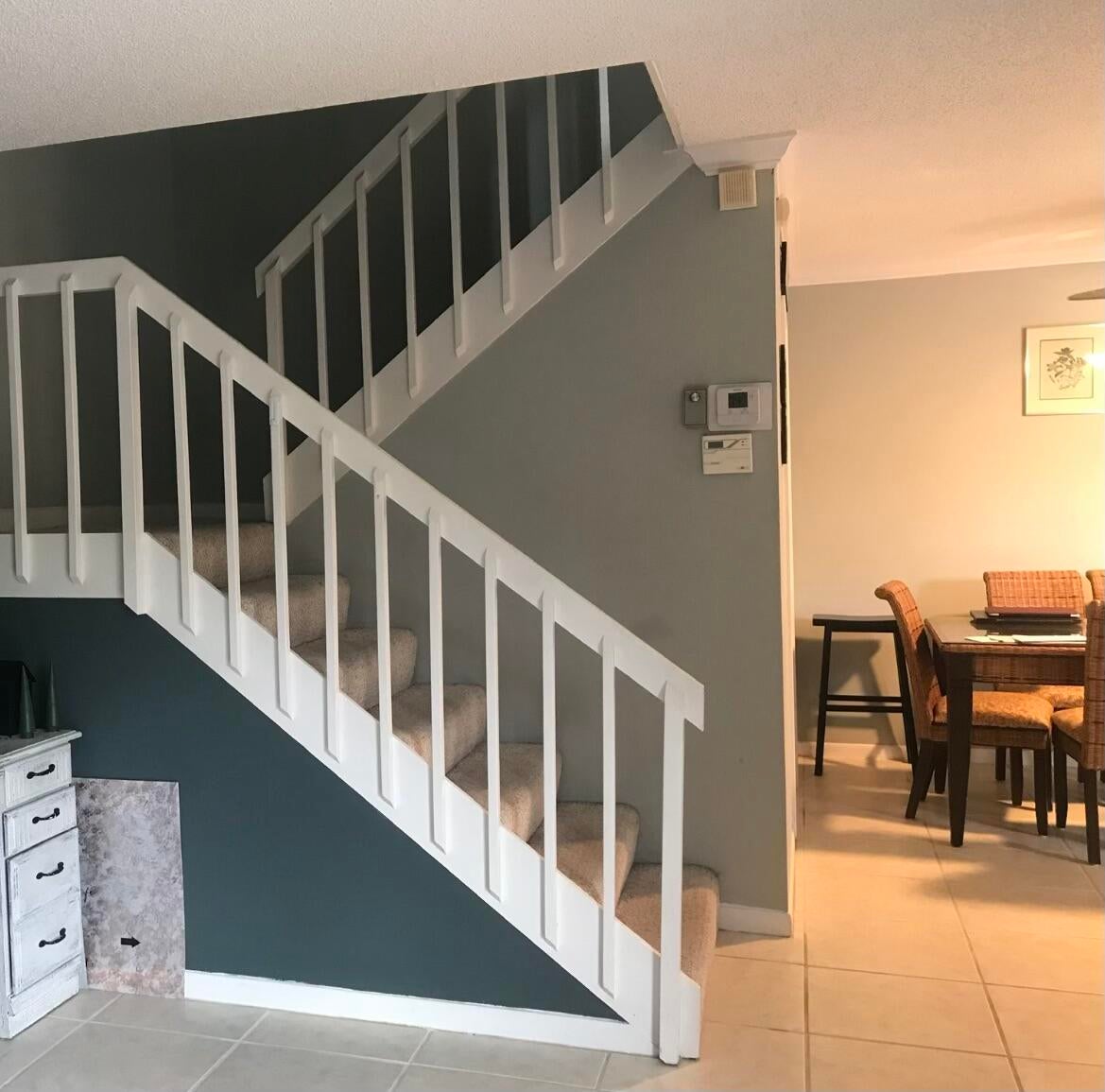 Ideal location, minutes from Jupiter's most beautiful beaches, restaurants, lighthouse, and top-rated schools. This is an updated 2 bedroom, 2.5 bathroom quadraplex situated in a quiet neighborhood directly across from Tequesta's recreation complex and park. The master bedroom has a large area able to fit any king size bedroom set, an ideal walk-in closet, and balcony. The guest bedroom is fully equipped with a wall closet, balcony and a detached full bathroom. The flooring is tile downstairs and carpet upstairs. Situated in the back corner of quadraplex offering privacy, almost like having your own backyard