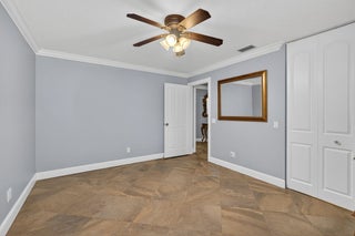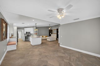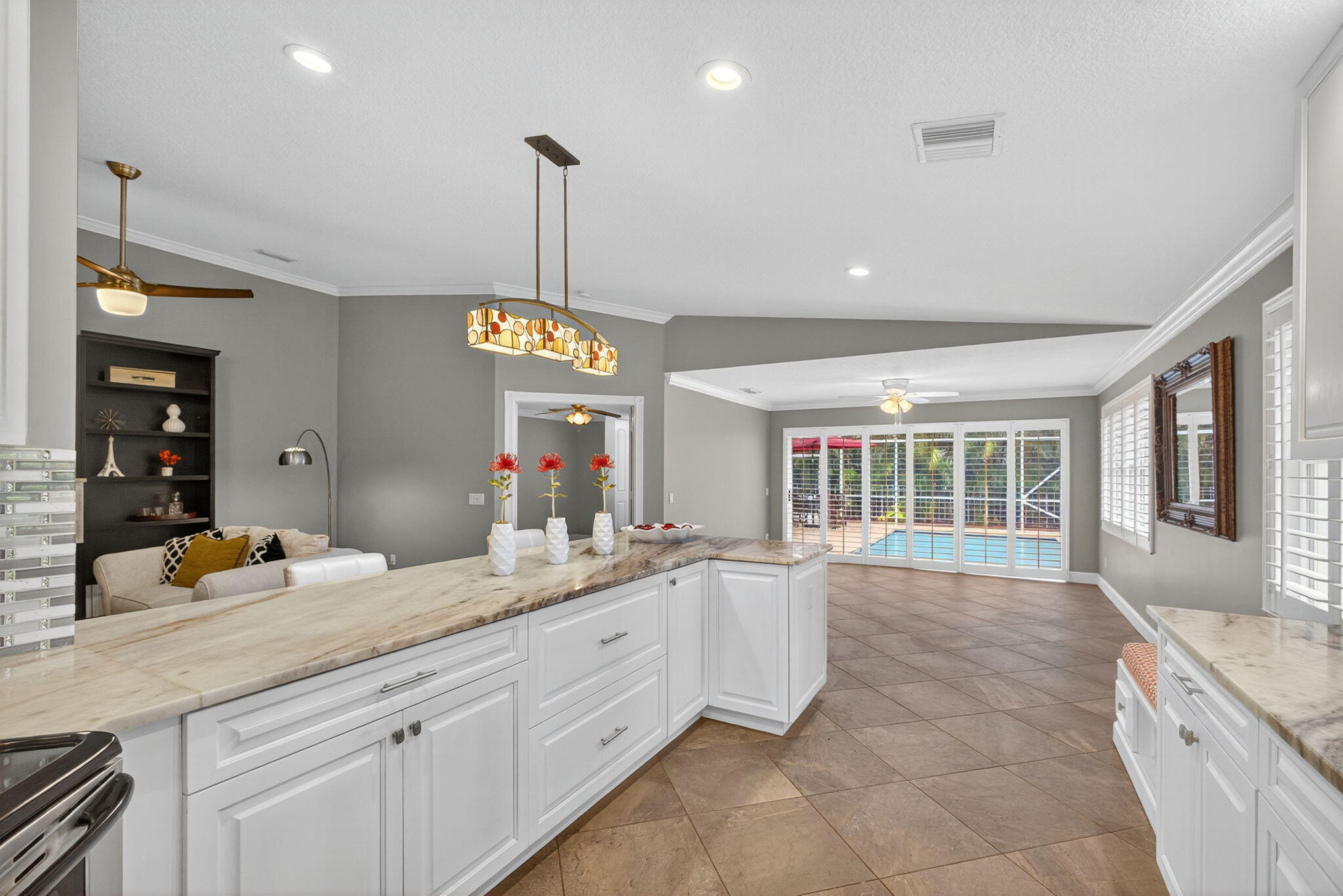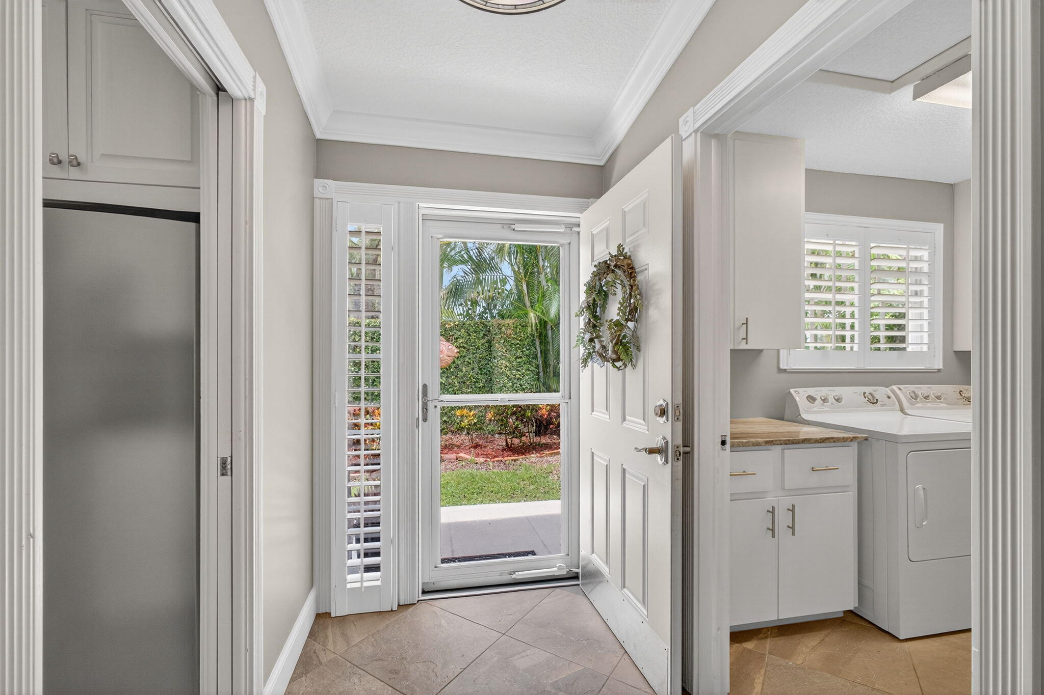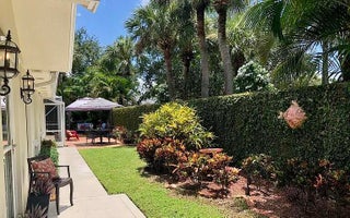 RARE OPPORTUNITY to own a beautifully updated DiVosta Capri model on one of the largest lots in Greenbrier at the Indian Creek golf course community. One of a kind end unit with an extra large side lot, glistening pool, lovely garden, and brick patio area. 360 degree views of bright blue Florida skies with mature palm trees, oaks, flowering trees, and breathtaking sunsets. Lives like a single family home with all the conveniences and quality of a single level, low maintenance villa. Come inside the uniquely private entrance to a beautifully remodeled oasis with uniform tile floors throughout every room. The upgraded kitchen boasts soft close white custom cabinetry, light granite countertops, stainless steel appliances, upgraded fixtures and lighting.Plantation shutters and custom crown molding throughout, as well as lovely designer paint colors. Extended unit features living room and extra separate family room area overlooking the pool. There are two very large private bedroom suites, each with their own updated bathroom and ample closet space. The oversized two car garage offers a built-in garage storage unit as well as premium epoxy flooring with an extra long driveway. Prime location near the front of the development, with ample privacy and surrounded by picturesque open green space and lovely mature landscaping.
