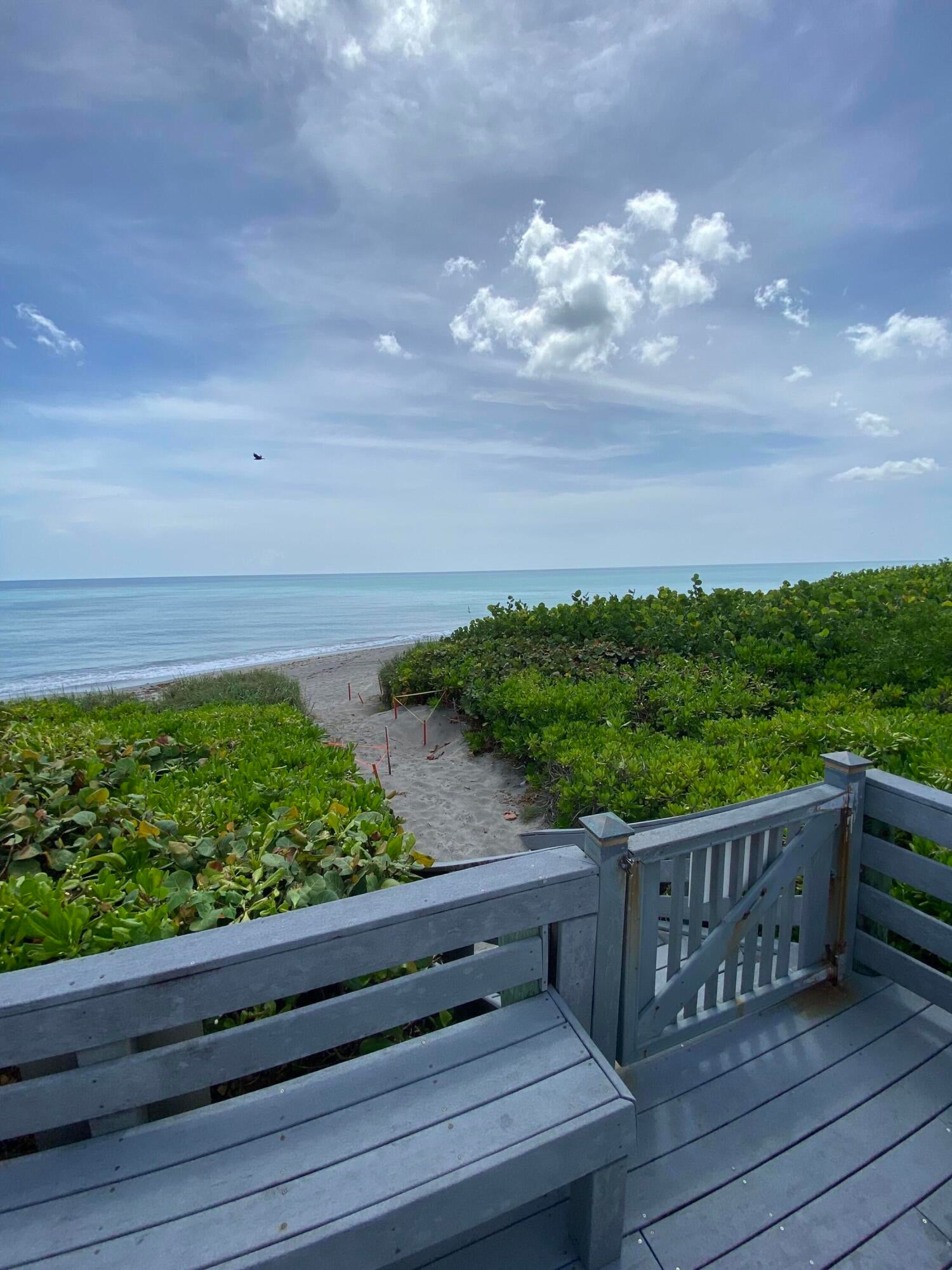 Walk out your back door directly onto the beach. This property is unfurnished. Enjoy tropical breezes and the serene sound of waves crashing from this 1st floor ocean end unit in Juno Shores. Impeccably renovated from floor to ceiling with the highest quality of materials. Updated kitchen cabinets, gorgeous marble countertops, upgraded appliances, wood look tile throughout, updated bathroom vanities, updated master shower, new water heater, Cool AC, and complete impact windows and sliders. No expense spared! This private 1st floor unit allows you to relax on your covered porch while watching the sunrise over the ocean, or walk steps to the beach on the private, community boardwalk. Juno Shores is a small, quaint complex. Minimum 1 year lease required.