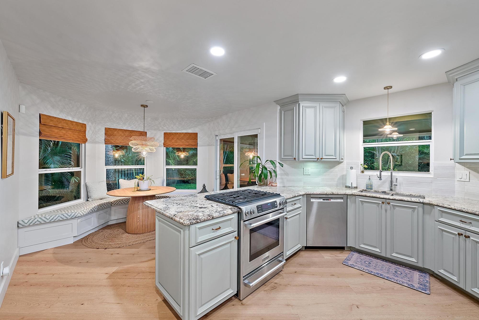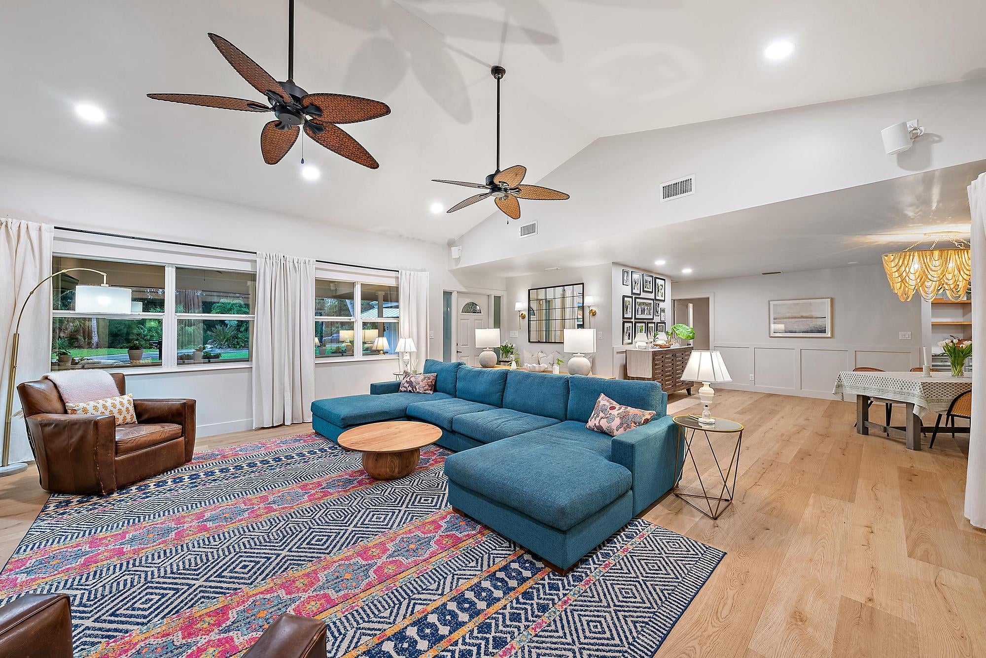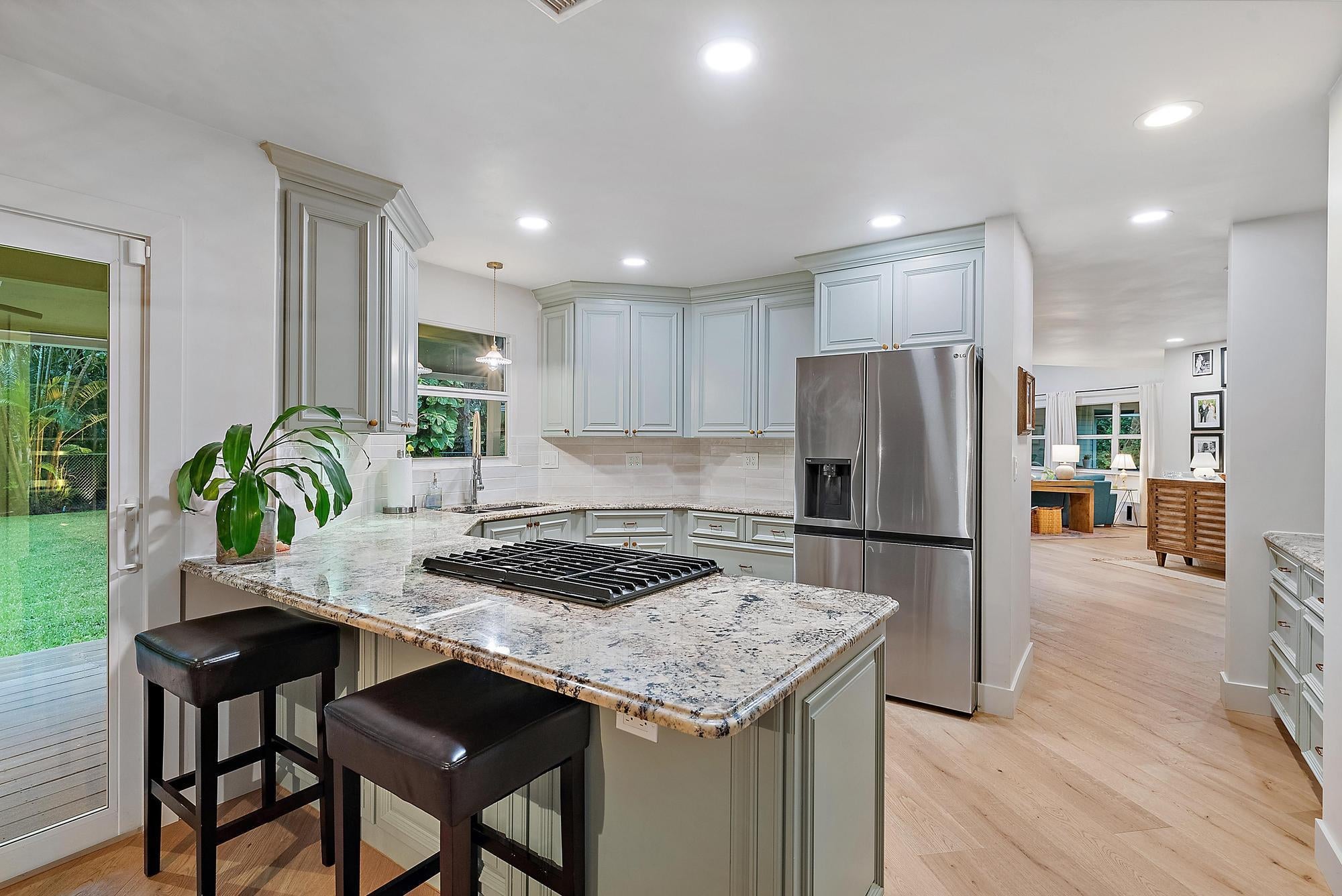 Beautifully renovated home in the heart of Jupiter, in a quiet and private neighborhood. This 3 bedroom, 3 bath home has been refinished, top to bottom, including a new roof in 2024. The open living area features vaulted ceilings and overlooks the covered patio deck and private backyard. The community consists of only 8 homes and features a community dock that is ~300 ft into the Loxahatchee River, with 2 shared boat slips to enjoy. The backyard features plenty of room, decorated with mature tropical landscaping, features a dedicated dog run, and provides 360 degree privacy from neighbors. Live the waterfront lifestyle, without the waterfront price. Schedule your private showing to see all that this home has to offer.