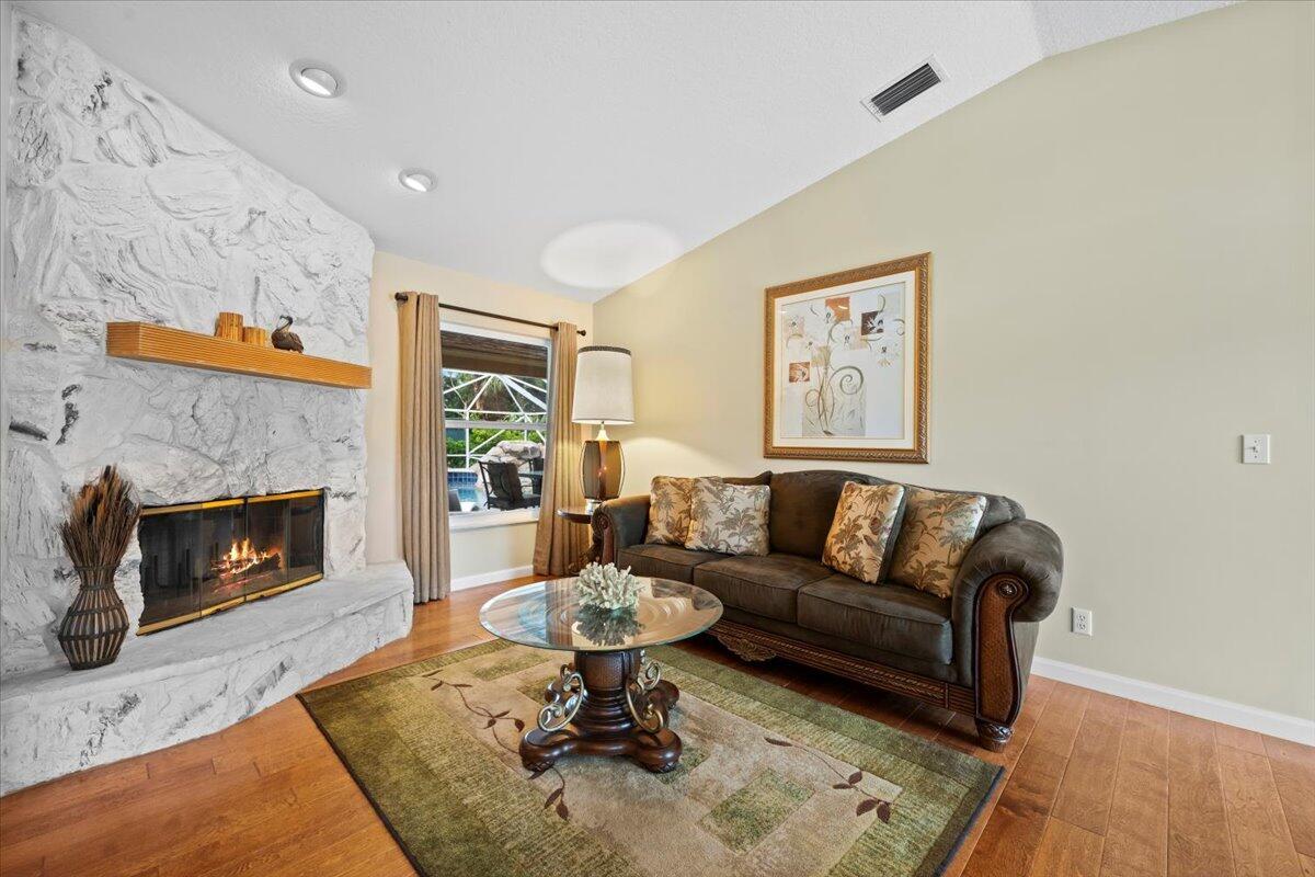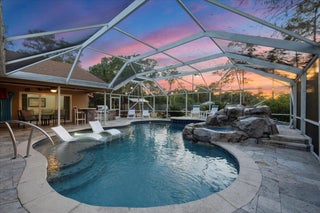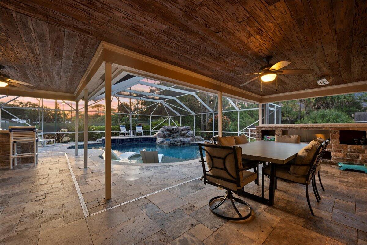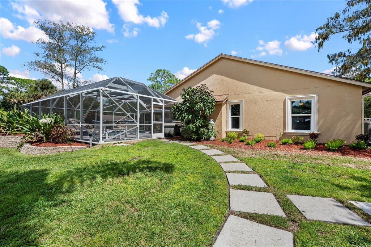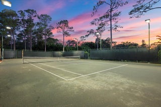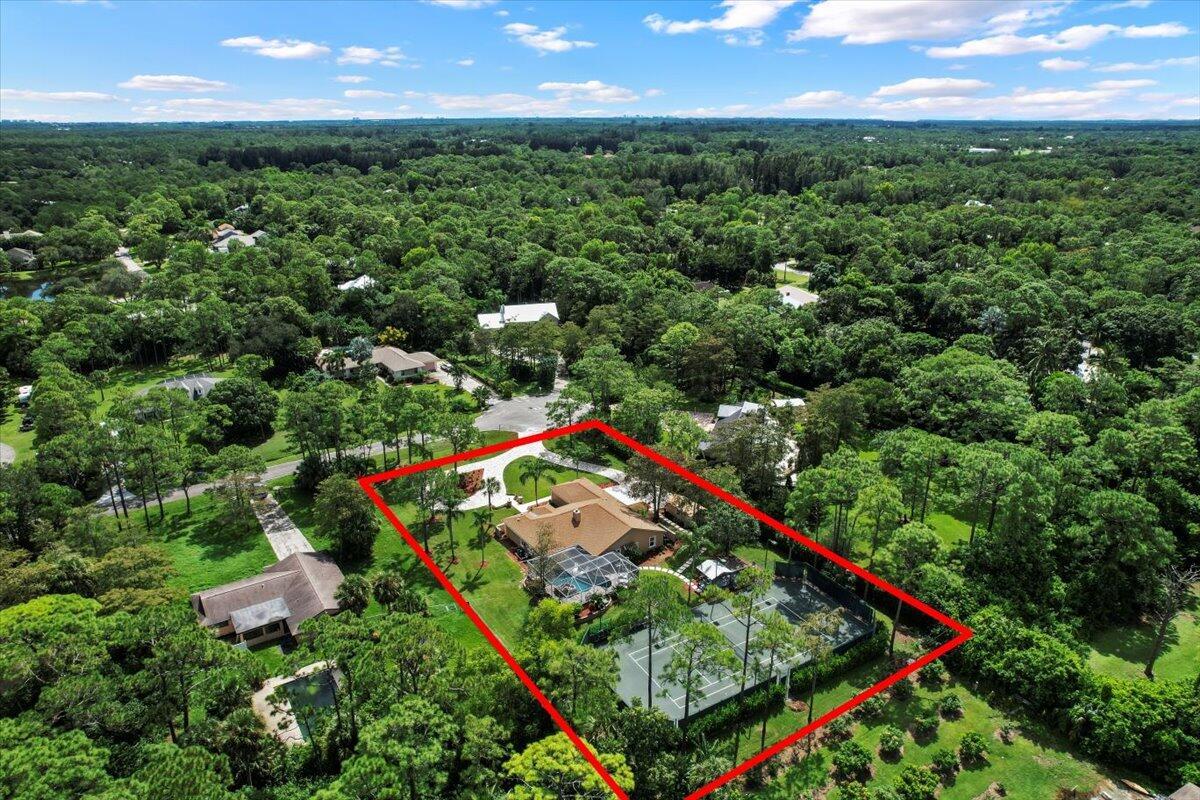 Private Tennis Court! Is tennis your dream? Then this is your dream come true--the ball is in your court! Set at the end of a quiet, paved cul-de-sac is a beautifully landscaped 1.04 acre lot with landscape lighting and a cobblestone driveway. This distinctive 3-bedroom plus den, 3-bath residence is a private paradise for tennis lovers and outdoor enthusiasts. Play every day on your private, regulation-size, Har-Tru (clay) tennis court with eight professional 1,000-watt metal-halide lights (newer ballasts and bulbs) for evening matches and a 10-foot fence on 3 sides for optimal play. An automatic above-ground sprinkler, fed by well water, keeps the court in peak condition. Between sets, relax in the stunning 10' x 20' cedar gazebo with Trex flooring, ceiling fan, power, lightingand a fire pit! An entertainer's dream. Enjoy a free-form screened, saltwater & heated pool with a rock waterfall, sun shelf with 2 Ledge Loungers and hot tub with new heater. The french patterned travertine patio floor features a faux pecky cypress ceiling in the covered area of the patio, a propane fireplace, an outdoor kitchen with built-in grill with custom cement counters and a 100-lb propane tank. The edge detail on the patio counter tops matches the coping of the pool. Patio speakers are installed for you to hook up. A robotic solar skimmer makes for low-maintenance pool care. Enter through impact double doors with privacy glass to a welcoming foyer and living room with a wood-burning fireplace, wood floors and vaulted ceilings. The split floor plan includes a separate dining room, a family room with electric fireplace & TV on an accent wall, a renovated kitchen with granite countertops, 2023 Samsung stainless-steel appliances, an induction cook top and an eat-in dinette area. The master bedroom suite offers direct patio access, custom closet, dual-sink vanity, heated towel bars, and a luxurious shower with a custom linen cabinet. The den is tucked away for a quiet office or guest bedroom. Some additional features: Oversized 2-car attached garage plus storage shed, interior laundry room with custom cabinets, landscape irrigation, wood and tile floors throughout, knock down ceilings throughout, impact windows & doors, Smart phone app controls all irrigation and pool equipment. A/C 2020, water heater 2019. This is more than a home, it's a private tennis retreat with every luxury detail in place. Schedule a private showing and see how this exceptional property lets you live - and play - your passion. Close to Jupiter Farms Elementary School, I-95 & Turnpike. Enjoy bike rides to Riverbend Park, Sunsets at Pine Glades Natural Area. Publix is just 1 mile away. Drive East on Indiantown Road to beautiful beaches and restaurants.