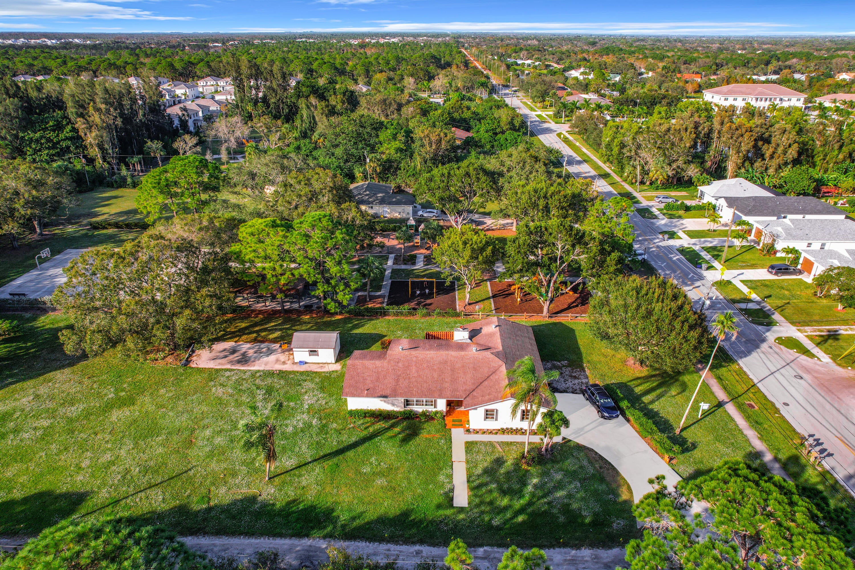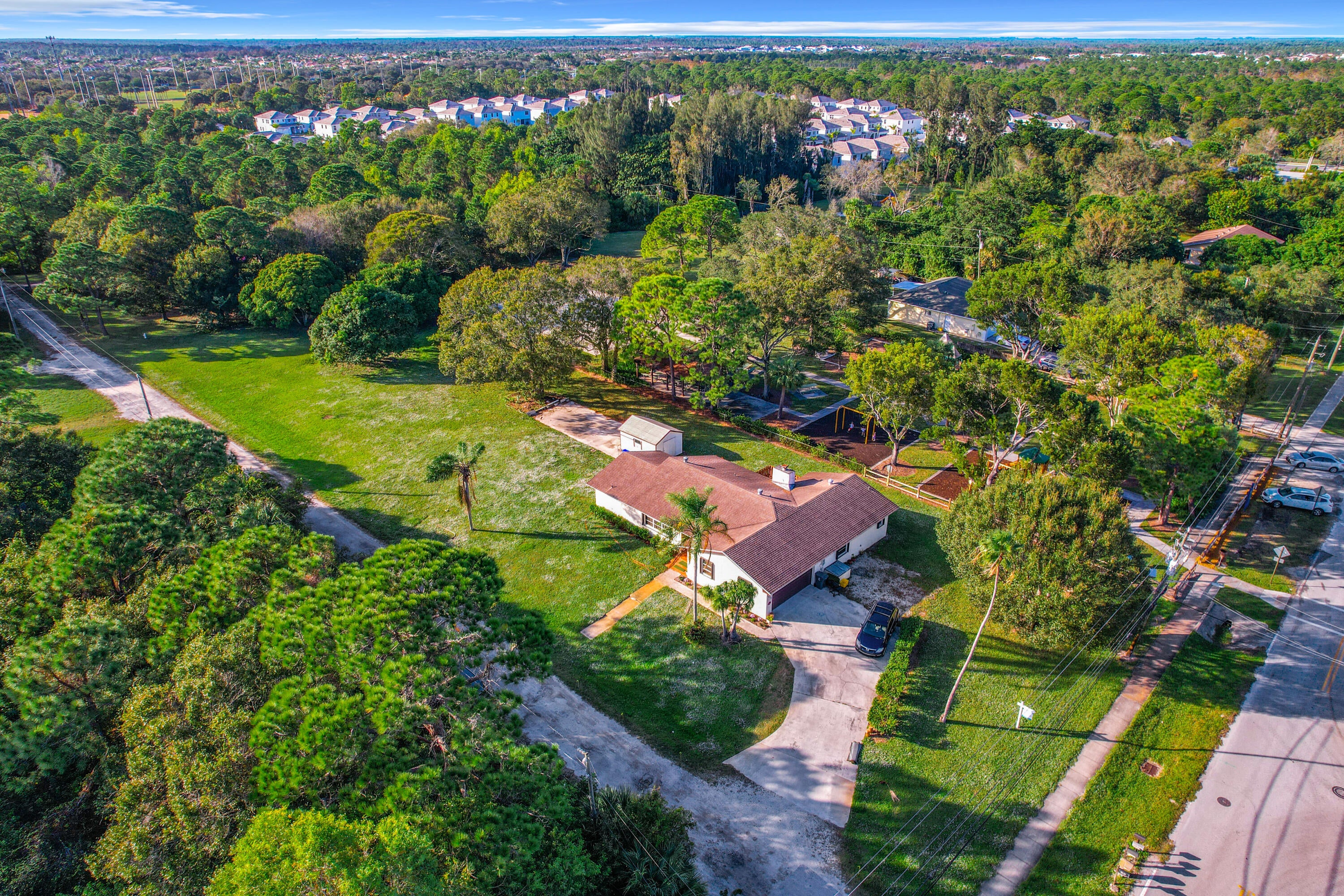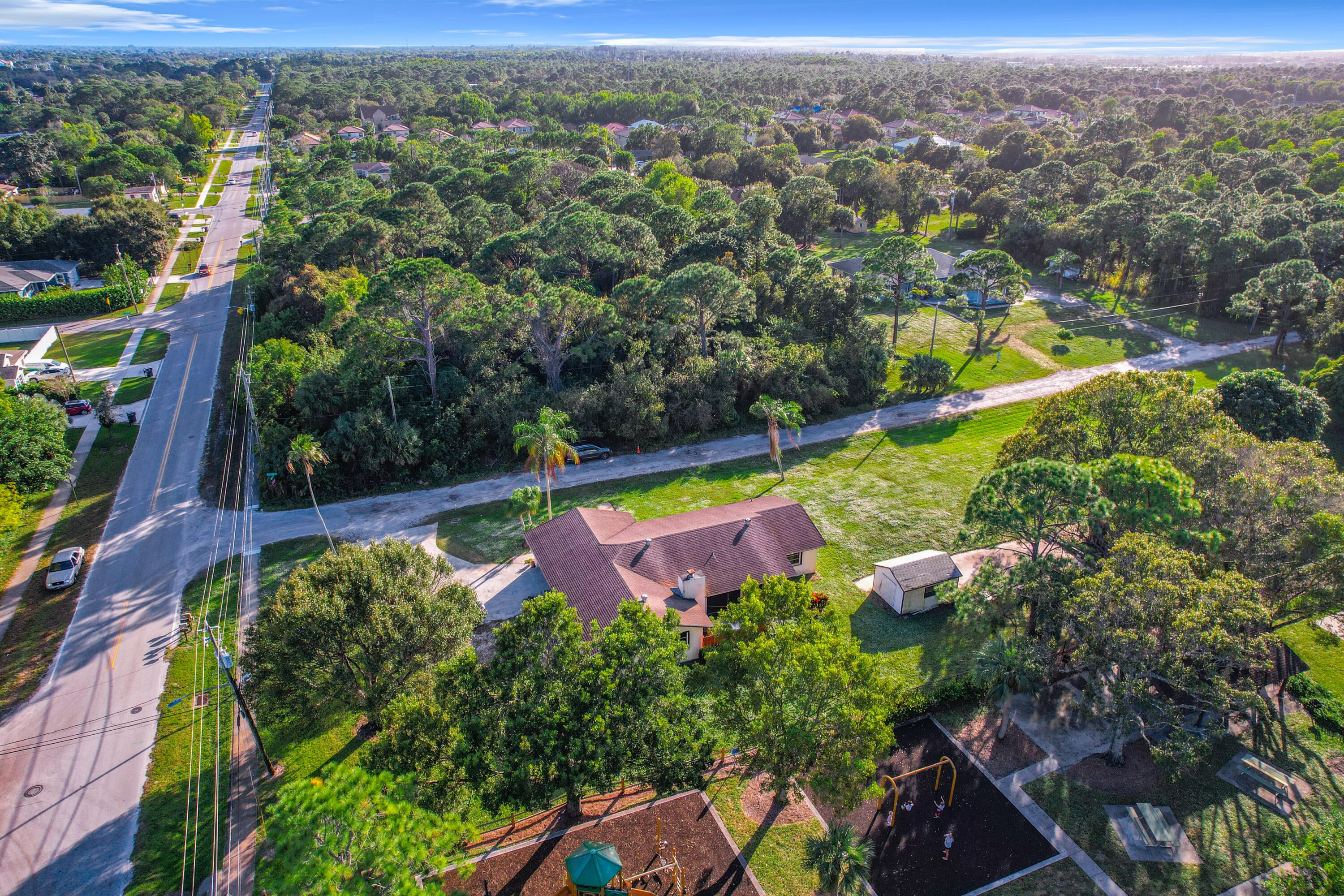 Exceptional investor opportunity on nearly an acre corner lot in Jupiter's coveted school district. Adjacent to Limestone Creek Park and free from HOA restrictions, the property provides unique potential for development in a rapidly growing area. Zoned for multi-family use, the spacious lot boasts mature mango trees and tranquil park views. Conveniently located close to upscale amenities, top-rated schools, transportation hubs, and directly adjacent to the serene Limestone Creek Park.