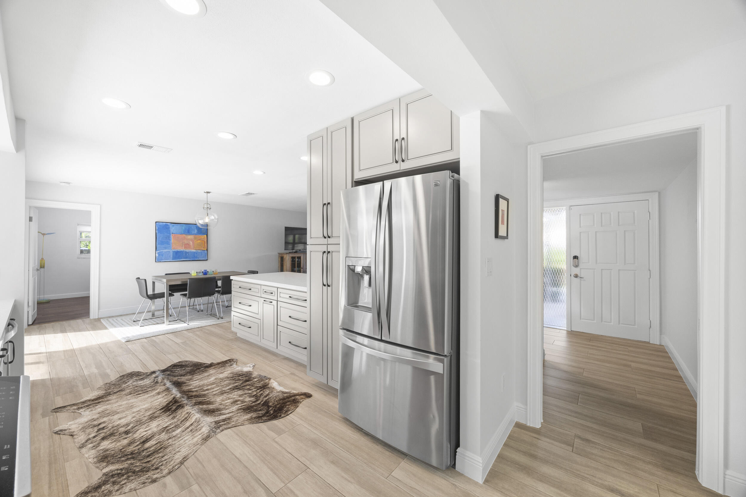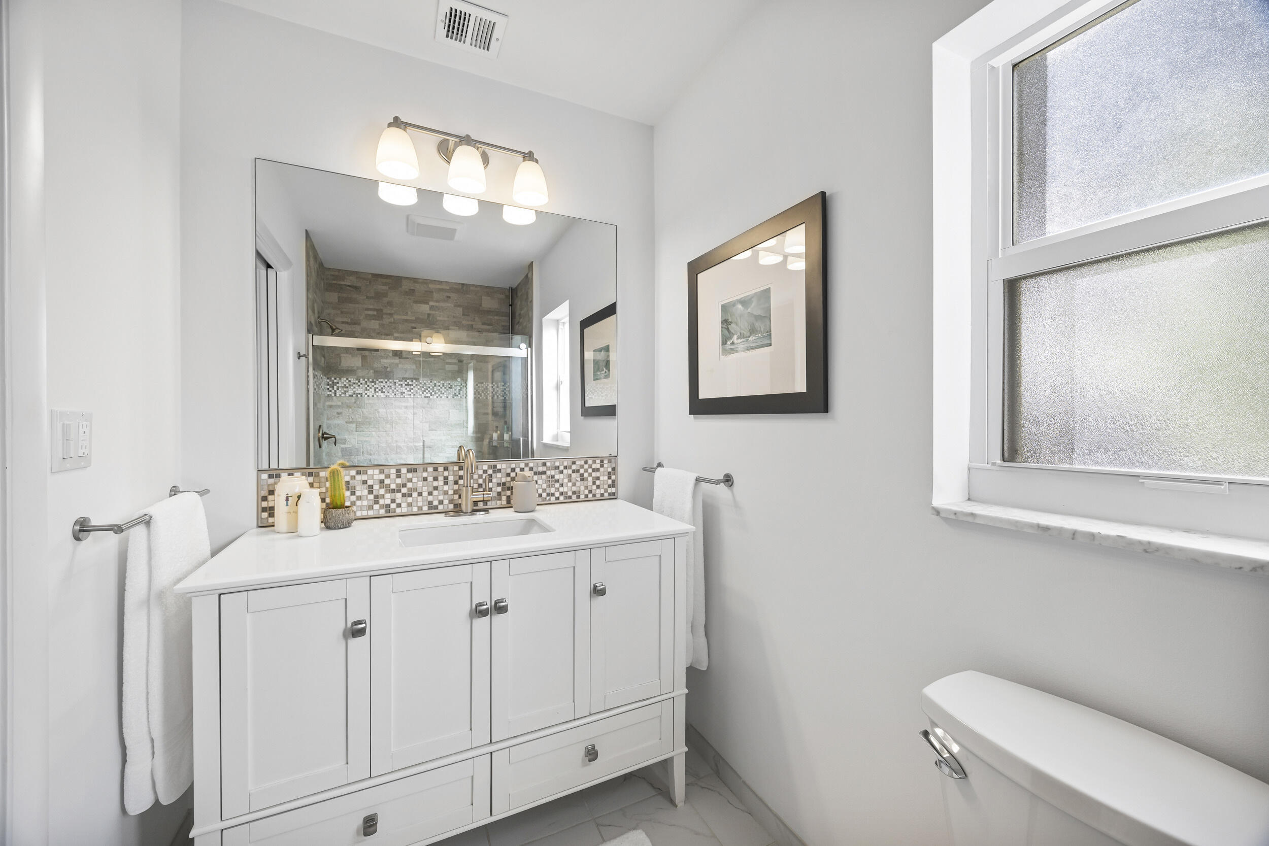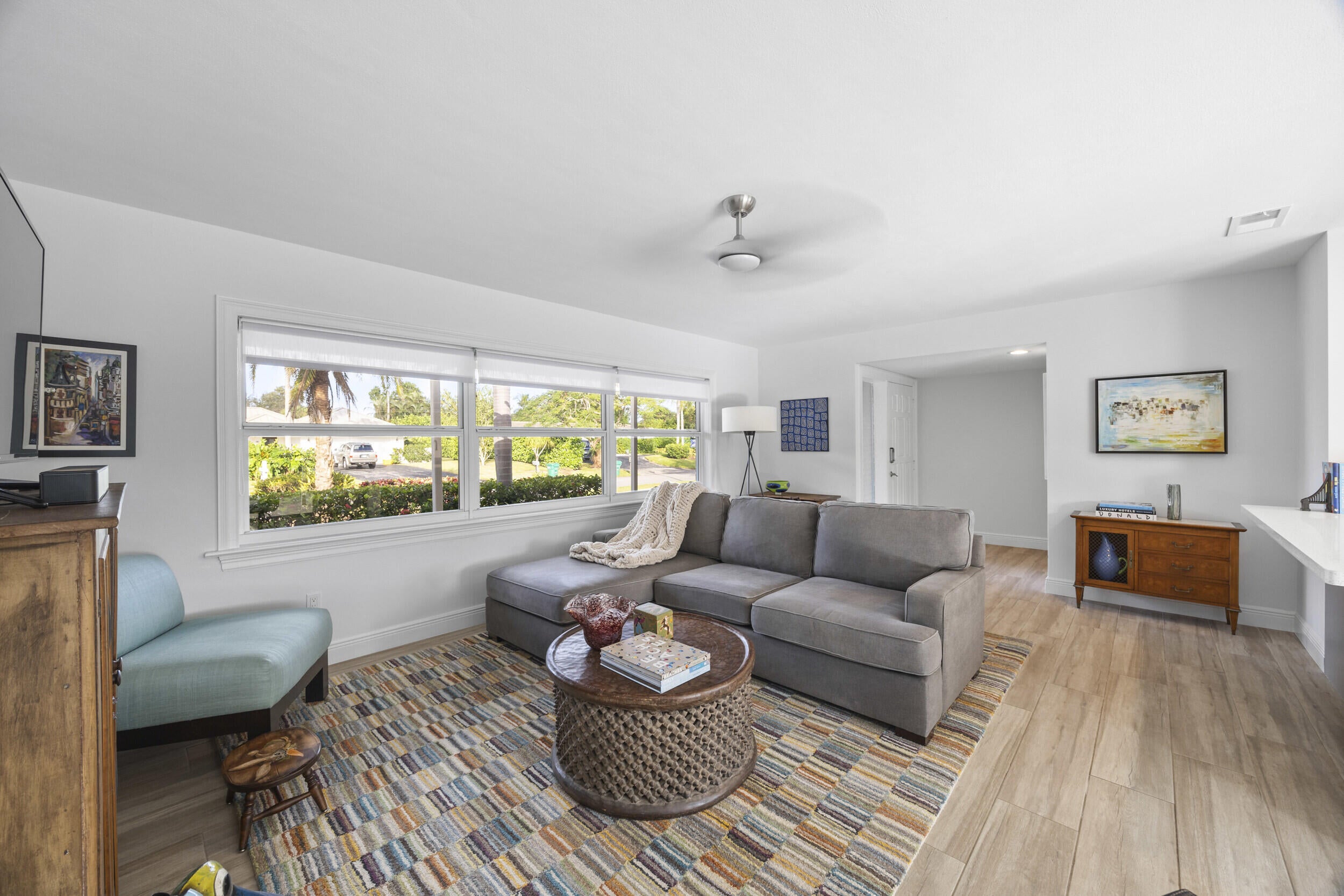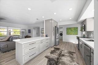 Charming and well-located CBS home in popular Tequesta Country Club. This updated 3-bedroom home is situated on a premier corner lot in a quiet, secluded part of the community. 40 Pinetree feels light, bright, and inviting. Recent improvements include an open kitchen, modernized bathrooms, wood-look tile flooring, and wood floors in bedrooms. Enormous, fenced-in back yard includes a firepit, travertine patio, and outdoor shower. Most windows are hurricane impact glass. Incredibly efficient, split floor plan makes this home feel bigger than the square footage. Useful office/den space and large indoor laundry room add value. Tequesta CC has a private boat ramp and day dock for residents. Golf cart-friendly community with direct access both Turtle Creek Club and Tequesta Country Club.